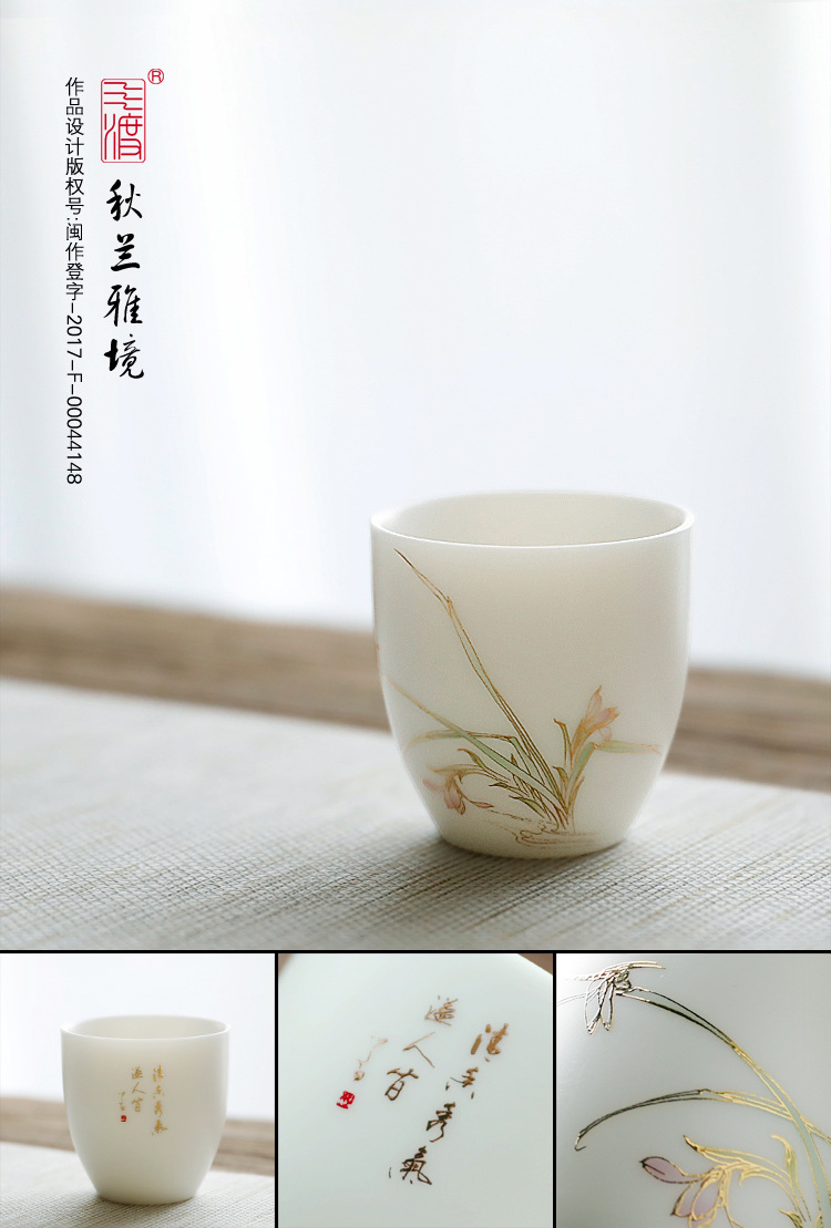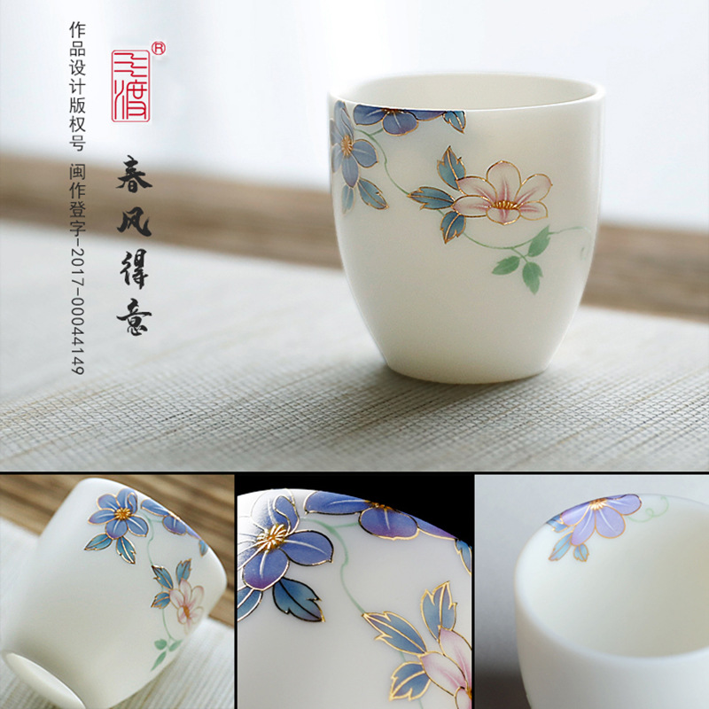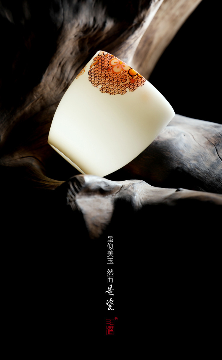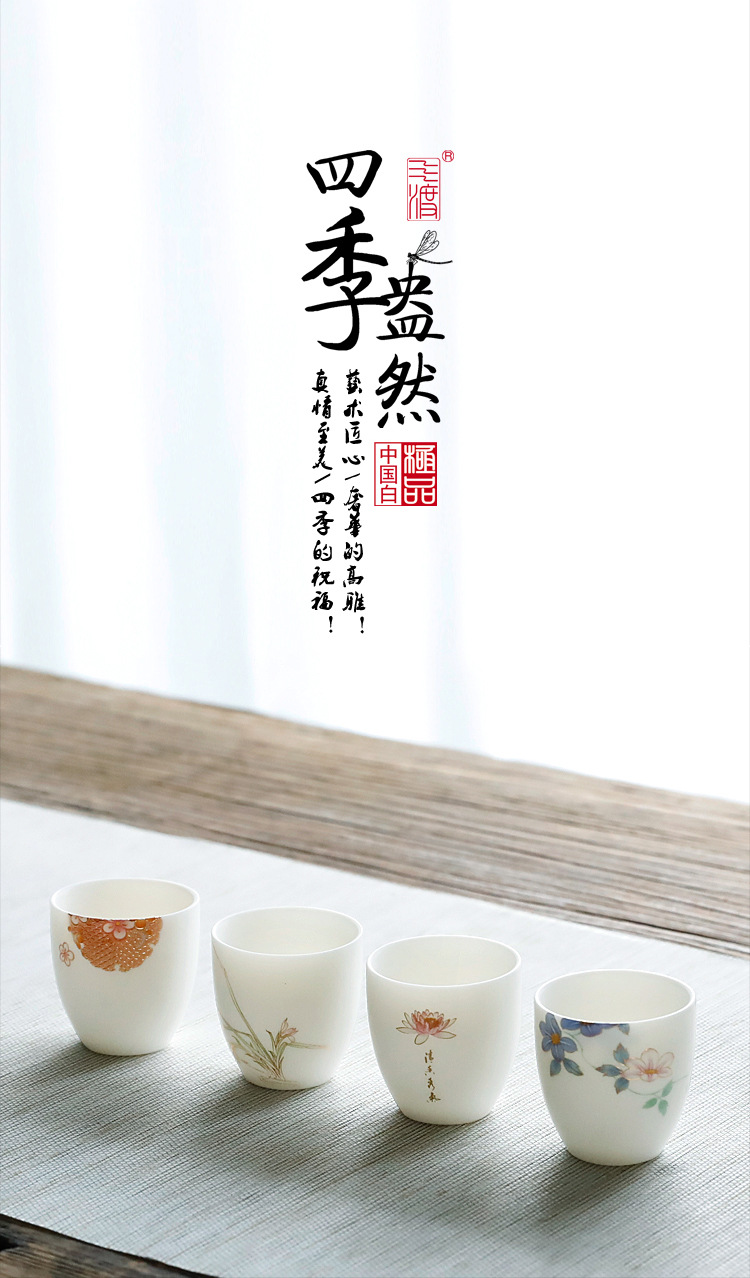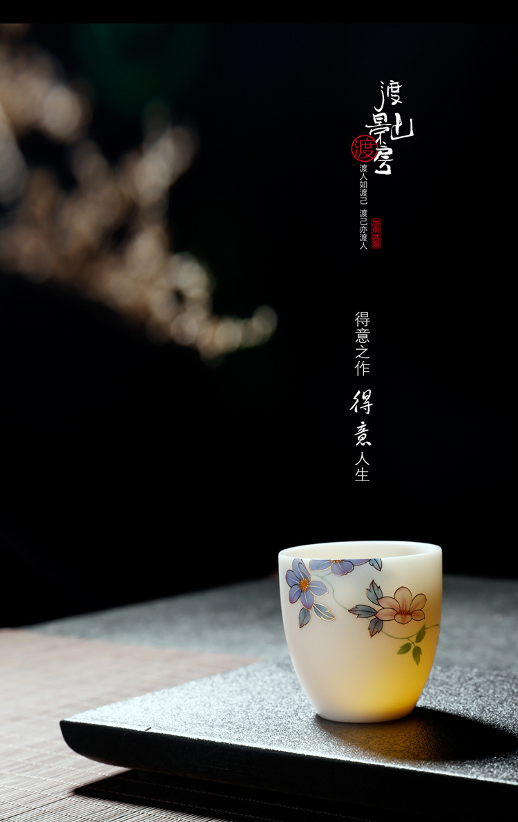 渡景山房 羊脂玉白瓷茶杯女高端陶瓷品茗杯单杯主人杯 四季盎然