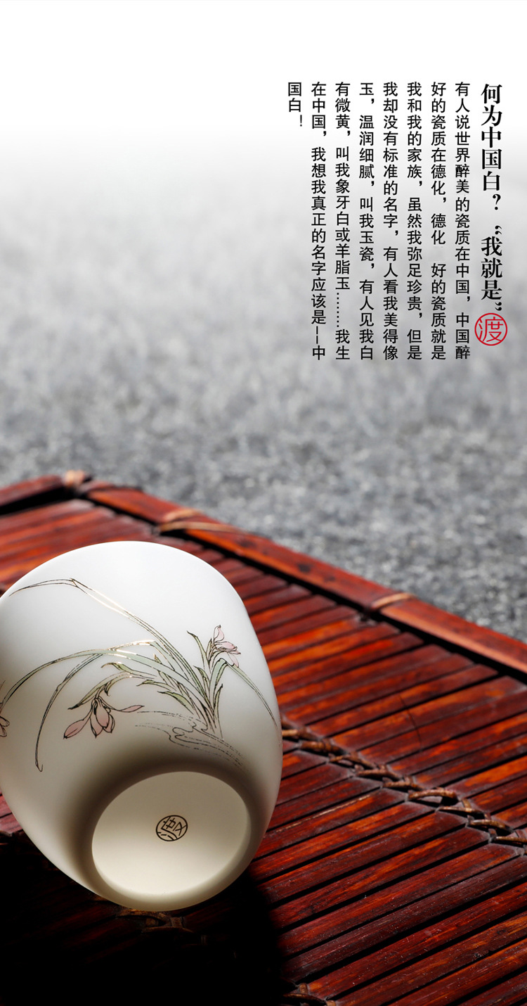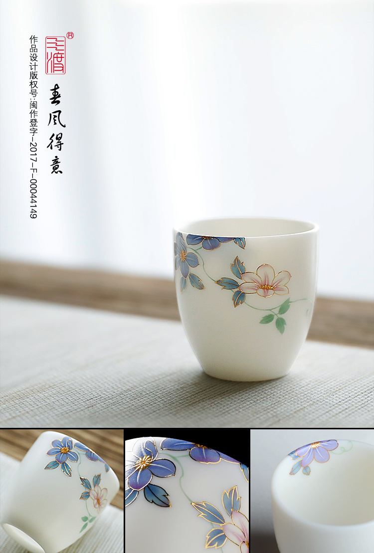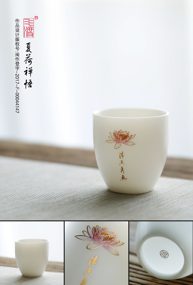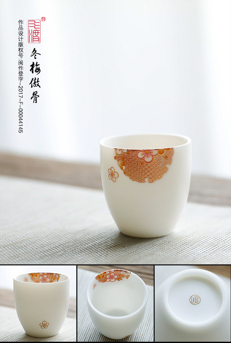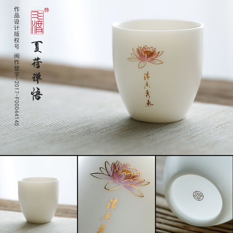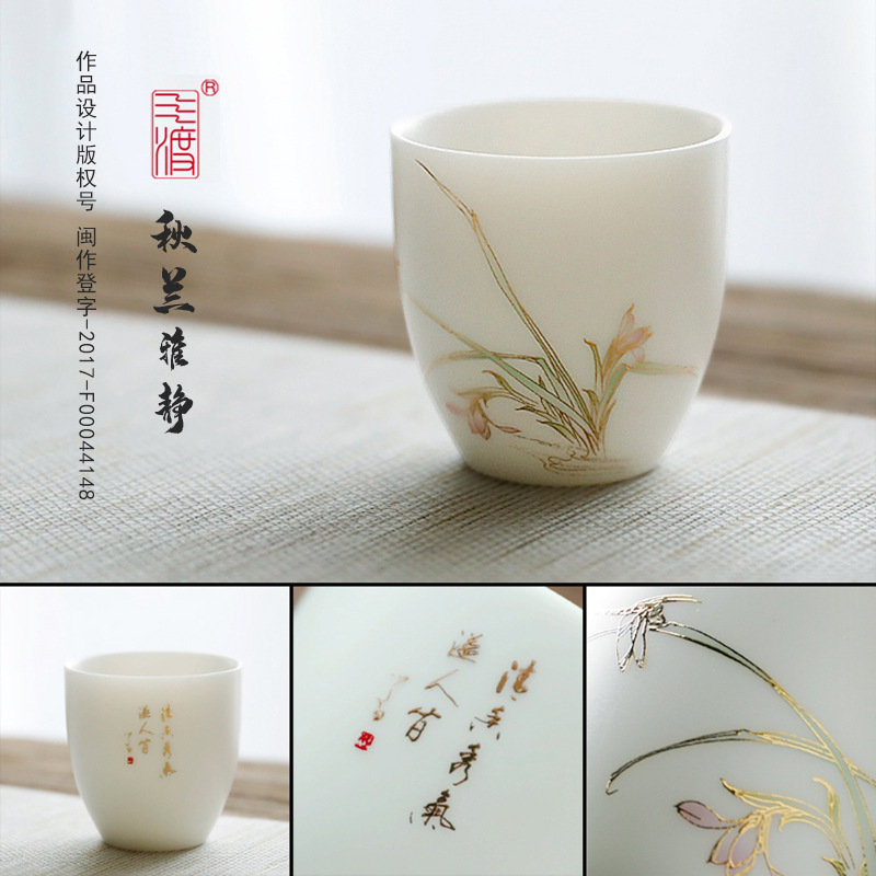 渡景山房 羊脂玉白瓷茶杯女高端陶瓷品茗杯单杯主人杯 四季盎然