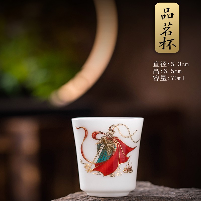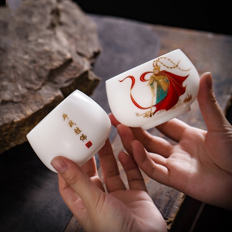 冰种素烧羊脂玉茶杯主人杯罗汉杯陶瓷个人大号斗战胜佛悟空单杯