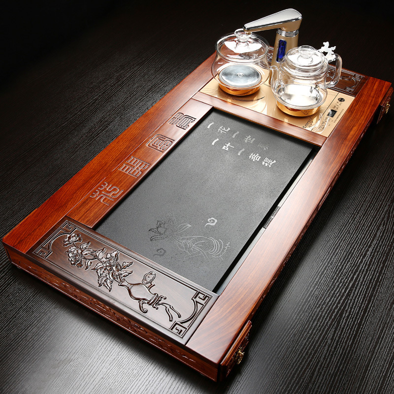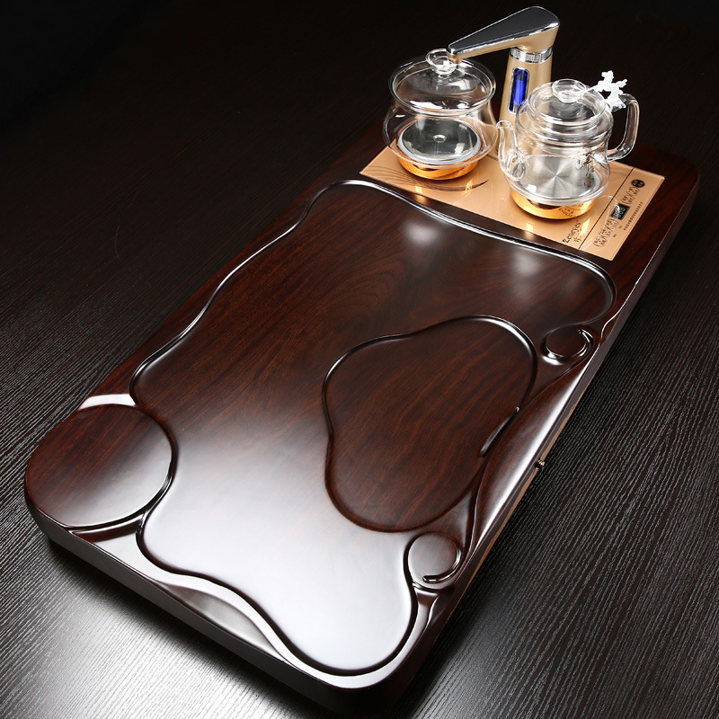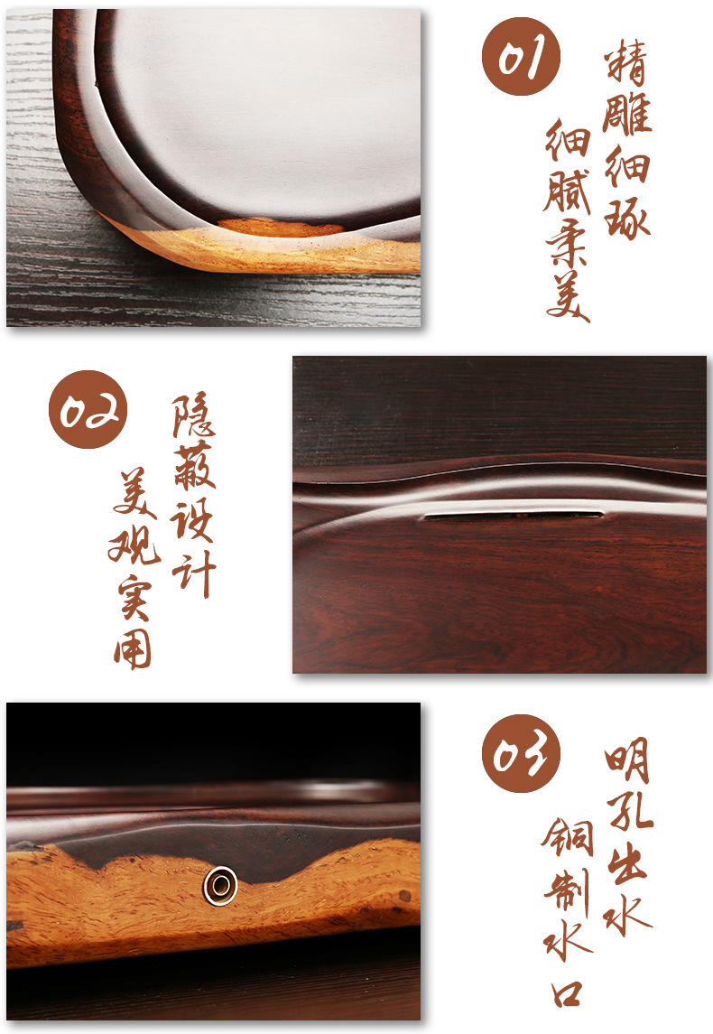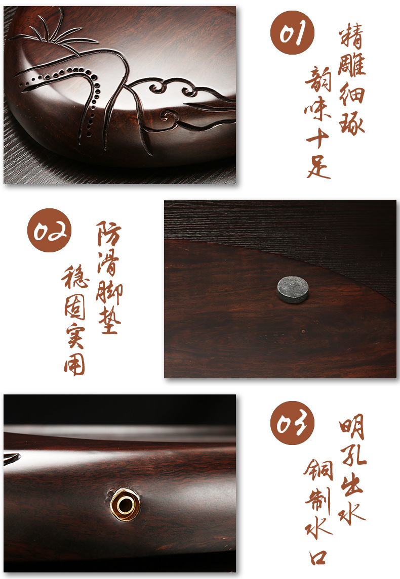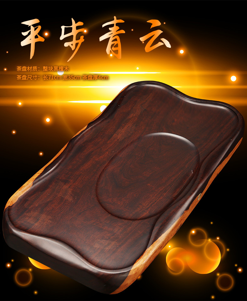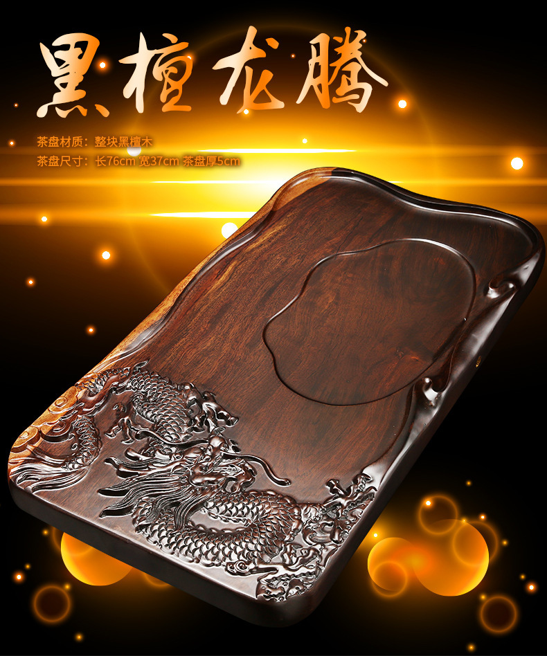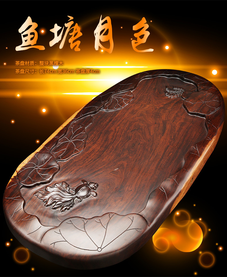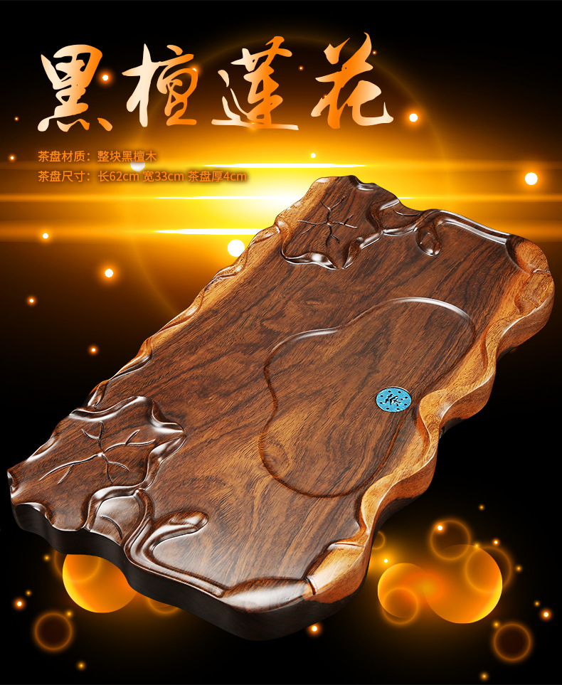 黑檀木茶盘整块实木 长方形茶海功夫茶具茶托 家用茶台 简约排水