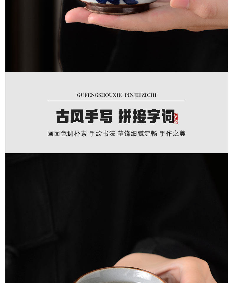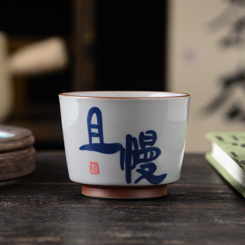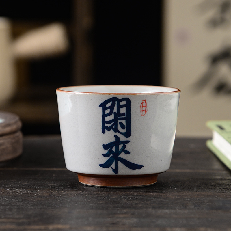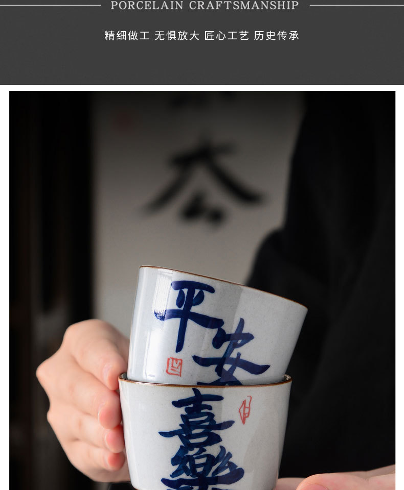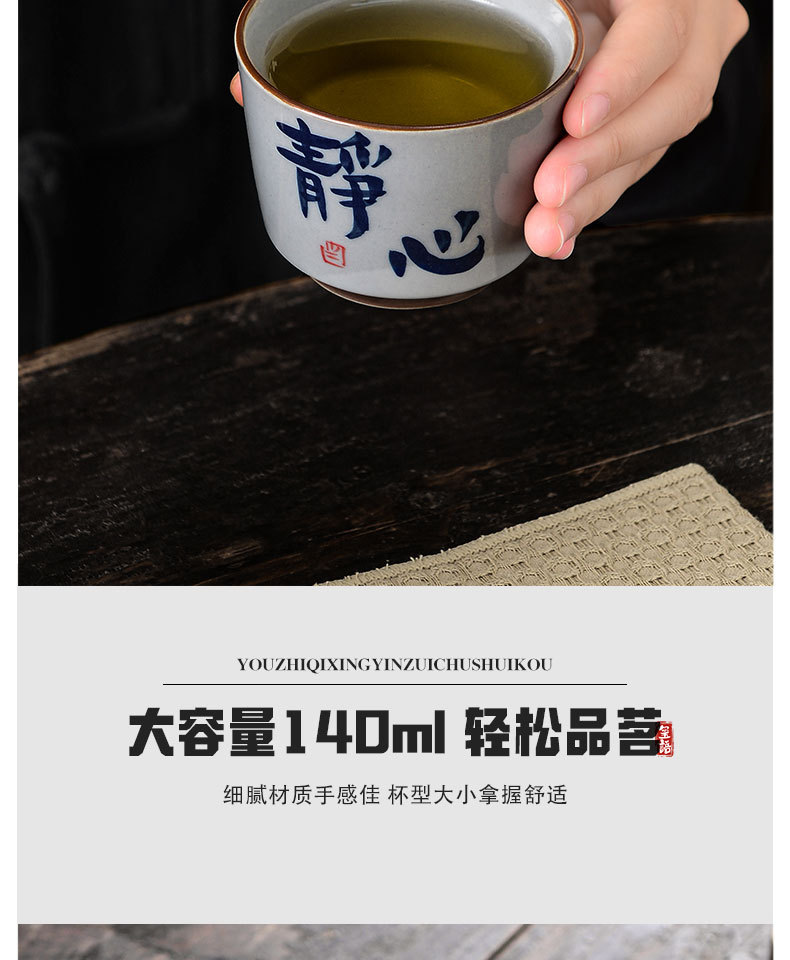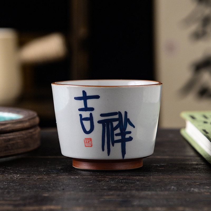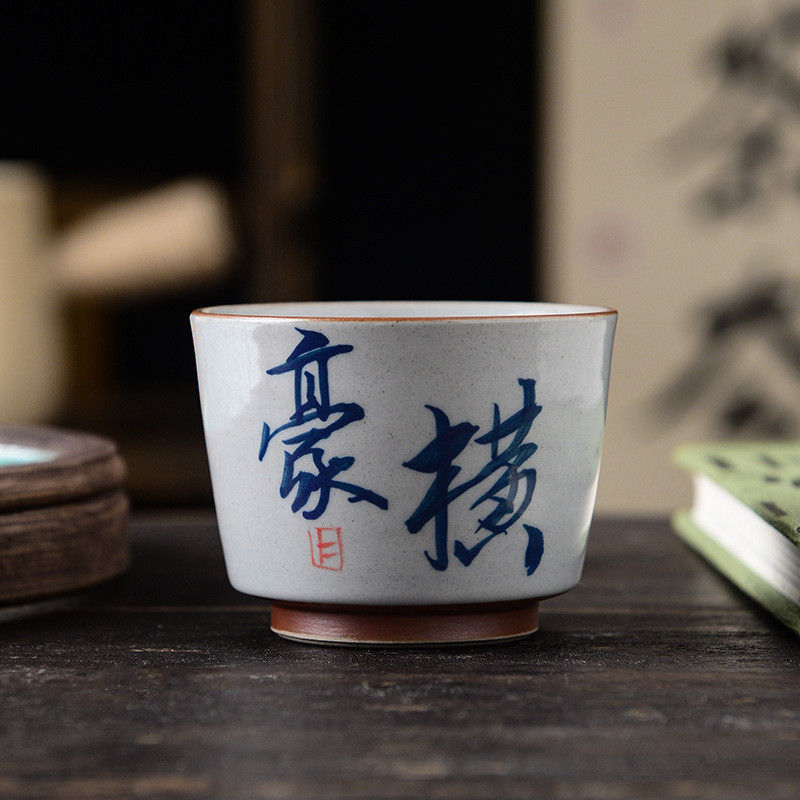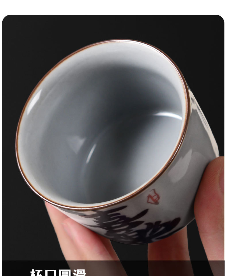 草木灰书写主人杯品茗杯创意家用复古手绘大号喝茶杯茶盏功夫茶具