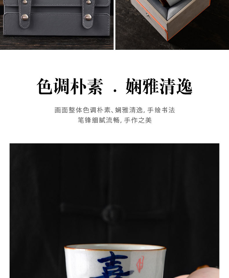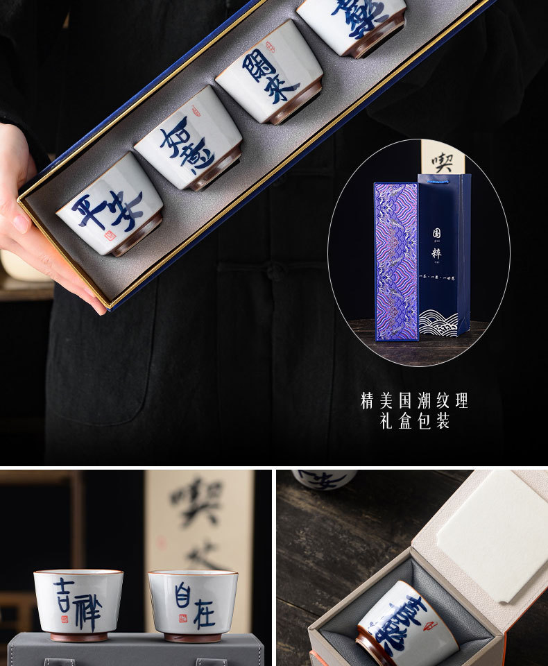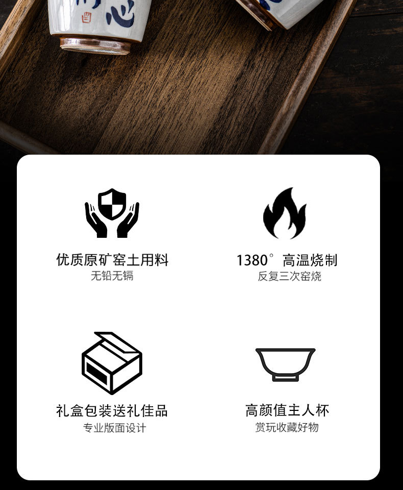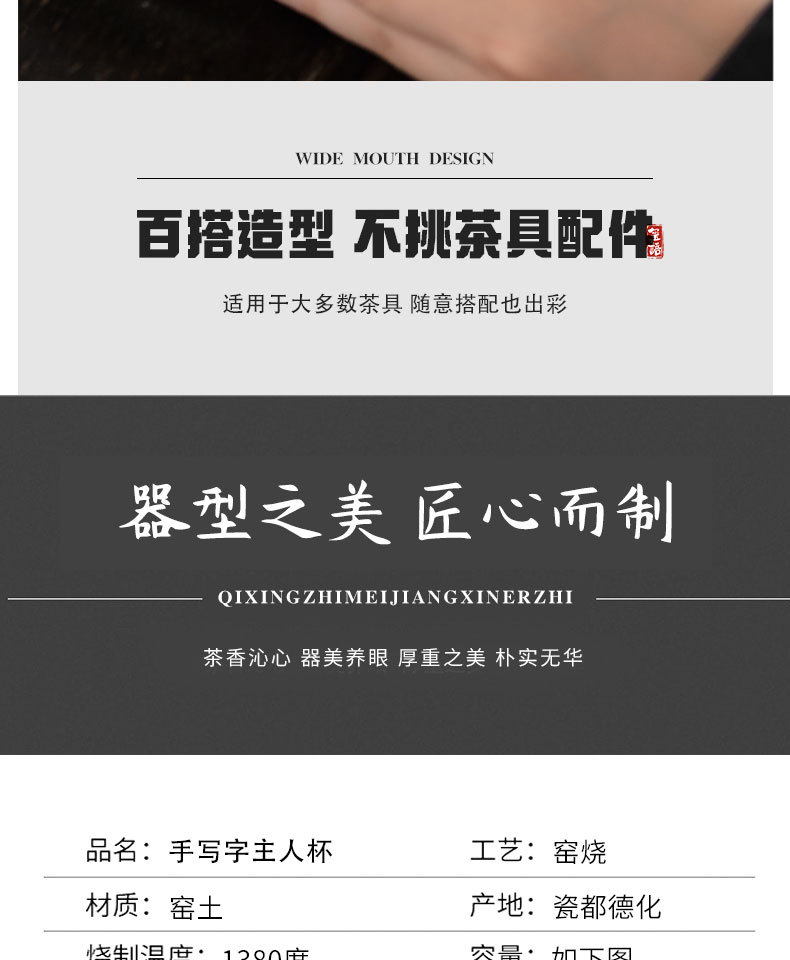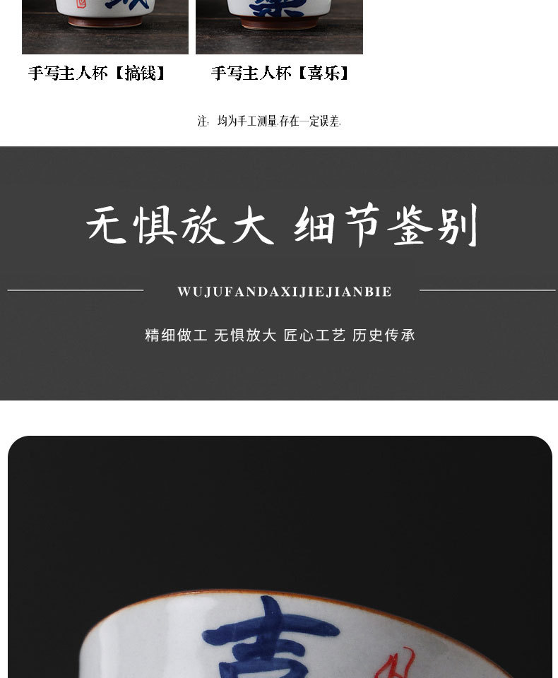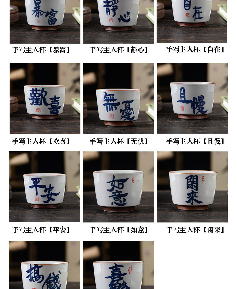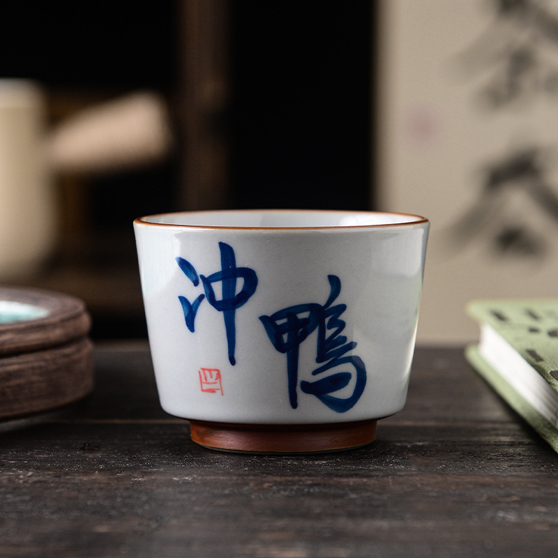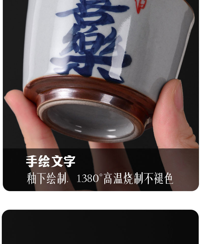 草木灰书写主人杯品茗杯创意家用复古手绘大号喝茶杯茶盏功夫茶具