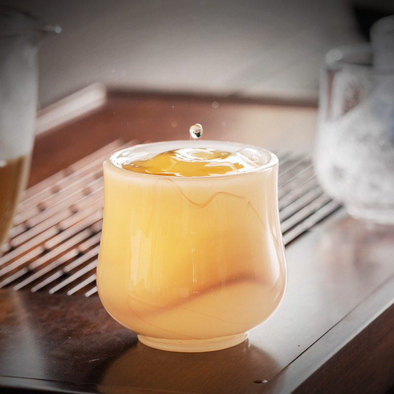 中式琉璃主人杯单杯玉瓷水墨风品茗茶杯子纯色玻璃茶盏90ml白玉瓷