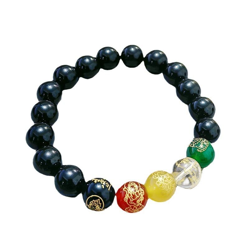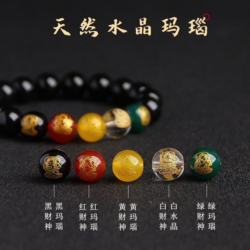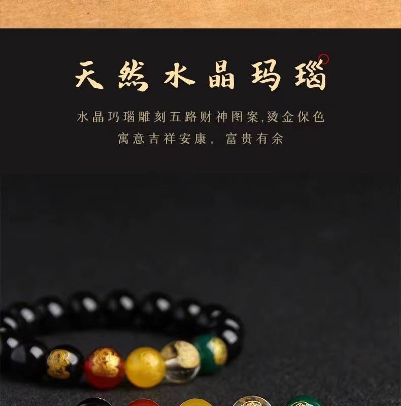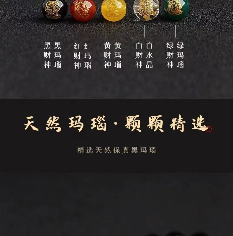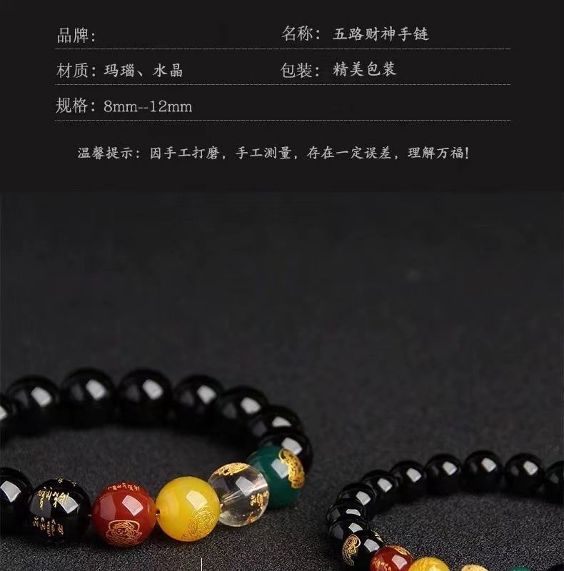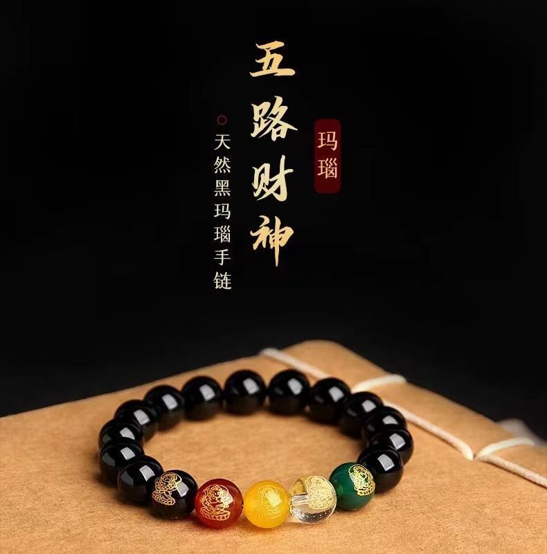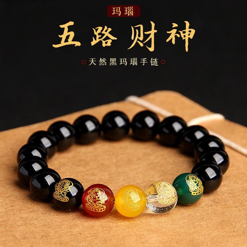 正品同款五路财神手链五行天然黑曜石本命年手串玛瑙手链男款