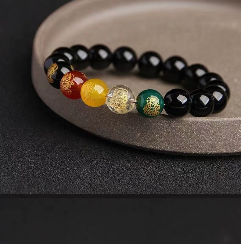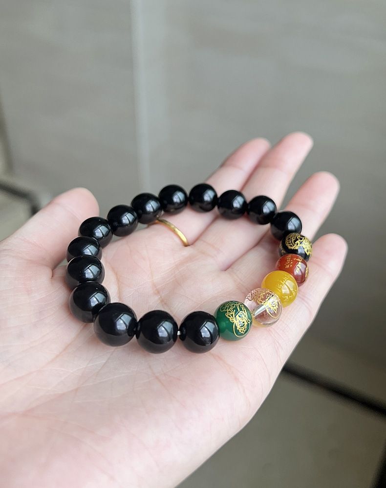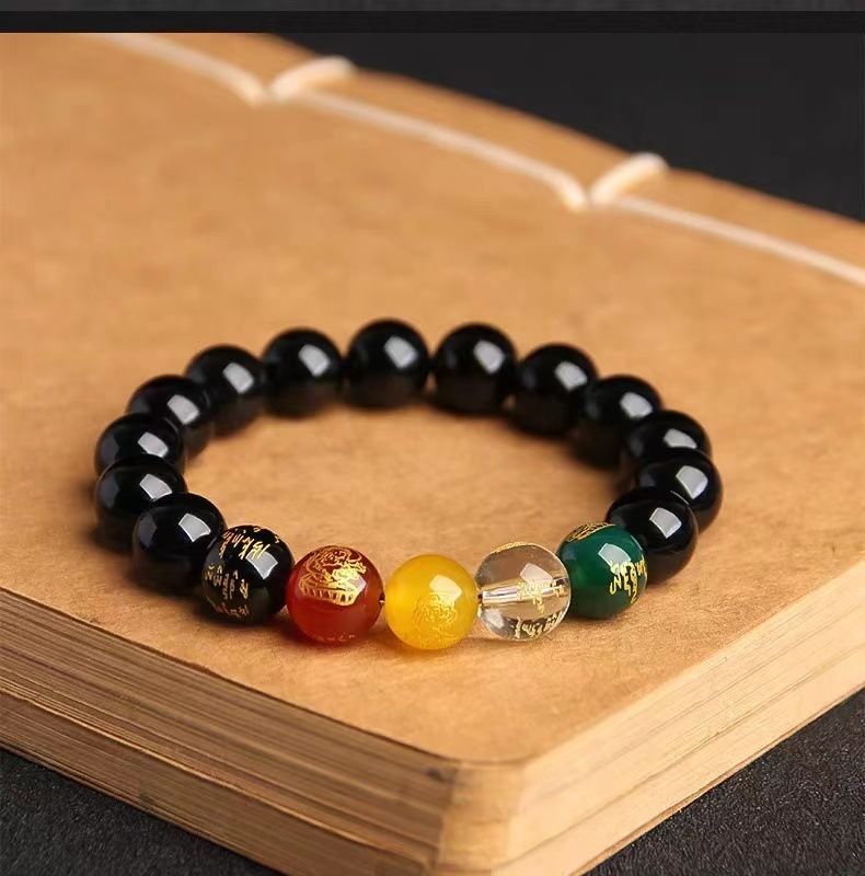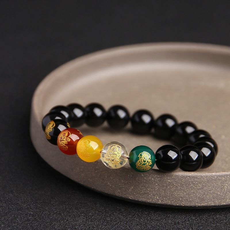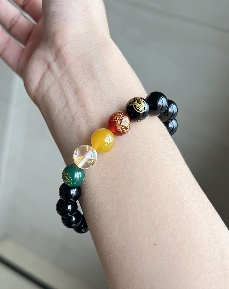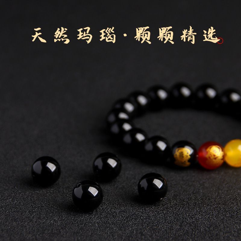 正品同款五路财神手链五行天然黑曜石本命年手串玛瑙手链男款