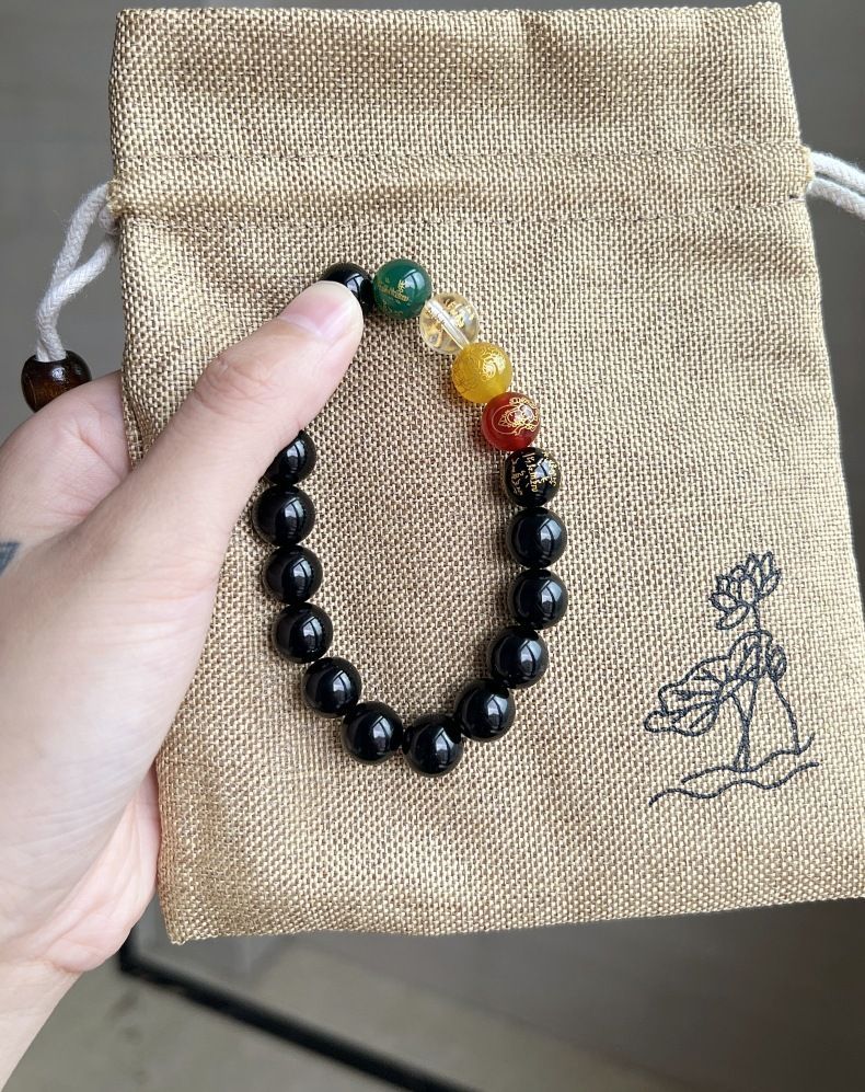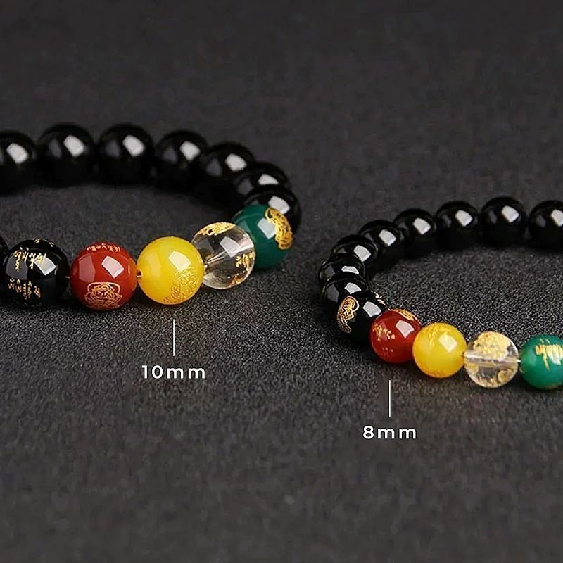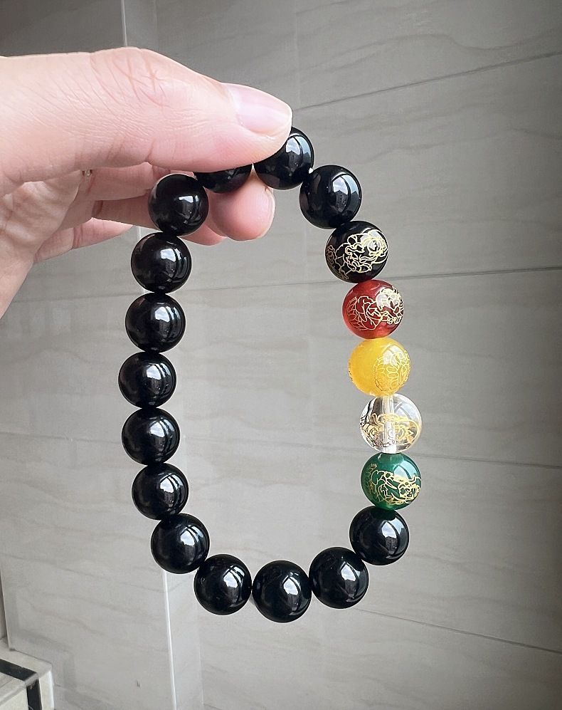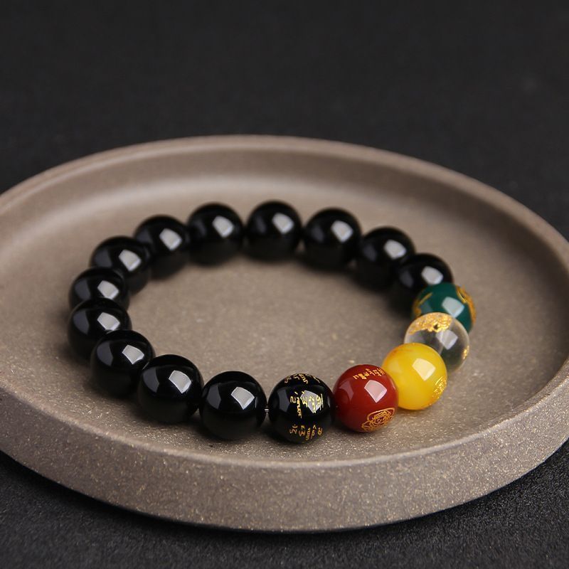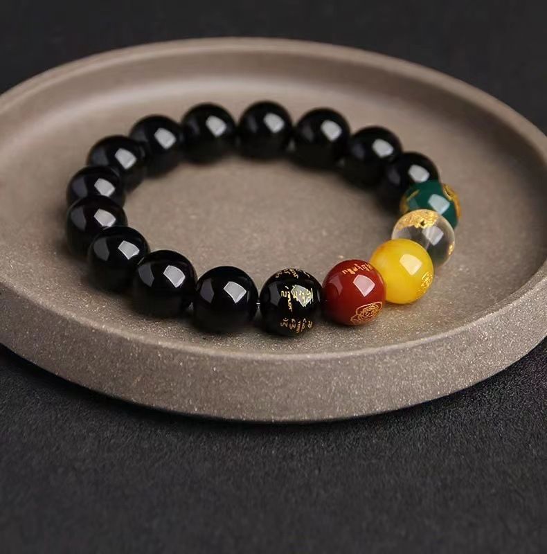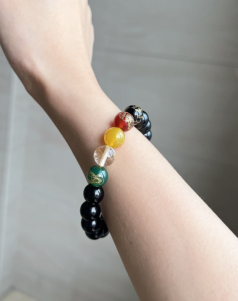 正品同款五路财神手链五行天然黑曜石本命年手串玛瑙手链男款