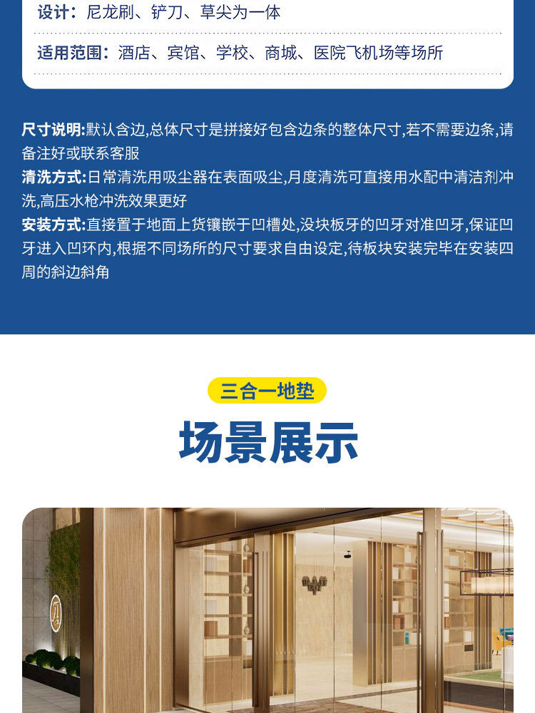 三合一地垫进门防滑入户门地毯拼接入户室外门口商用吸水除尘脚垫