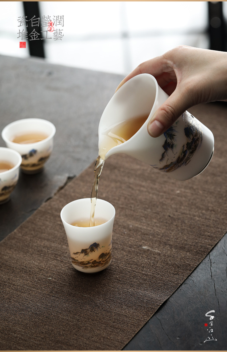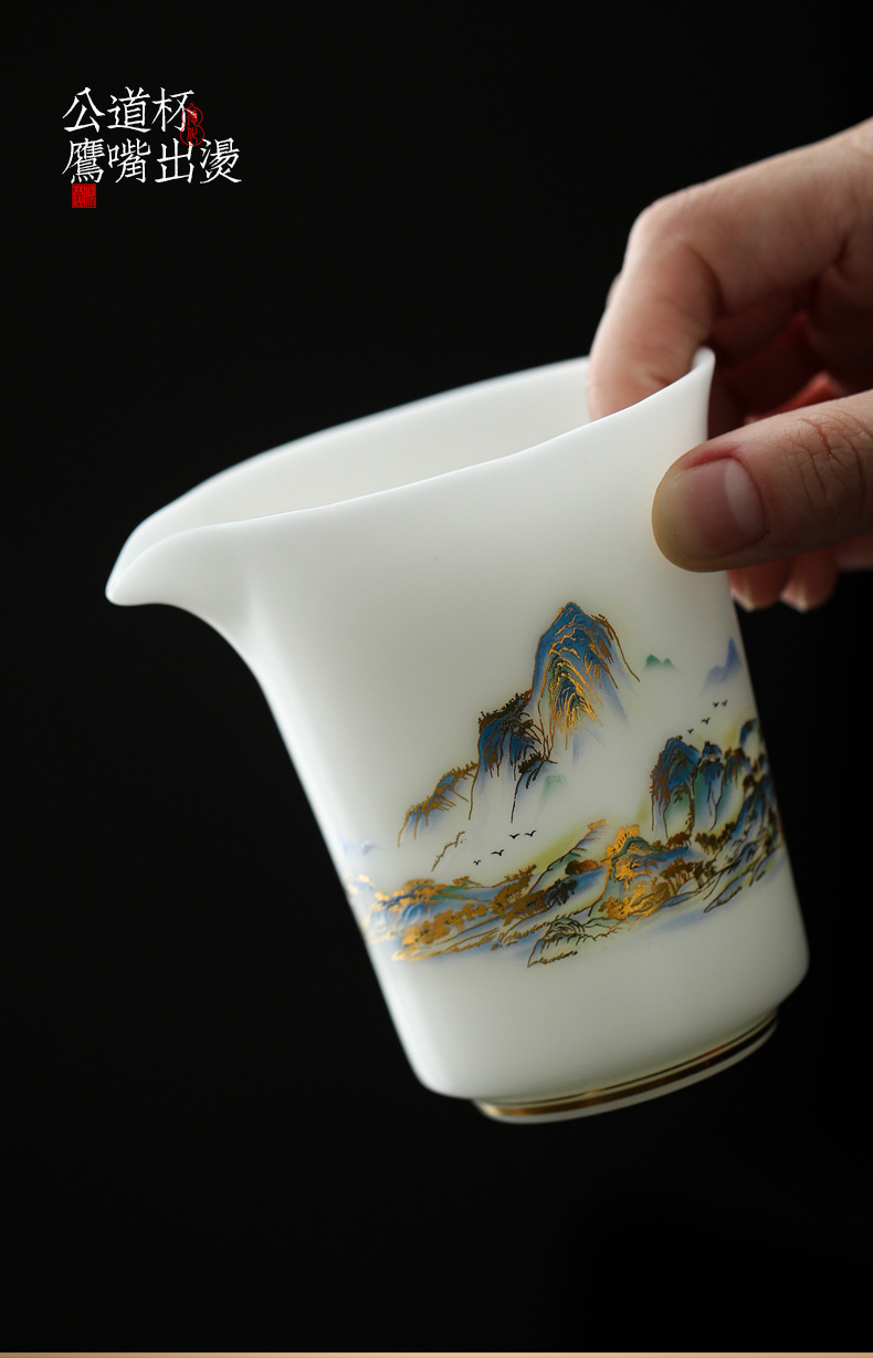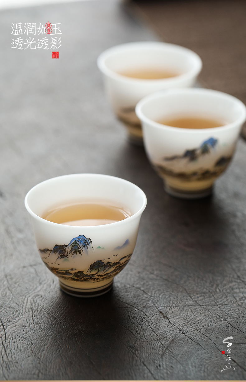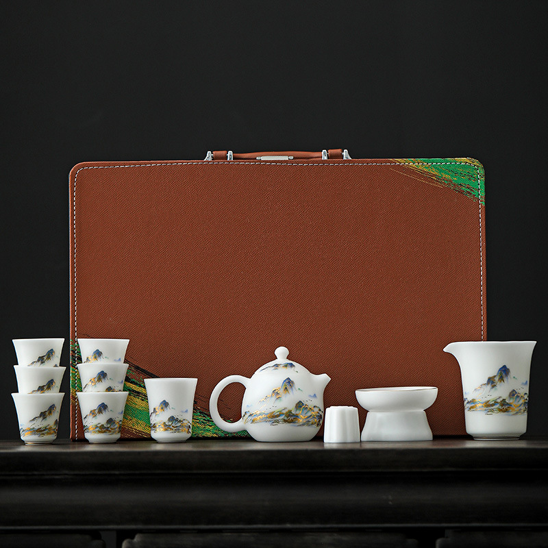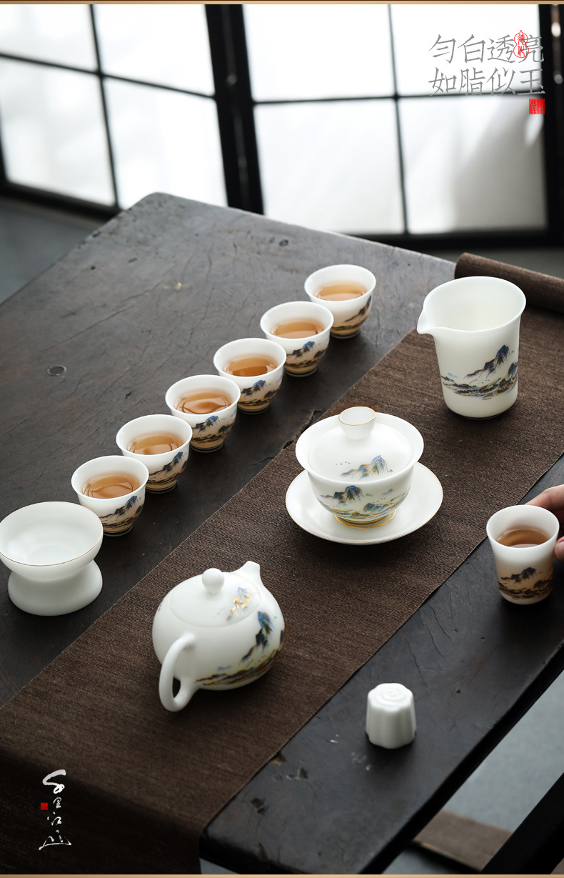 厂家高端千里江山冰种玉瓷盖碗茶杯壶功夫茶具套装送礼可做logo