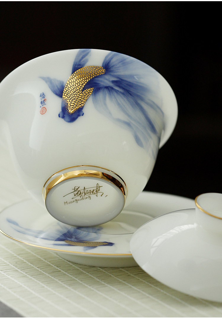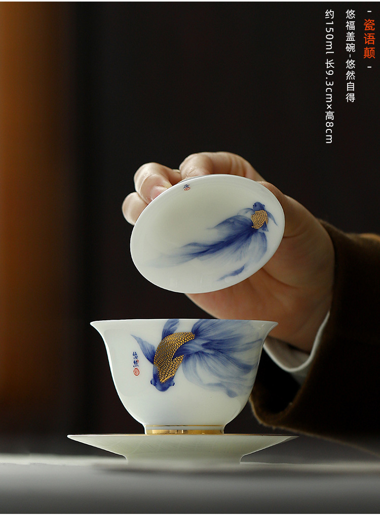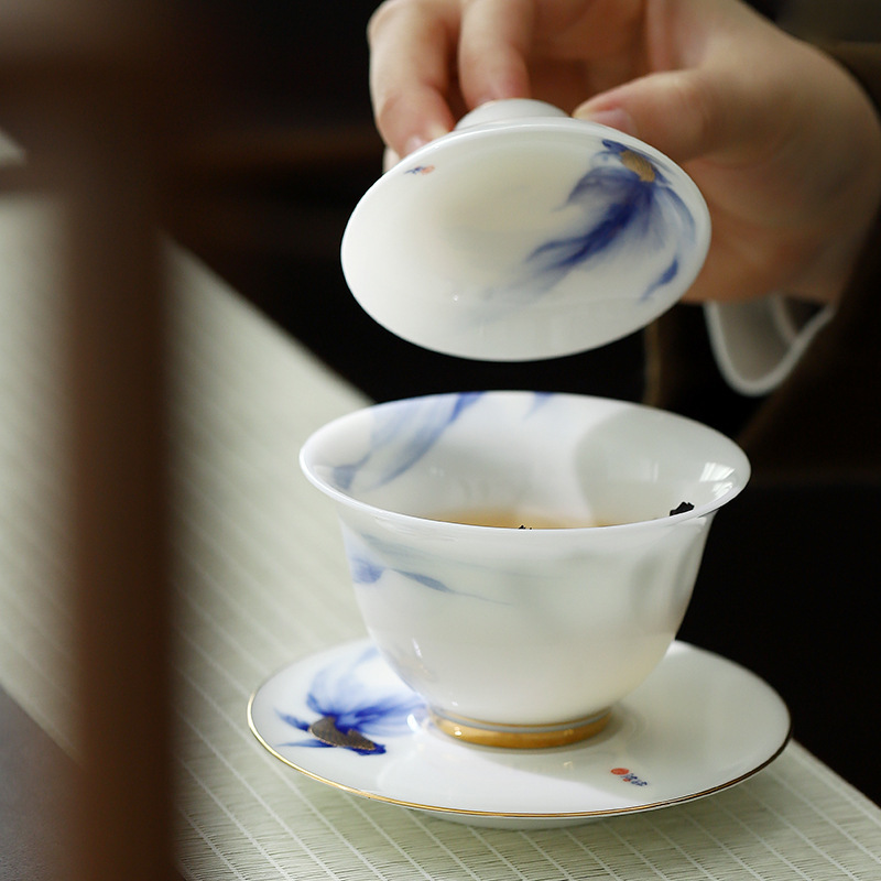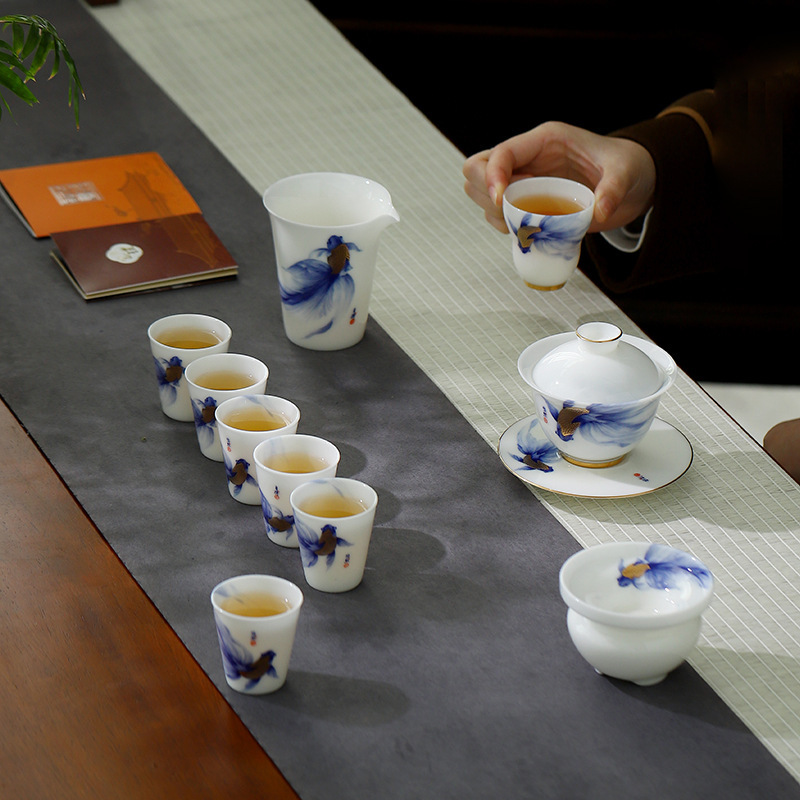 畅发 渡景山房陶瓷白瓷功夫茶具套装整套家用客厅轻奢高档中式