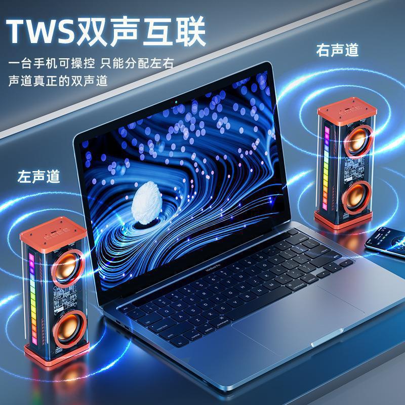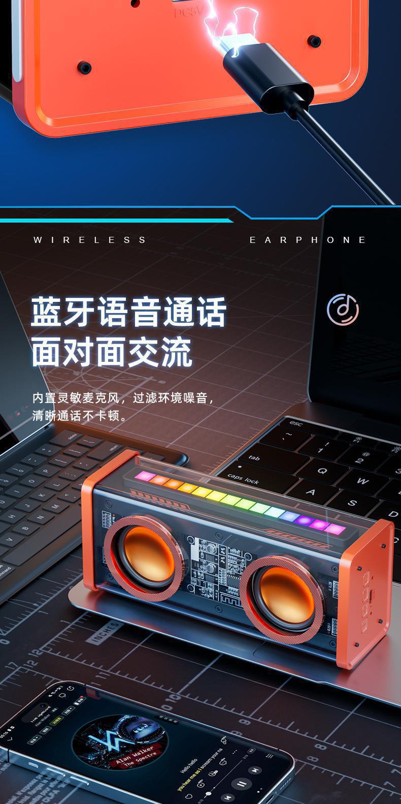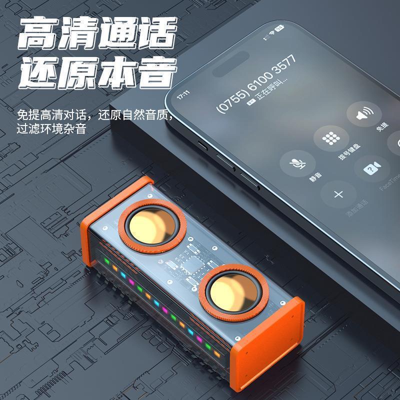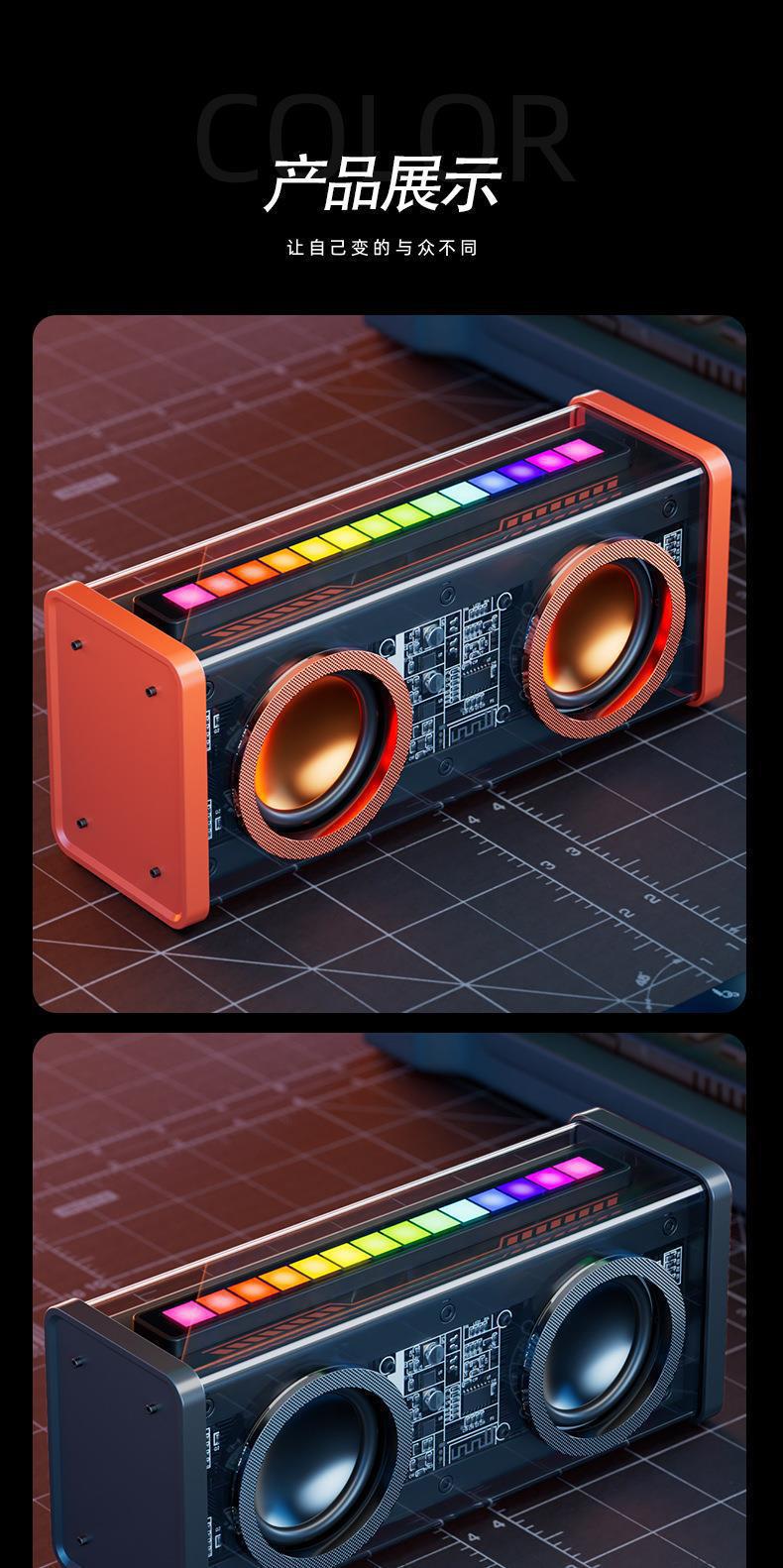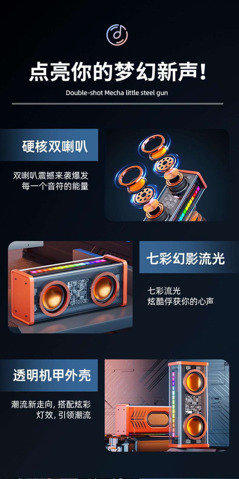 S01透明机甲双喇叭无线蓝牙音响创意炫彩模式小钢炮低音振膜!