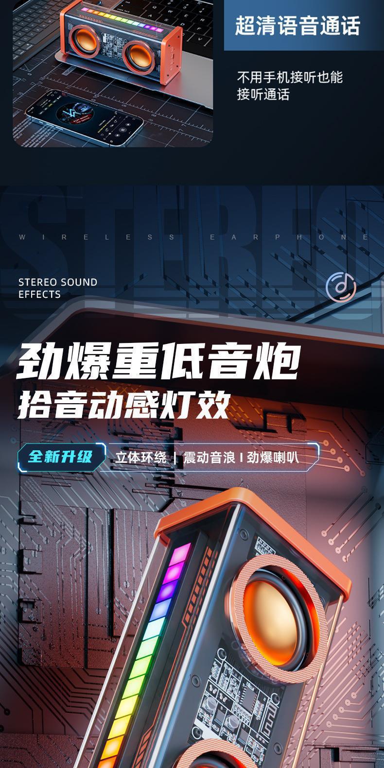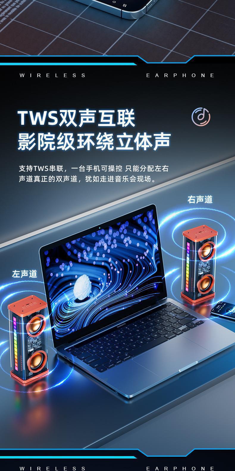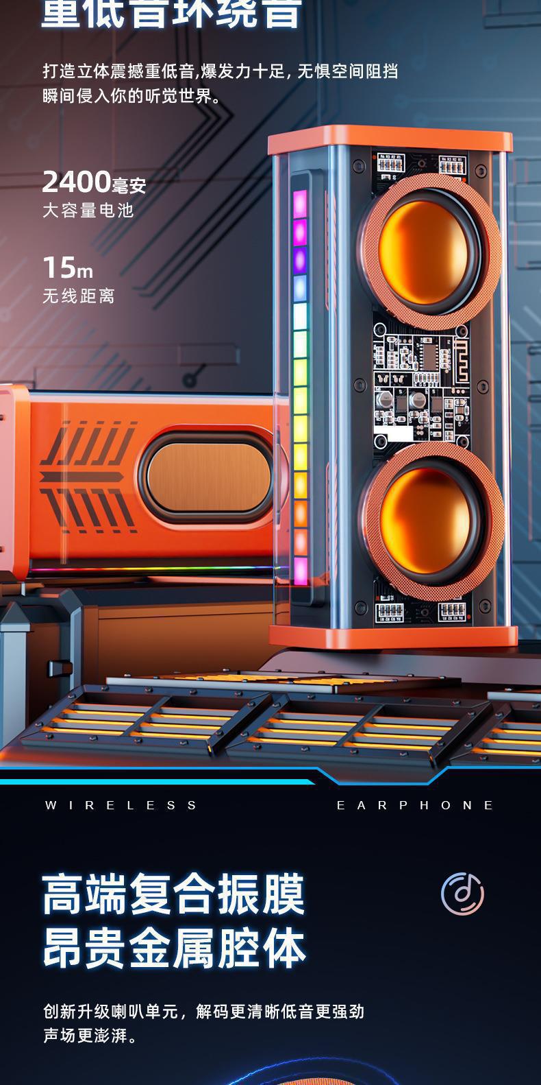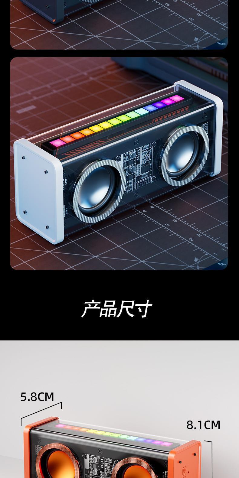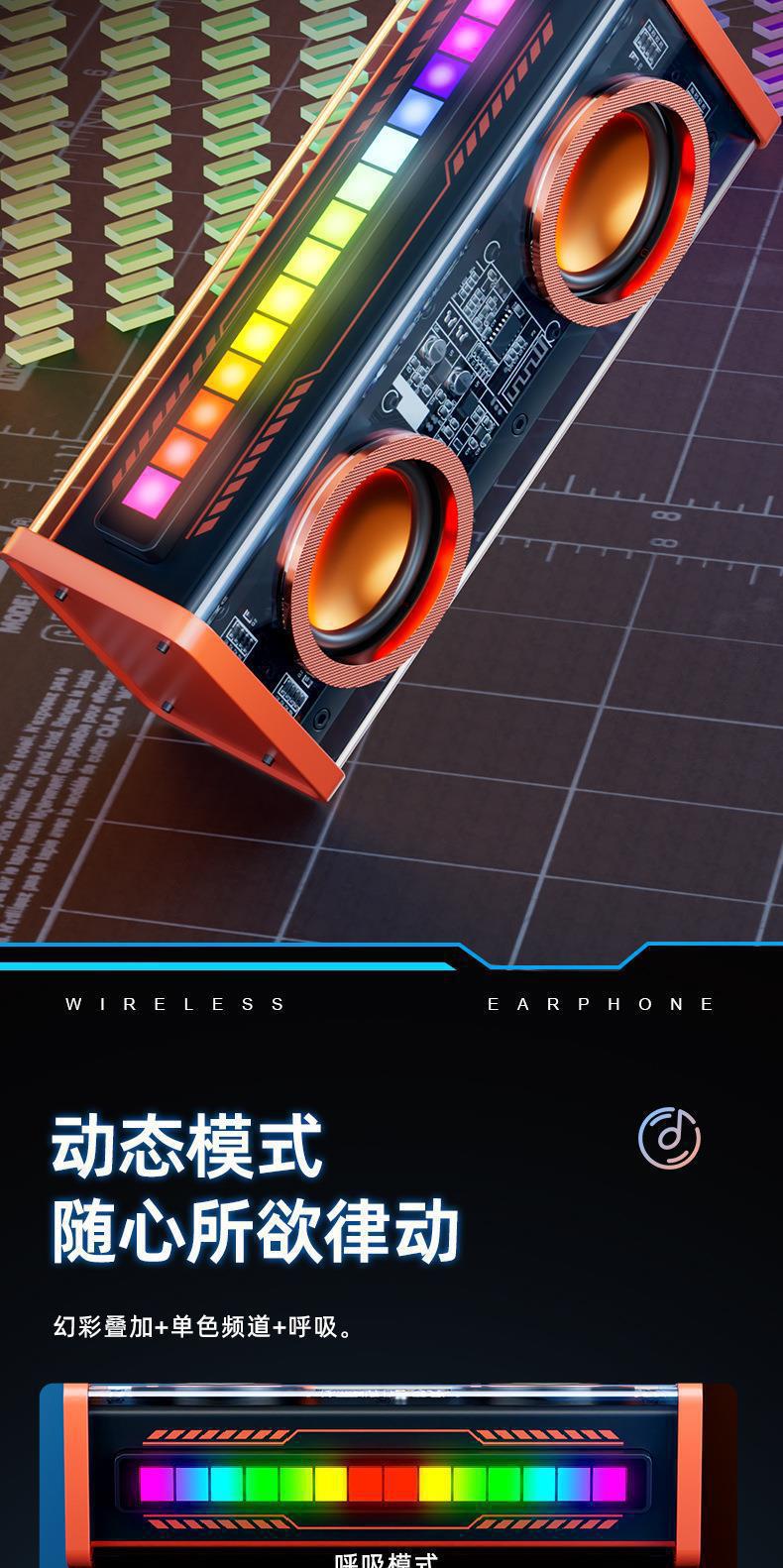 S01透明机甲双喇叭无线蓝牙音响创意炫彩模式小钢炮低音振膜!