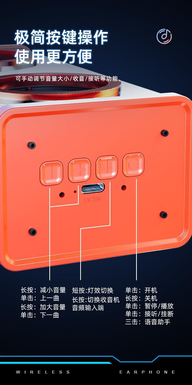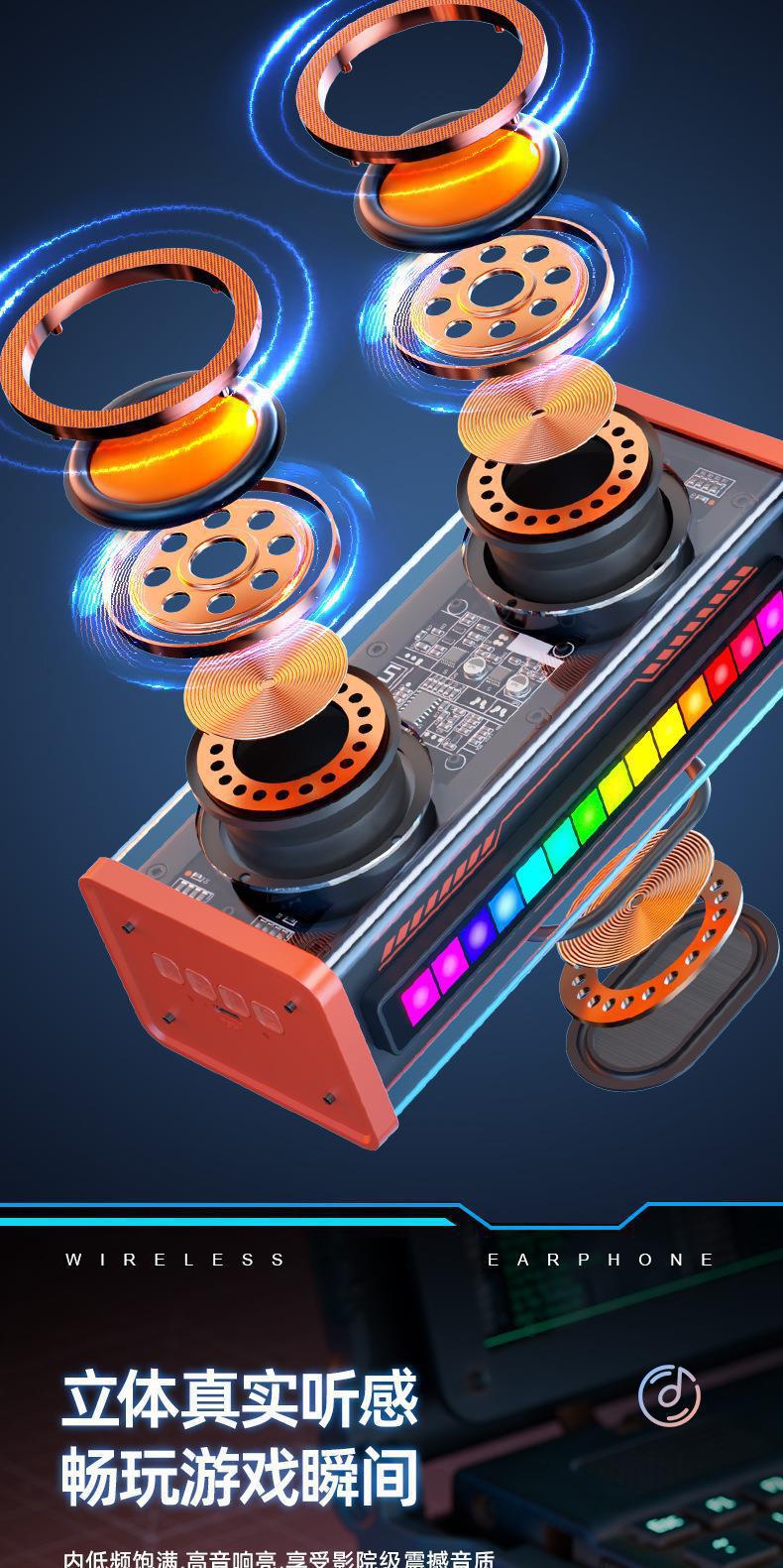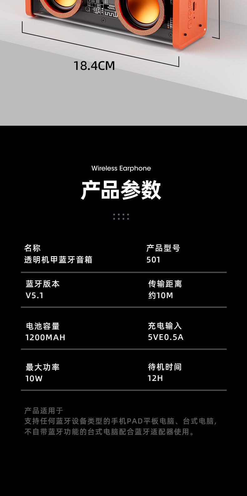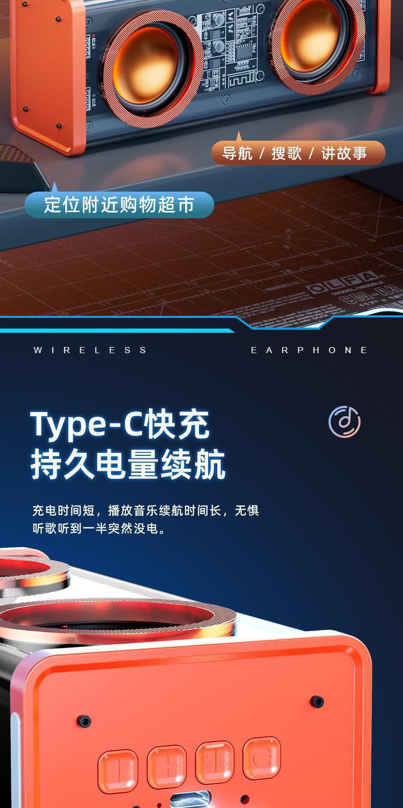 S01透明机甲双喇叭无线蓝牙音响创意炫彩模式小钢炮低音振膜!