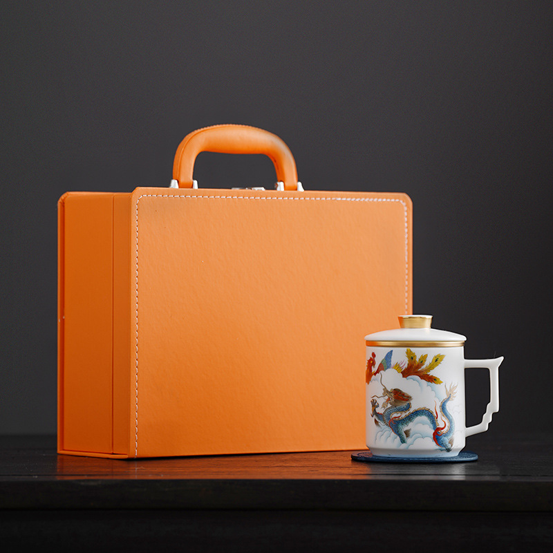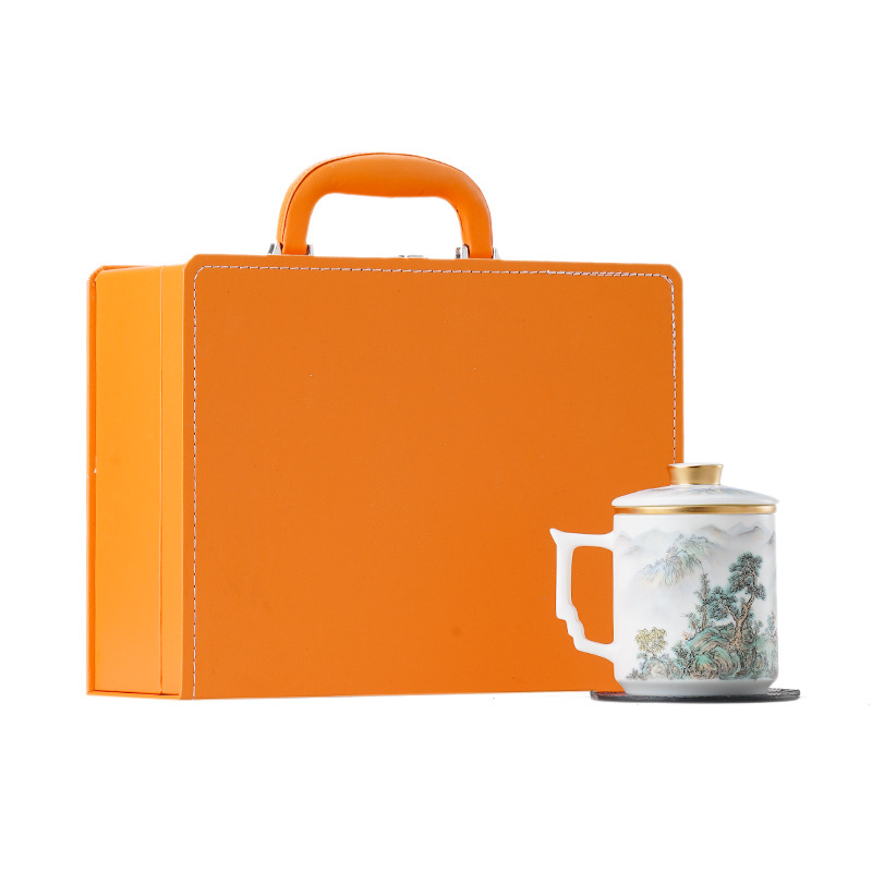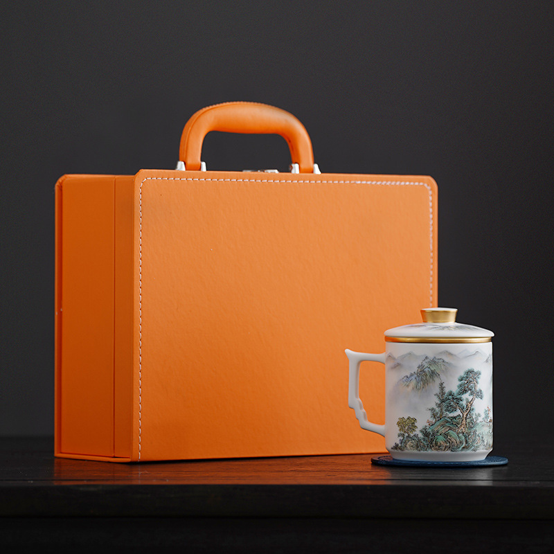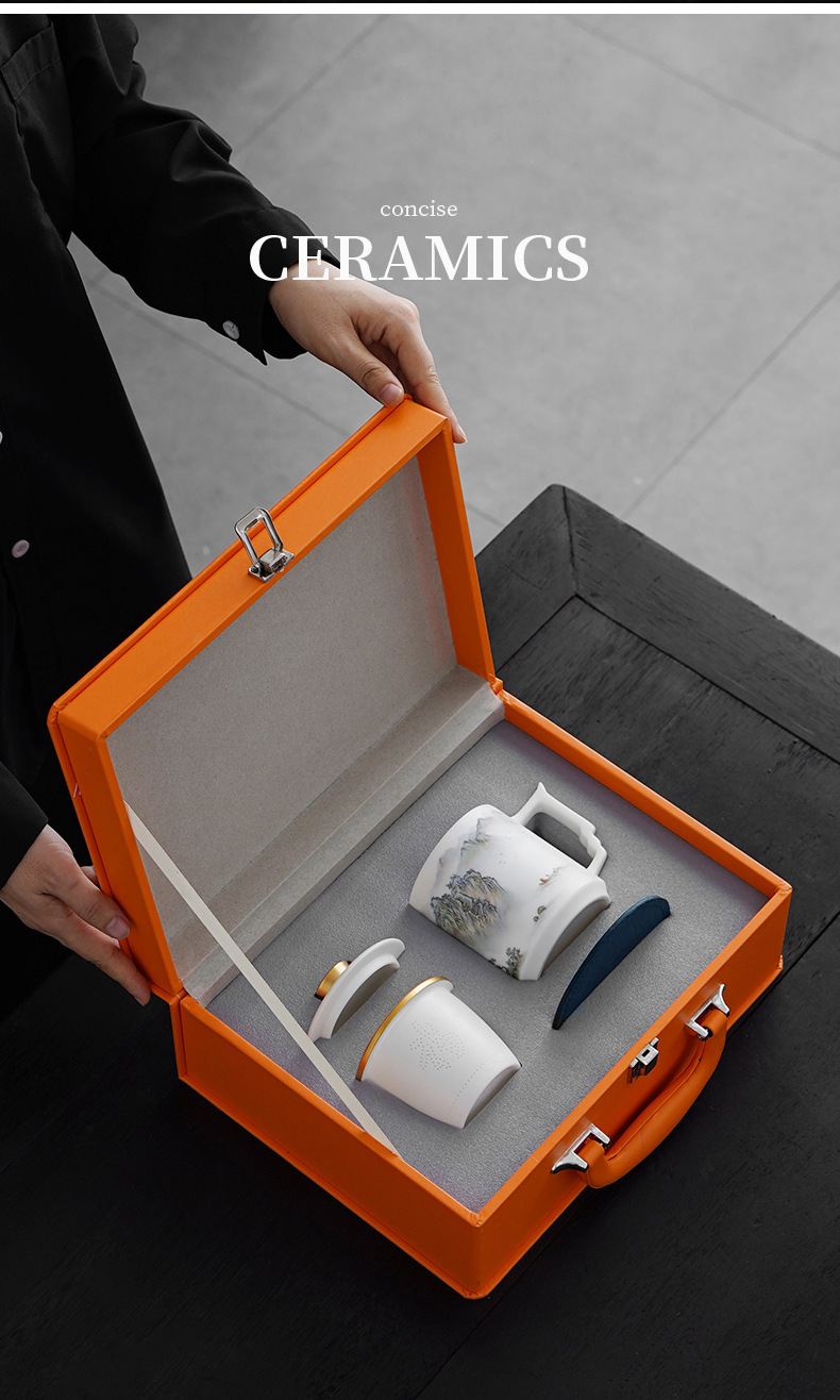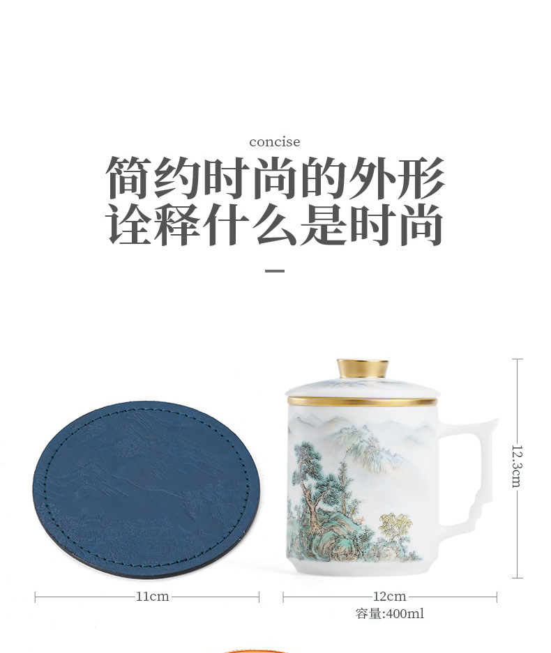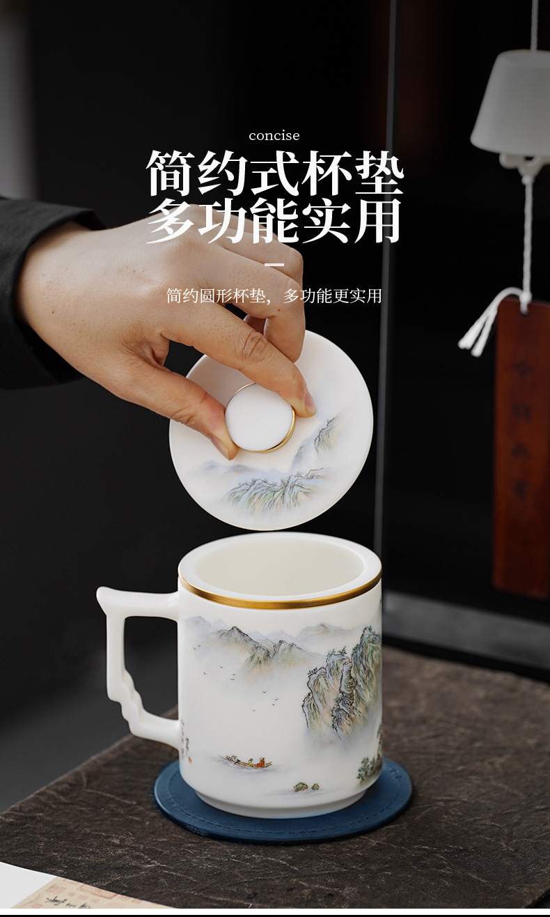 手绘羊脂玉陶瓷办公杯带盖过滤茶杯茶水分离水杯泡茶杯礼品定图案