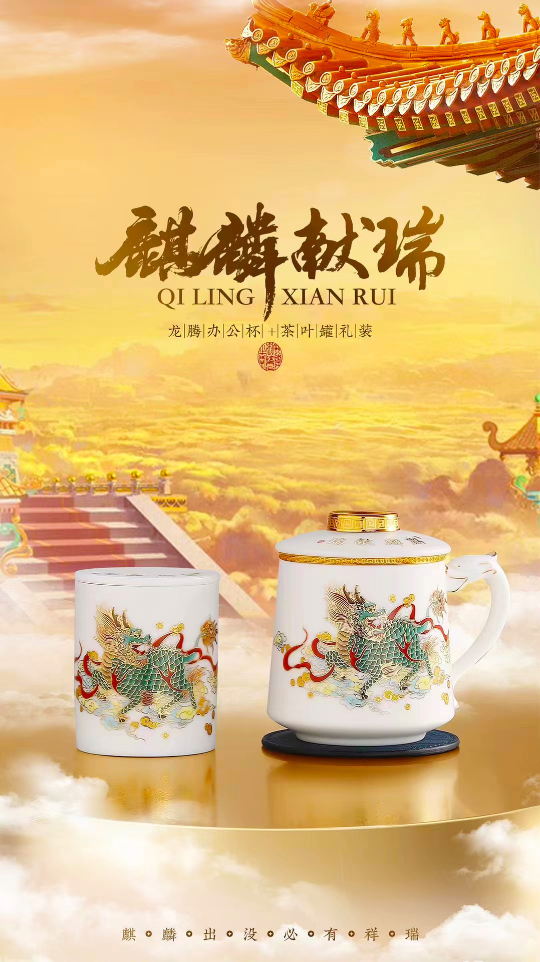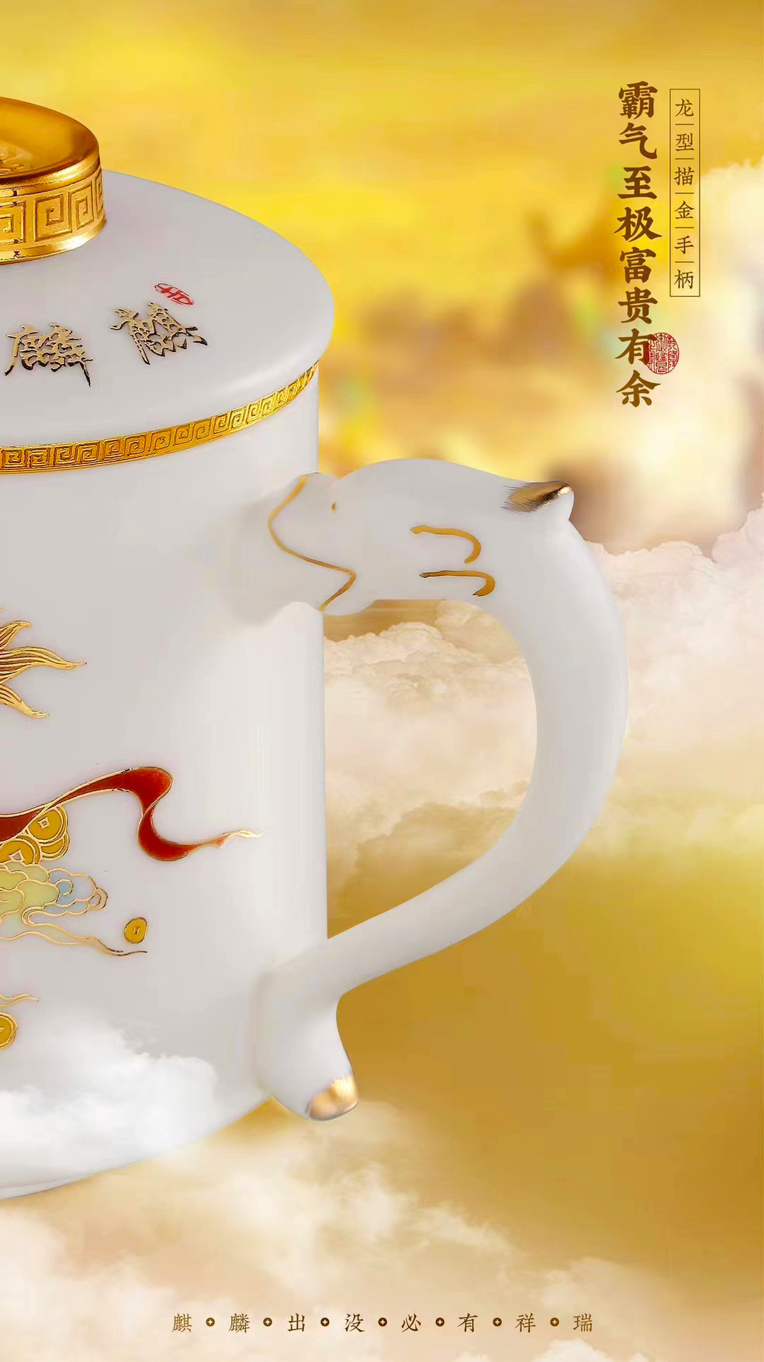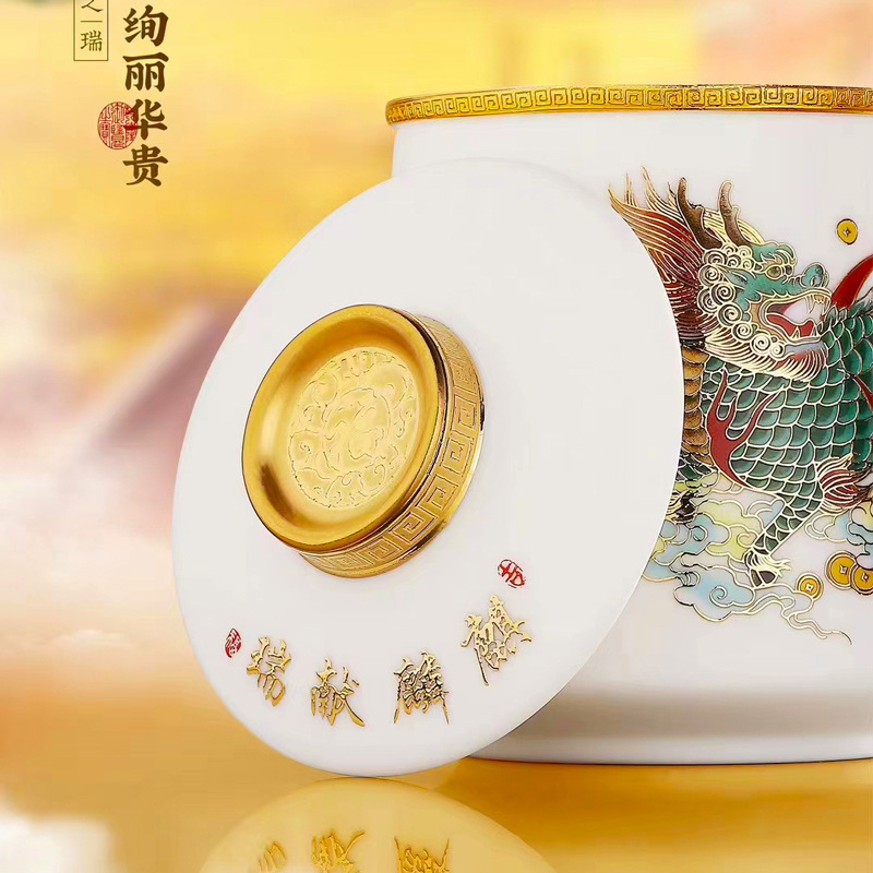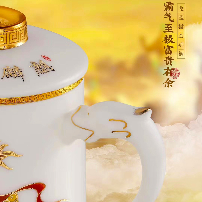 畅发 羊脂玉瓷陶瓷白瓷办公杯高档泡茶杯水杯马克杯麒麟献瑞