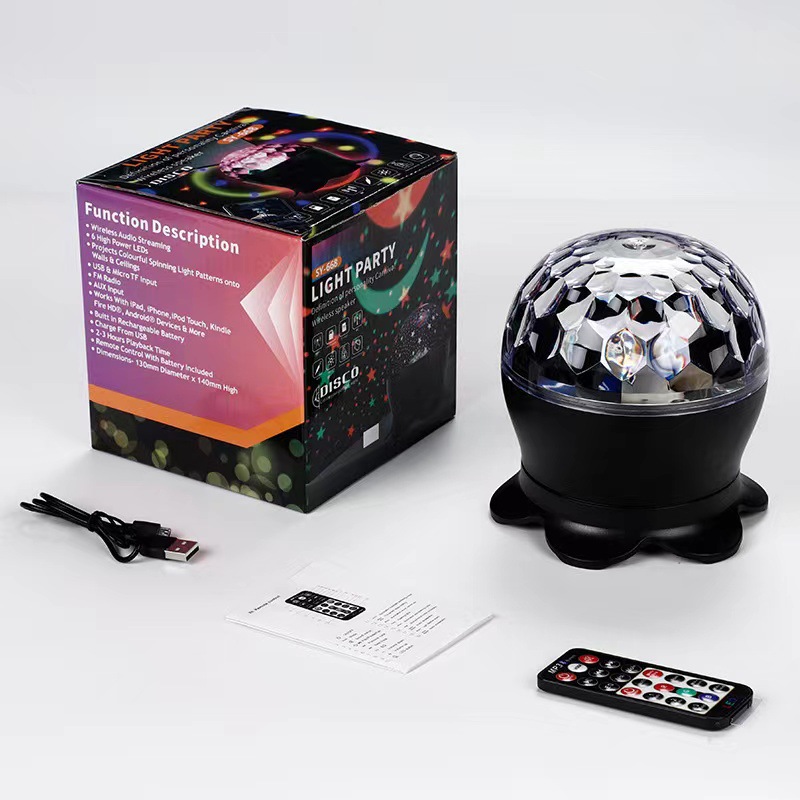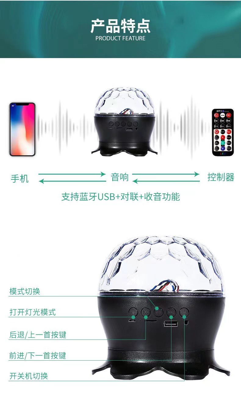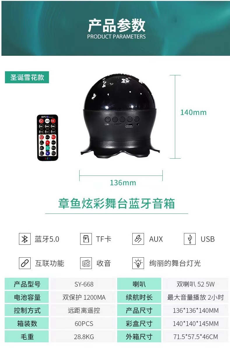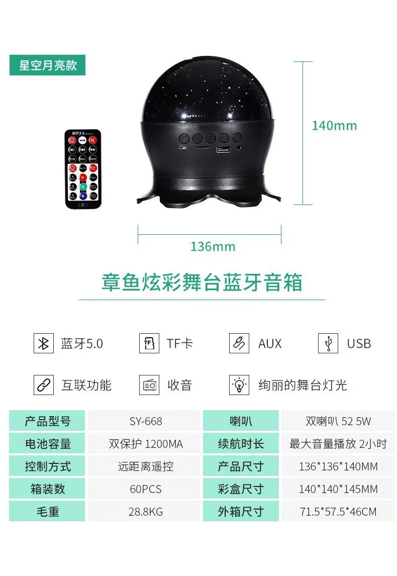 SY-668便携式舞台炫彩灯光蓝牙音响户外旋转灯家用创意无线音箱