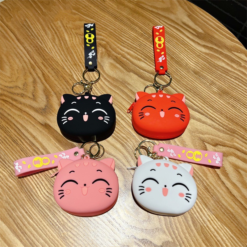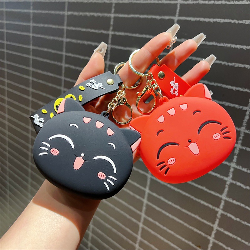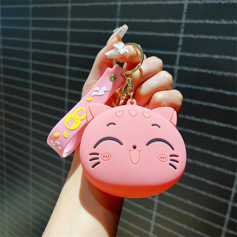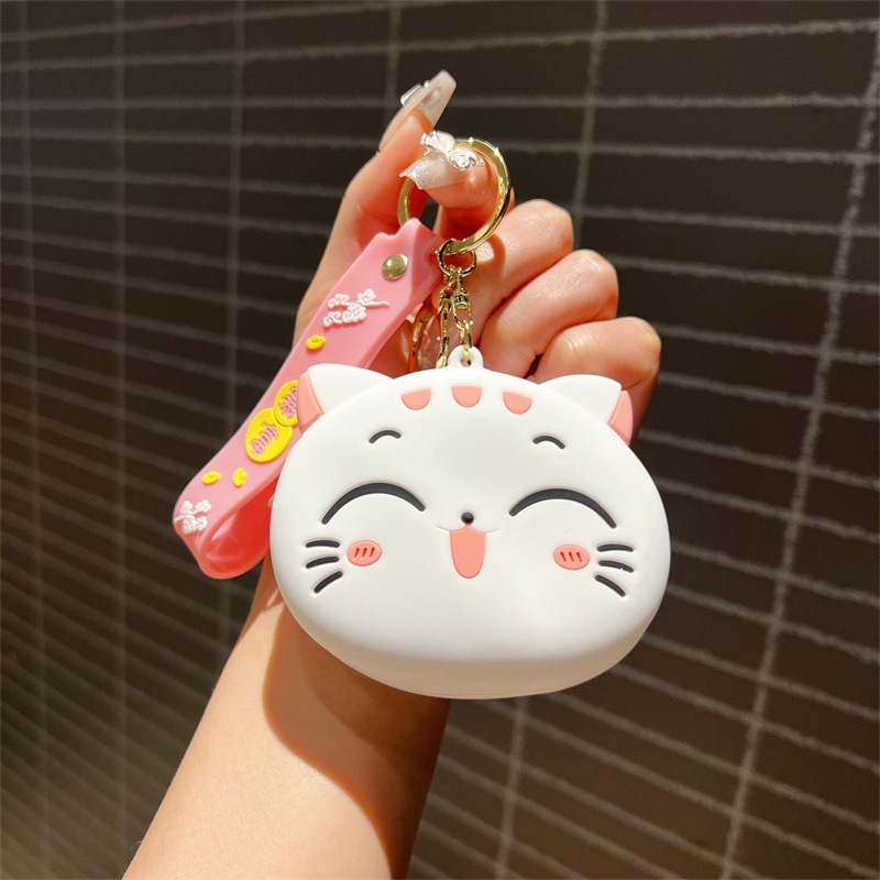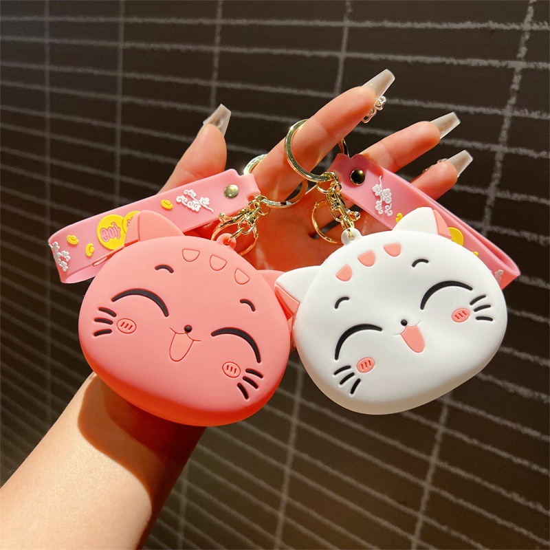 创意卡通招手猫零钱包挂件可爱招手猫咪钥匙包学生卡包配饰批发