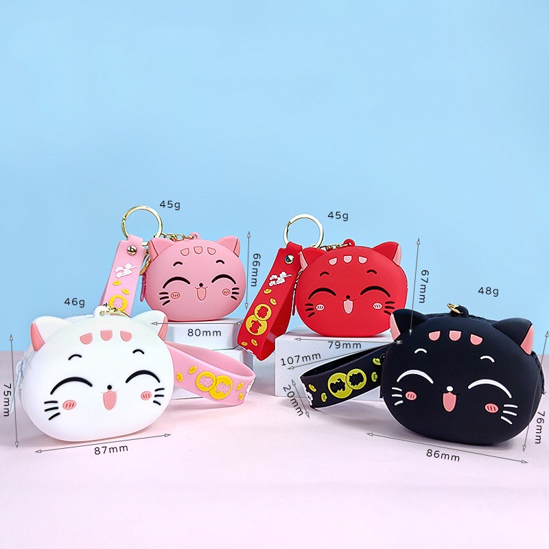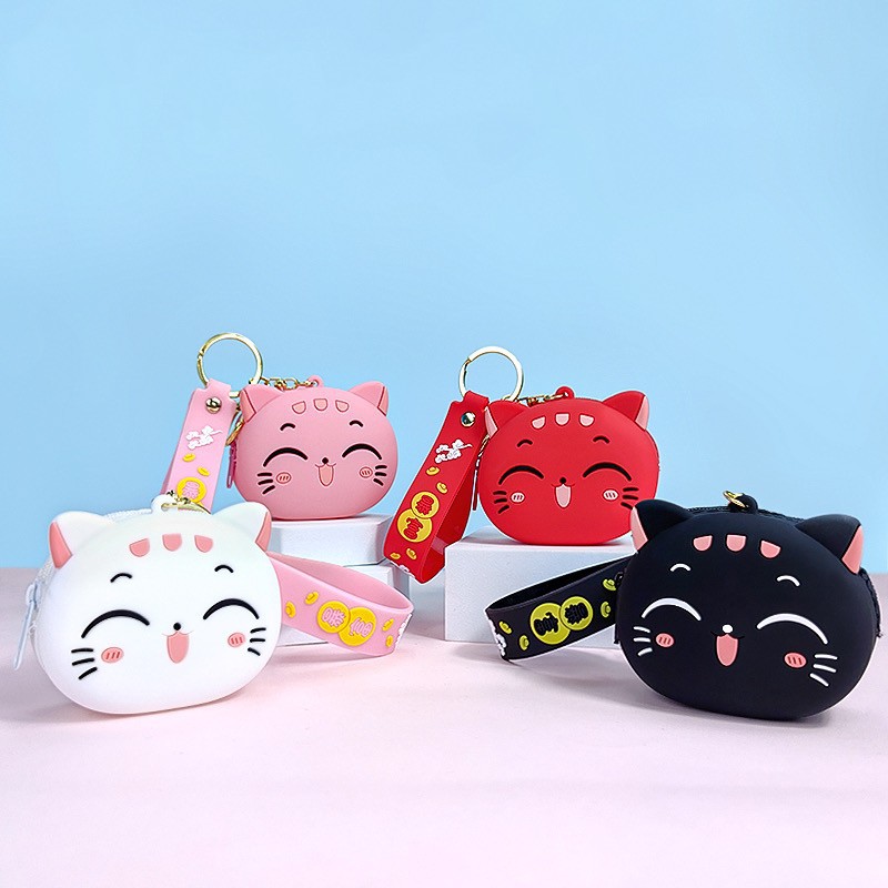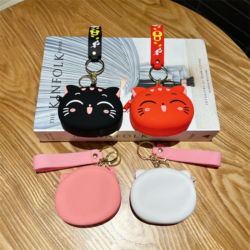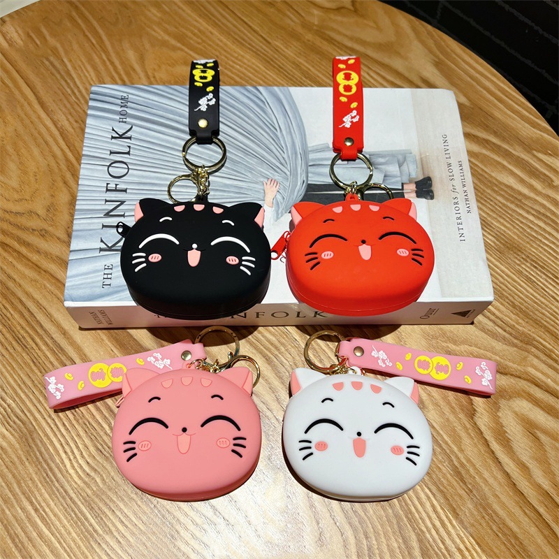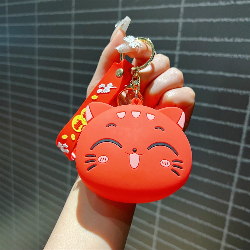 创意卡通招手猫零钱包挂件可爱招手猫咪钥匙包学生卡包配饰批发