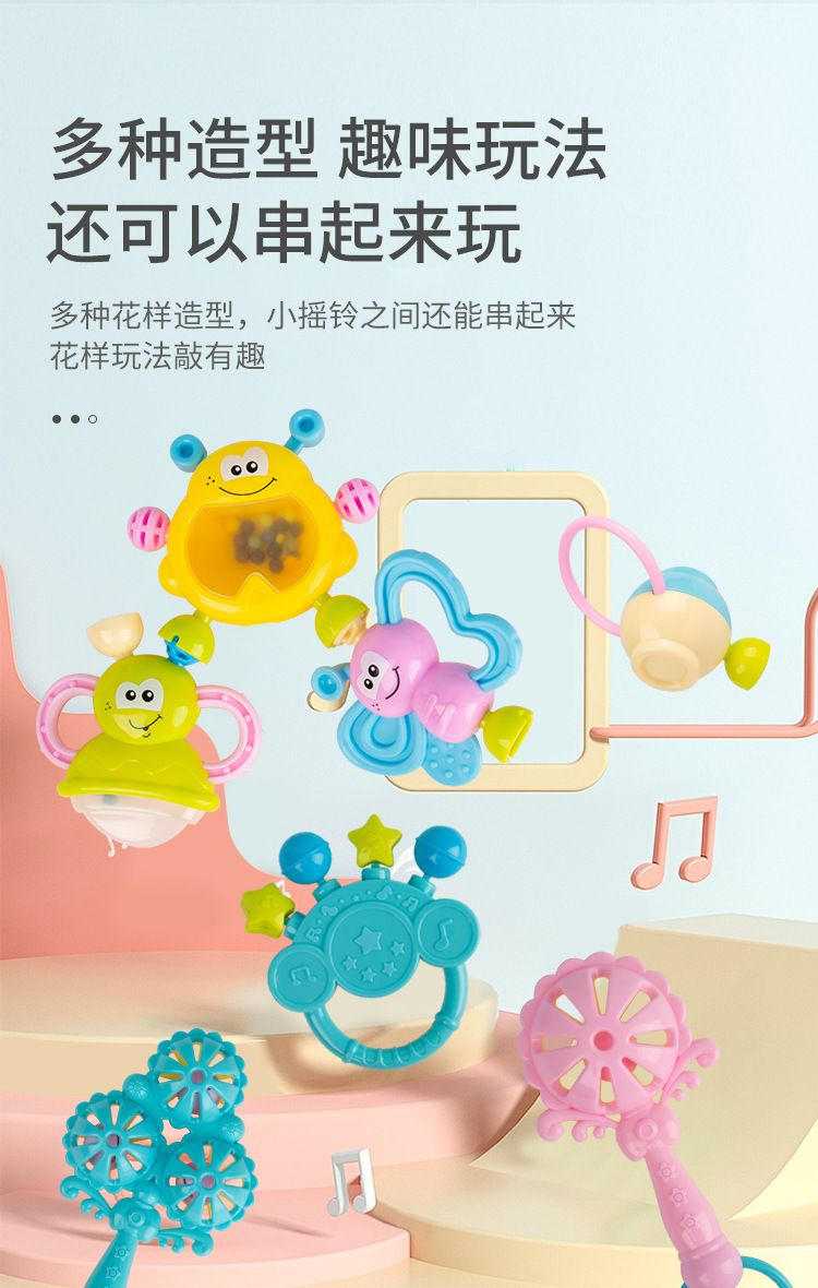 | rattle 10-piece set + storage box(摇铃10件套+收纳盒) | USD $4.9 | 99999 piece available |