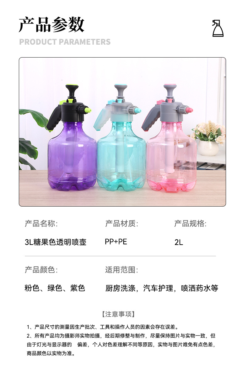 厂家供应糖果色透明喷壶 家用创意气压式浇花洒水壶 花卉喷雾器