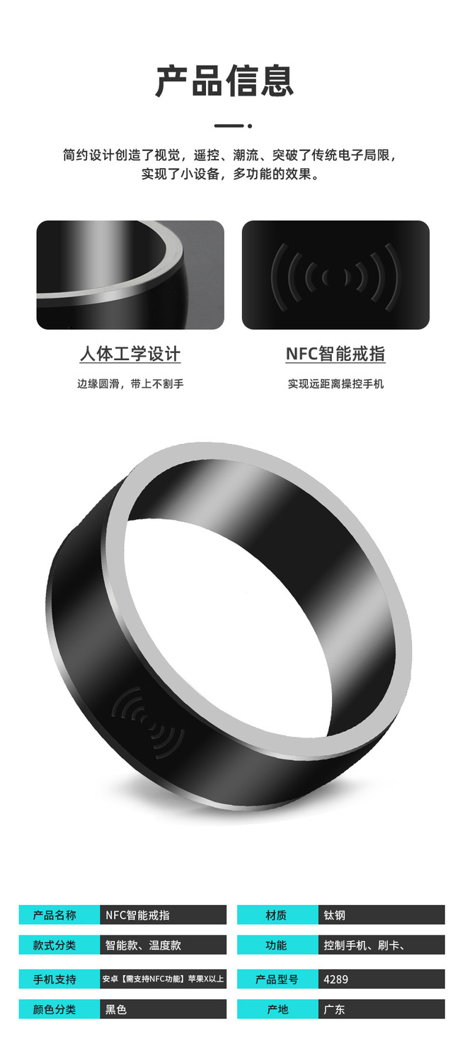 NFC智能戒指黑科技多功能蓝牙戒指太阳能防水不掉色门禁卡指环