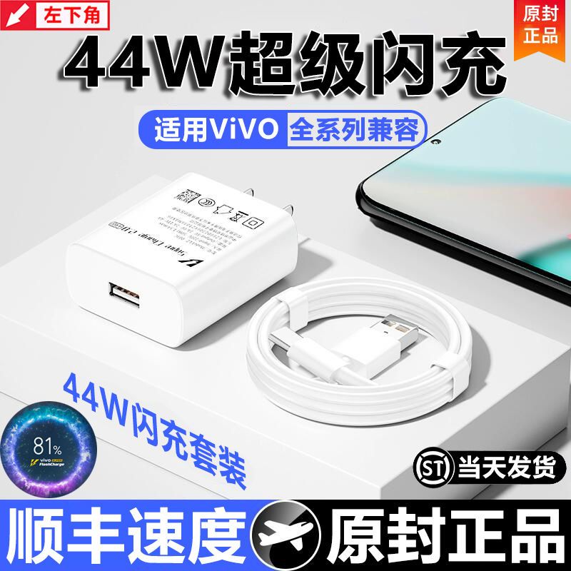 适用vivo充电器44W双引擎闪充头X60/X30手机数据线S7快速充电套装