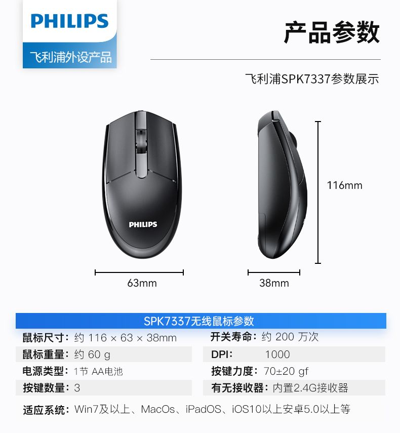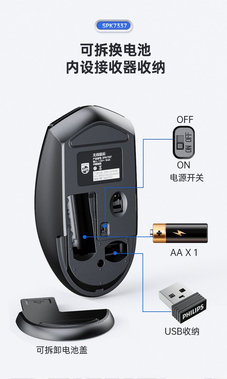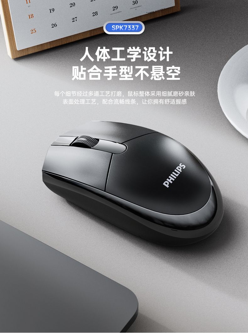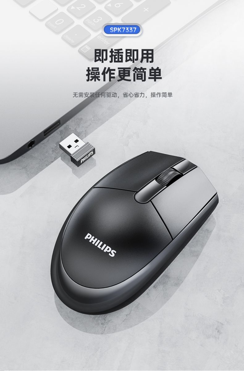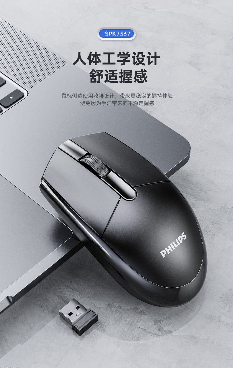 飞利浦无线鼠标低音笔记本台式机电脑家用小巧便携办公游戏通用