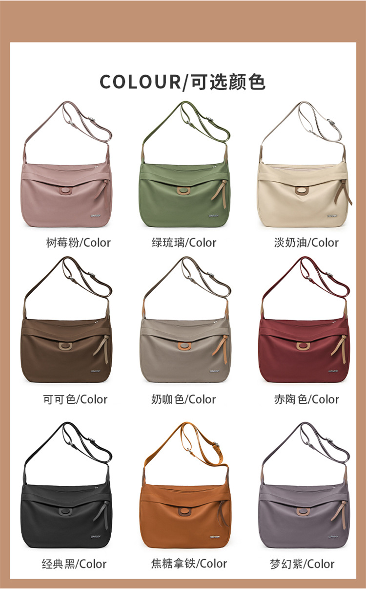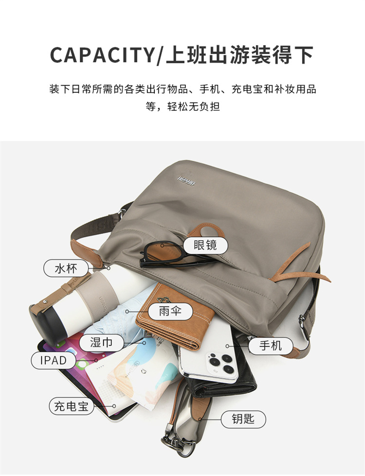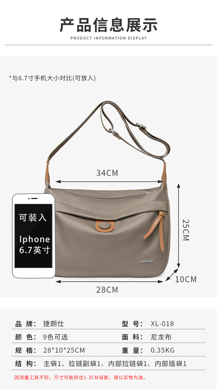 时尚通勤单肩背包户外出行斜挎包尼龙布包休闲女潮包