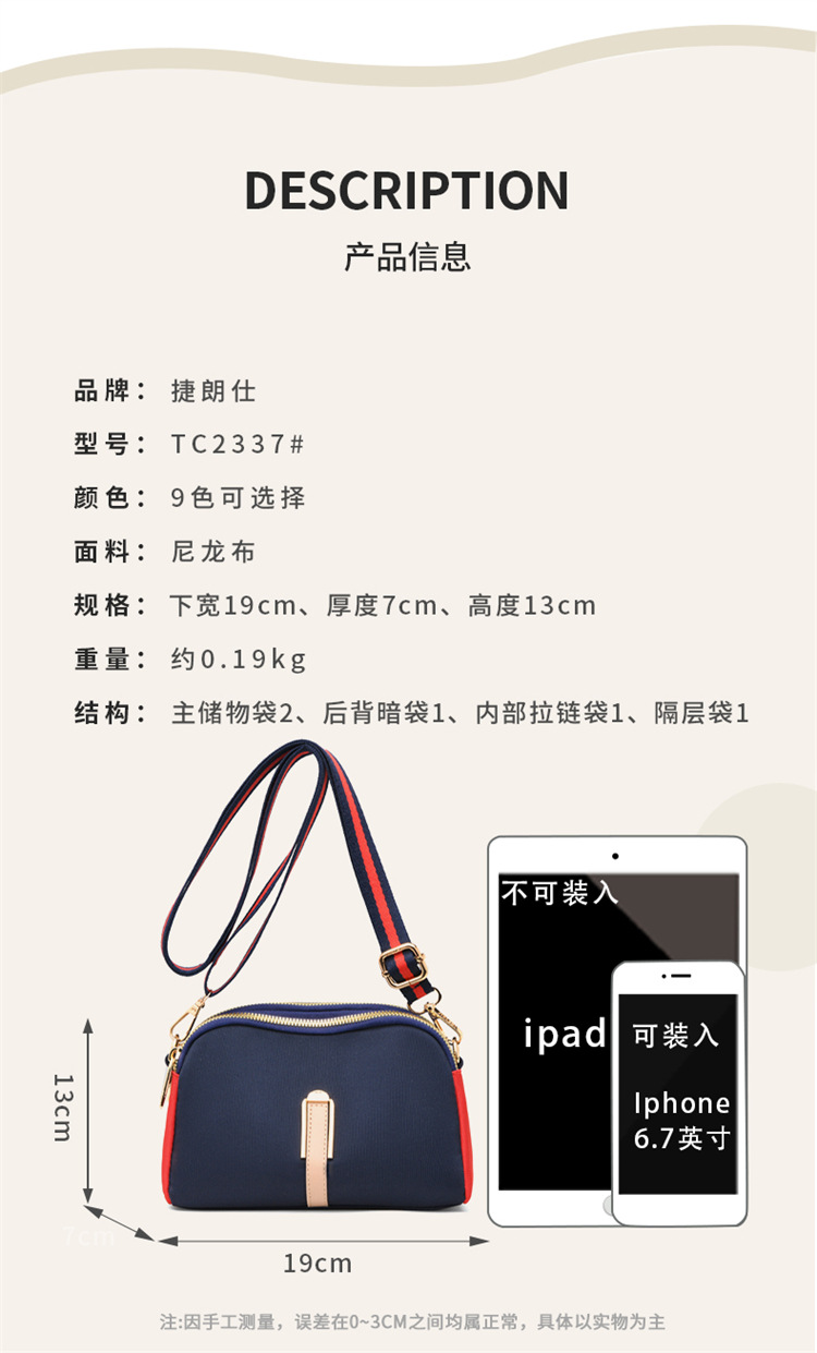 新款女士单肩包轻便尼龙布包逛街通勤包潮流休闲斜挎包