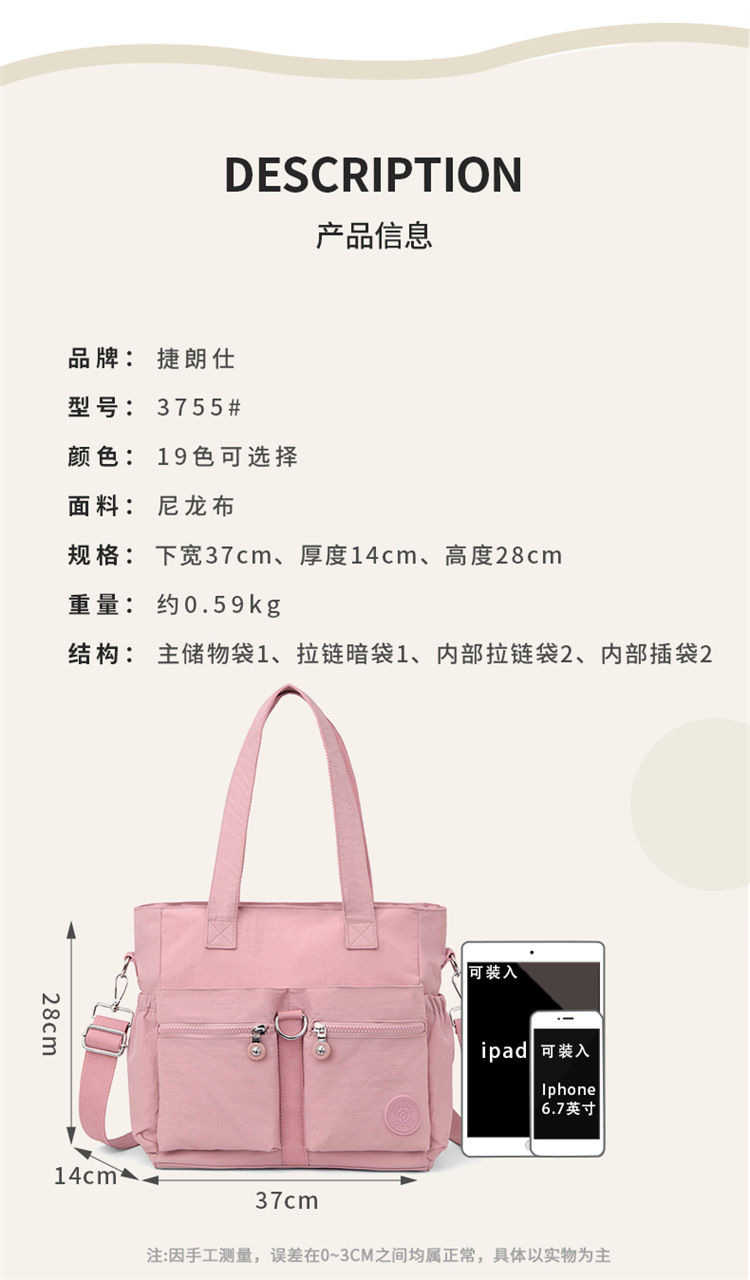 托特包潮流女士单肩背包轻便尼龙布包休闲斜挎手提包