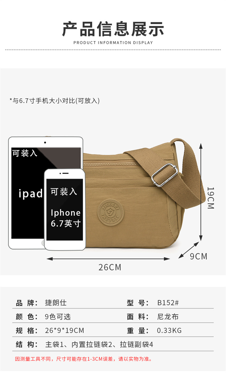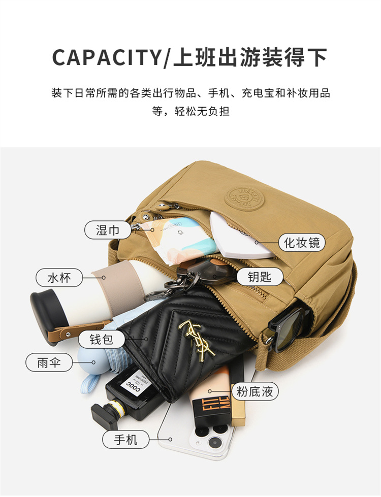 时尚单肩背包女士斜挎包潮流逛街通勤包轻便尼龙布包