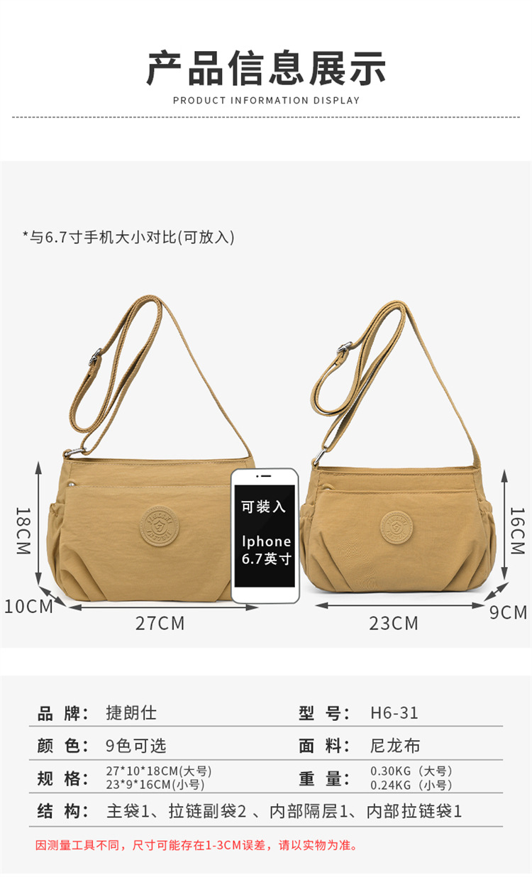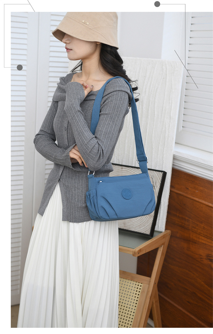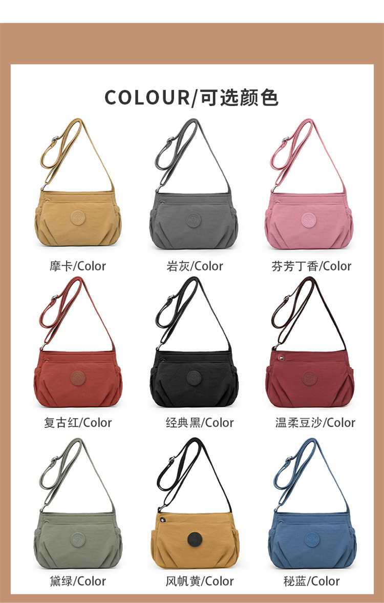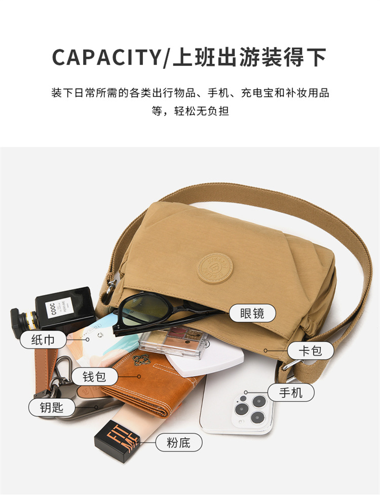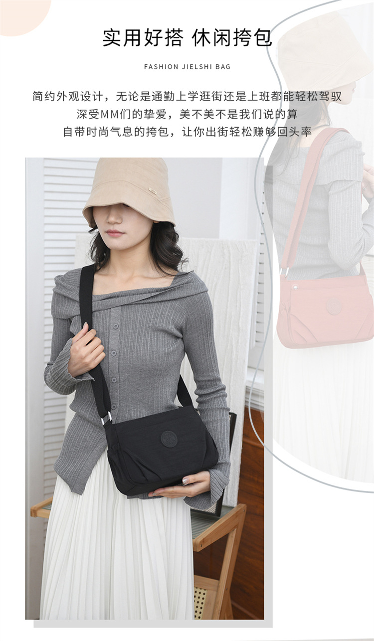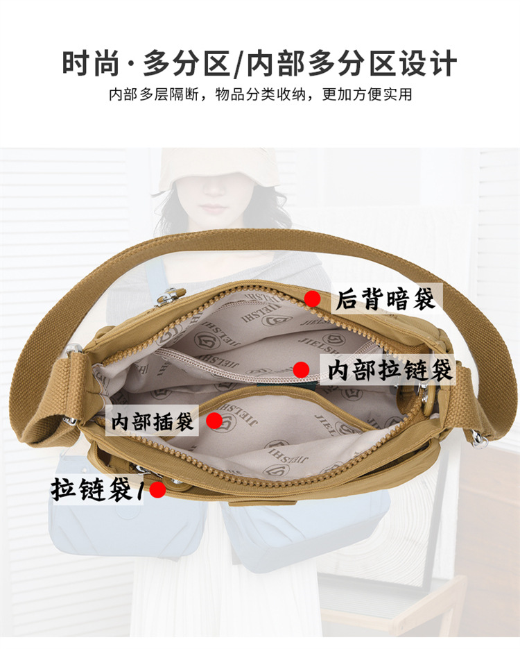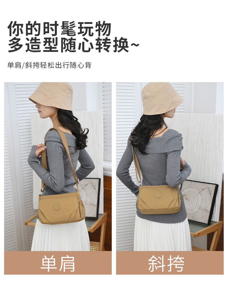 新款简约女士单肩包多隔层尼龙布包休闲出行斜挎包