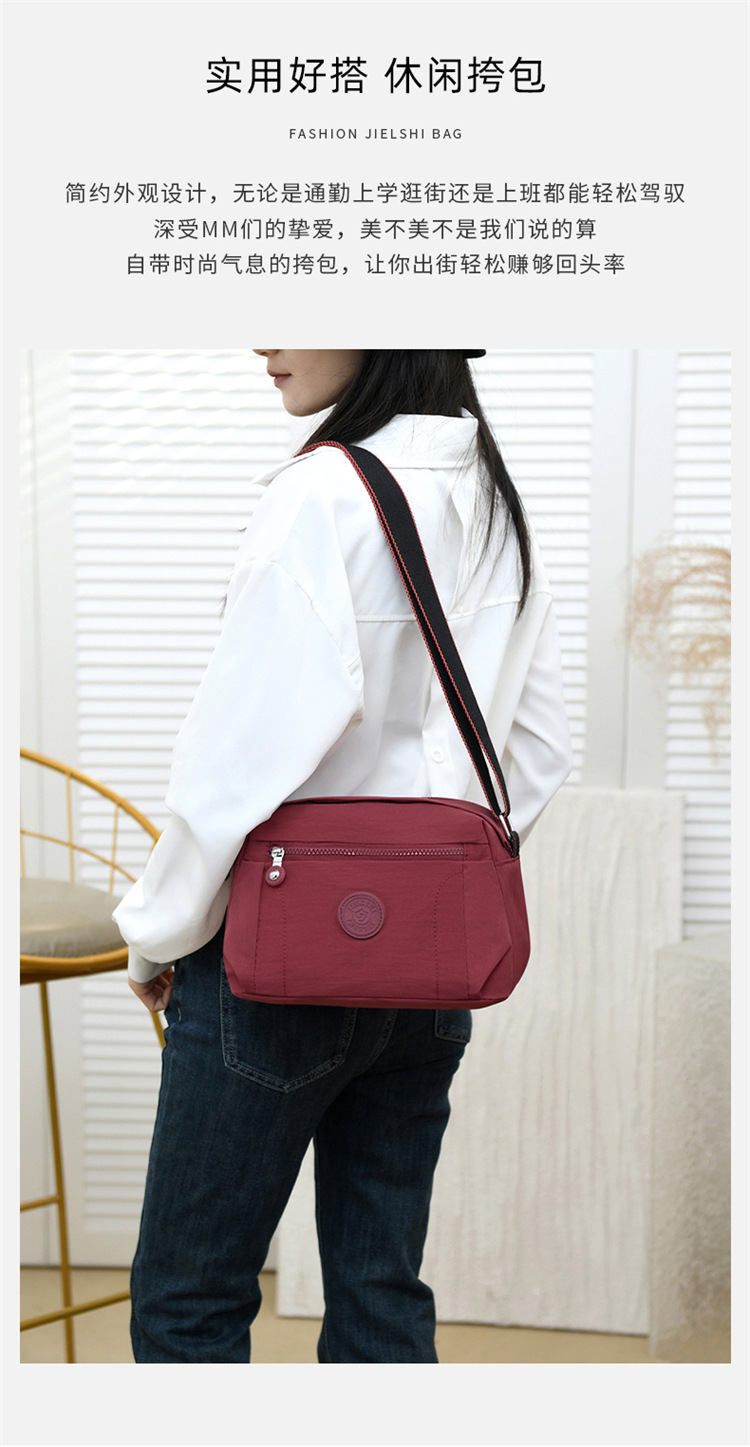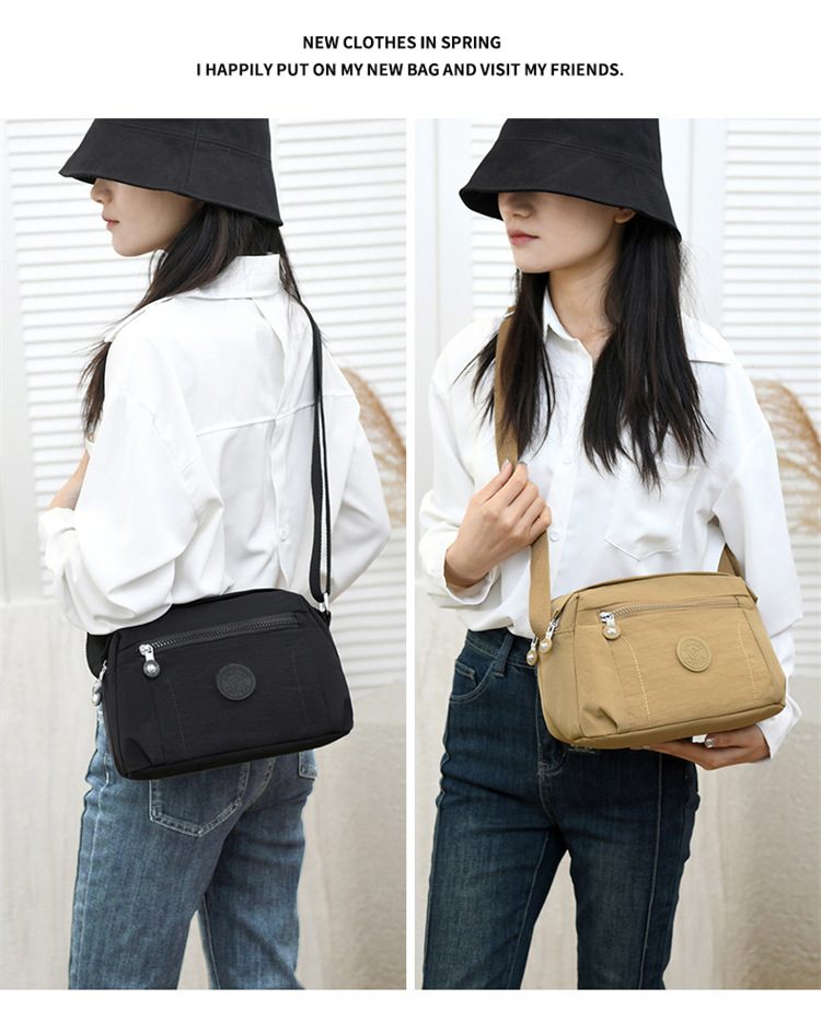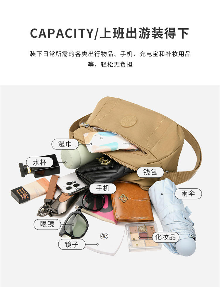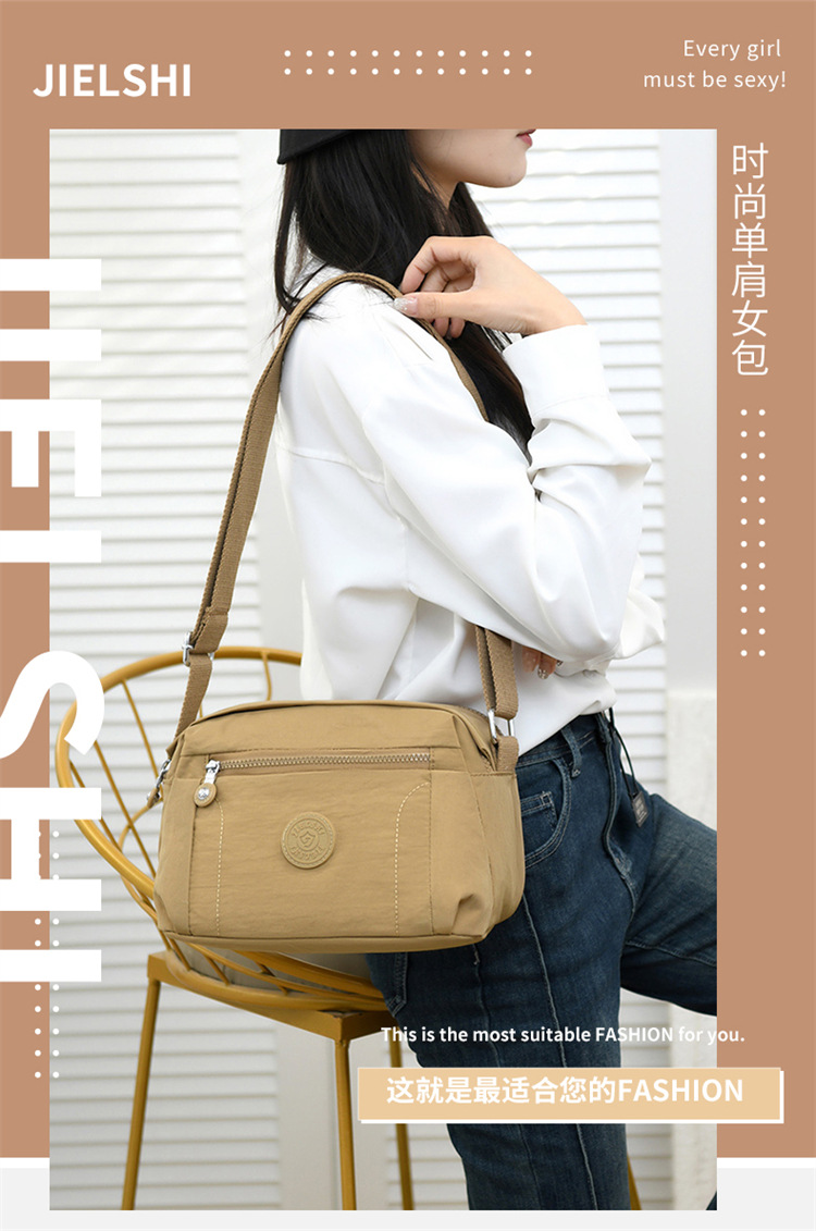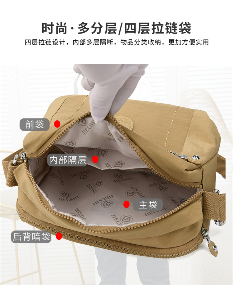 时尚多隔层单肩包2024新款女士斜挎包轻便尼龙布包