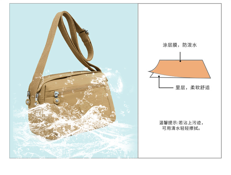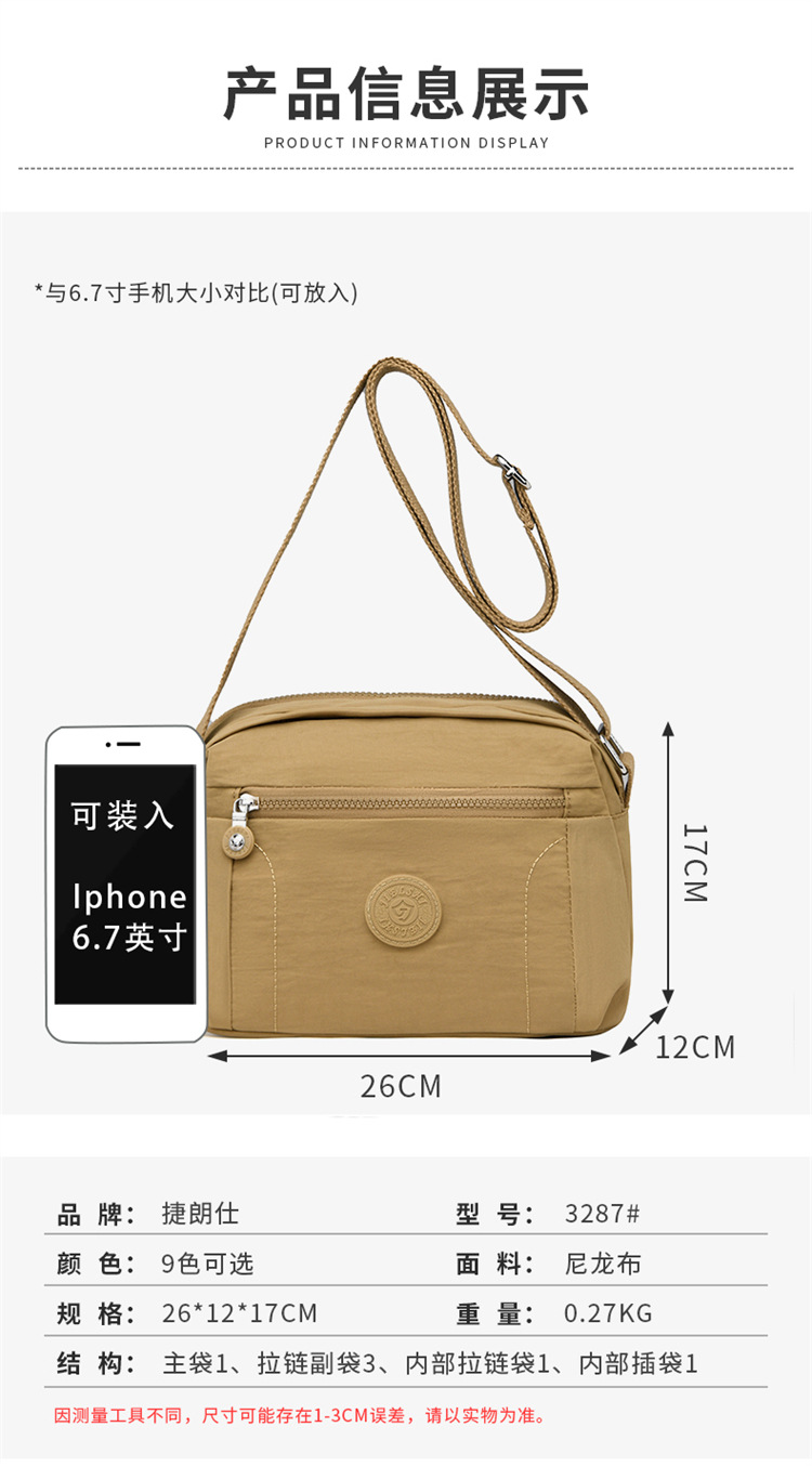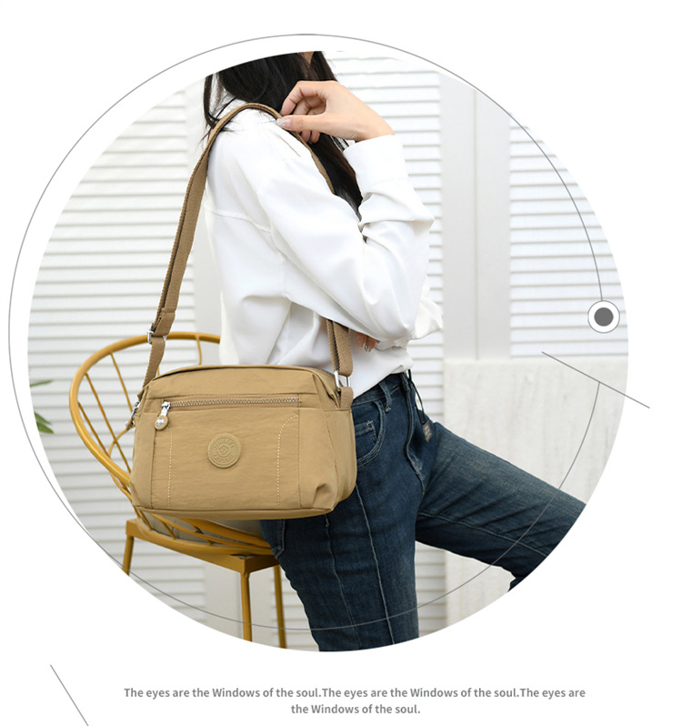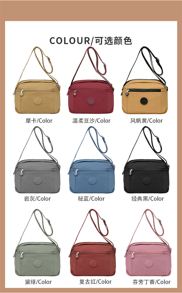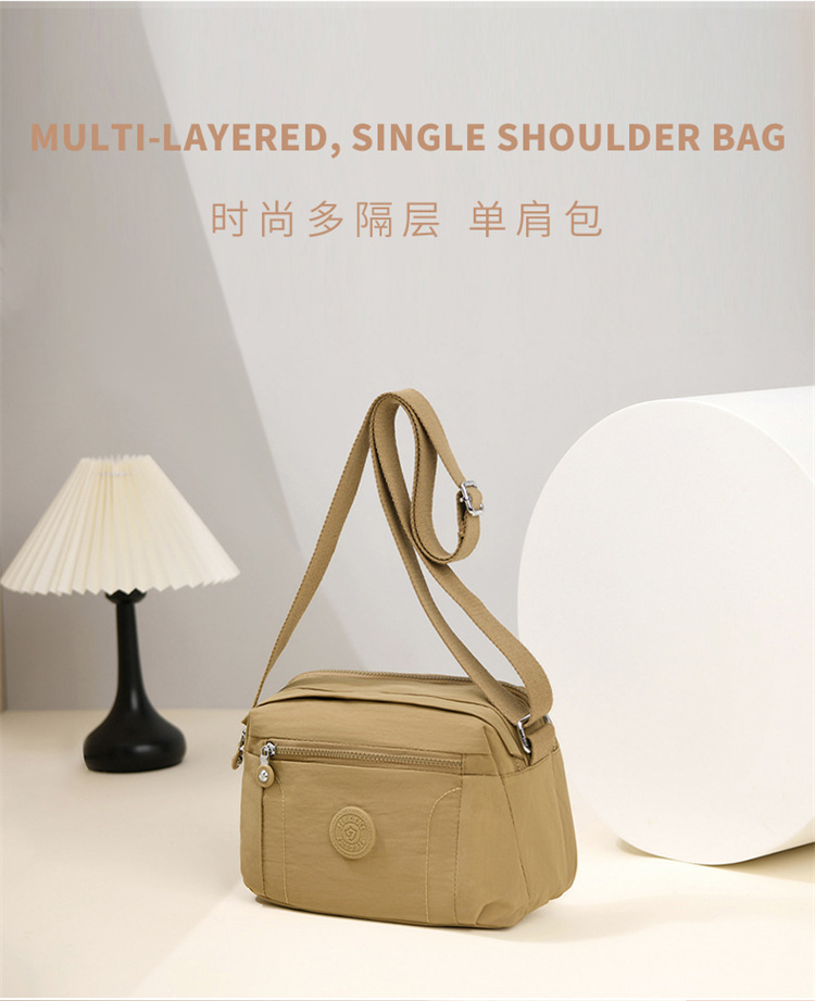 时尚多隔层单肩包2024新款女士斜挎包轻便尼龙布包