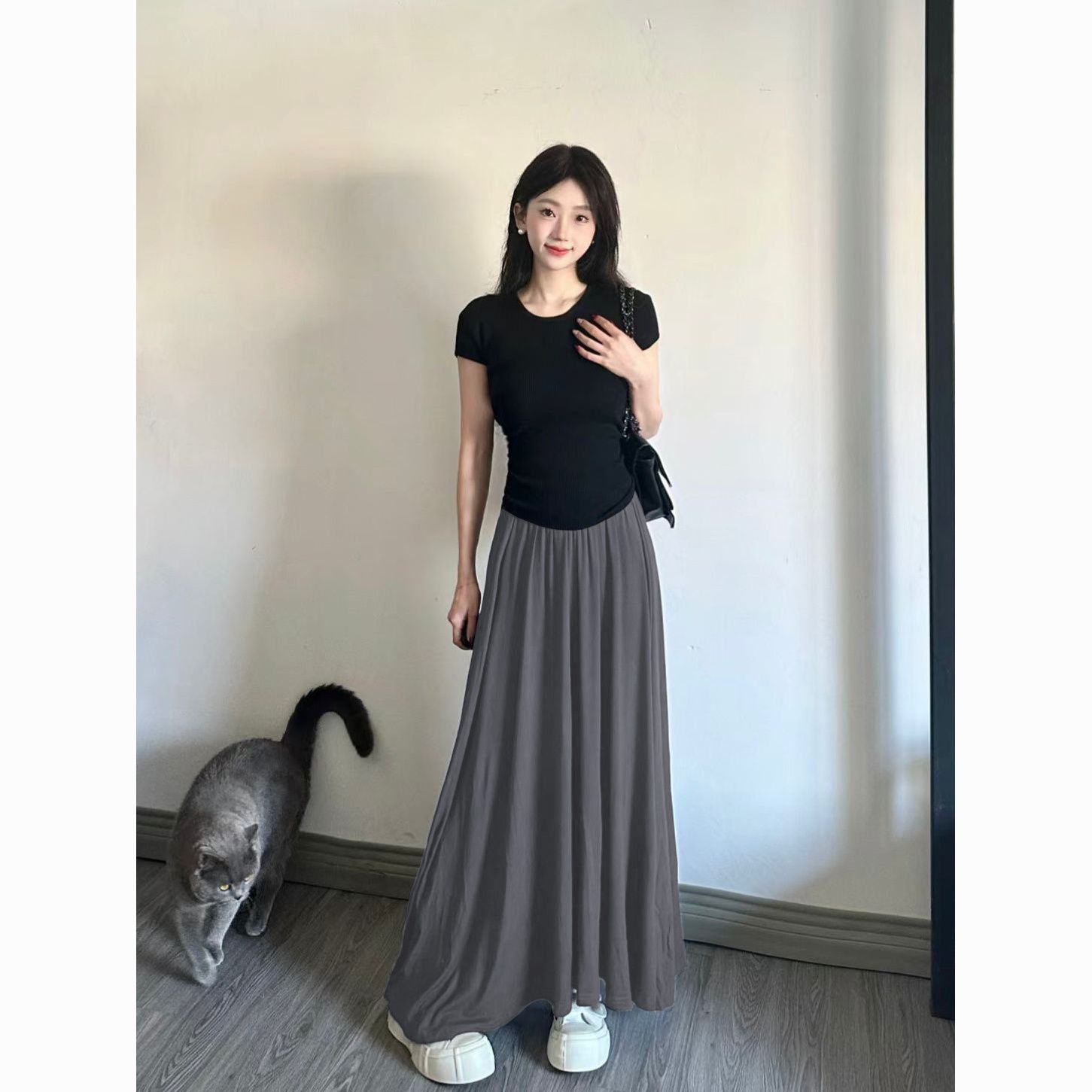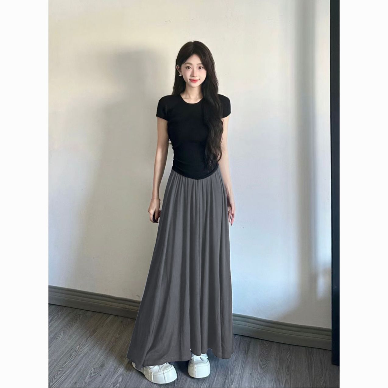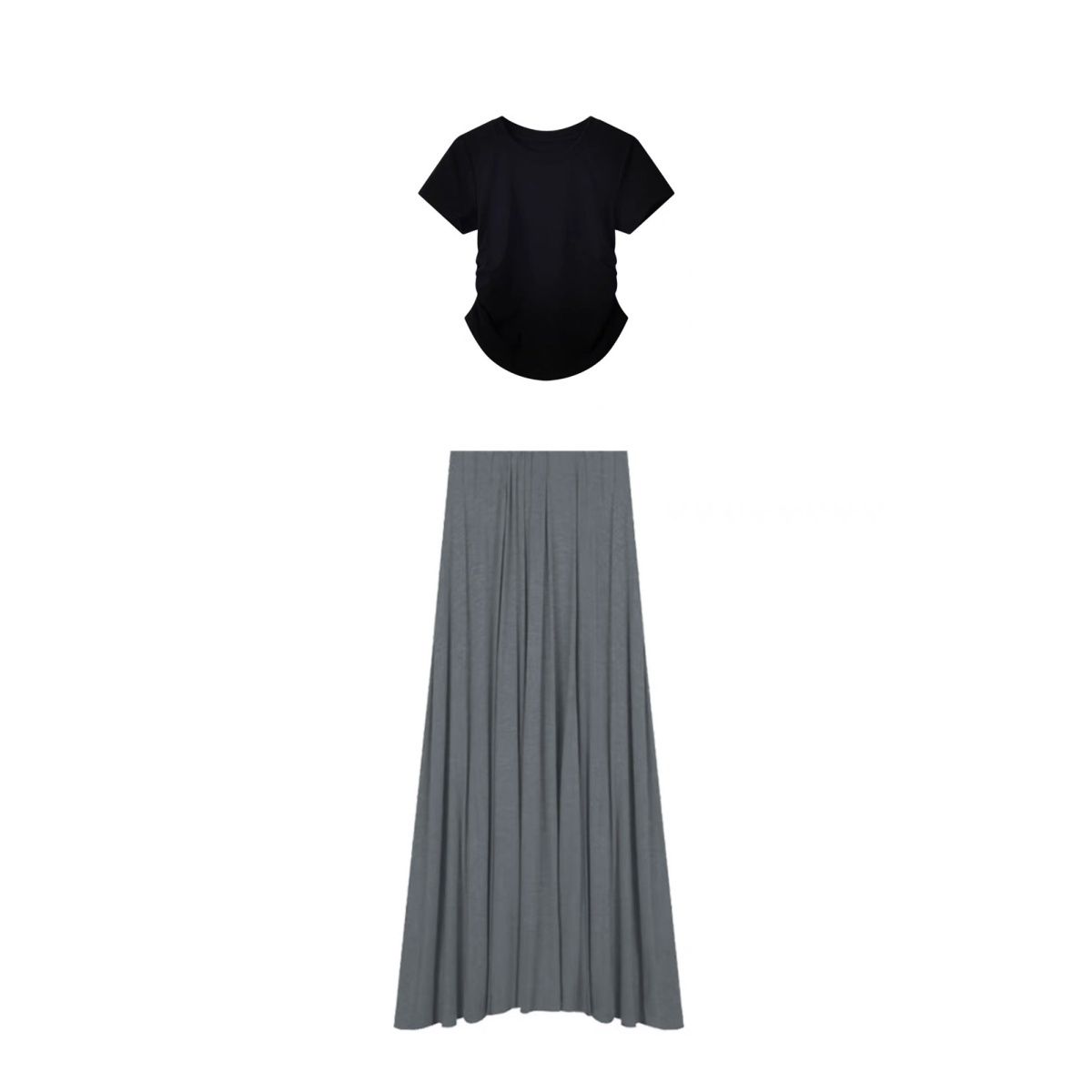 法式短袖针织T恤上衣+半身裙女夏季慵懒风a字大摆裙一整套装长裙