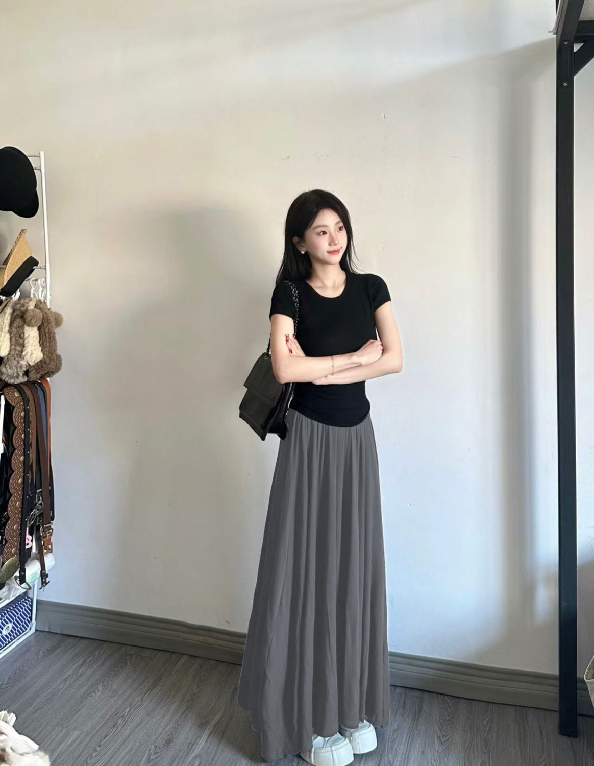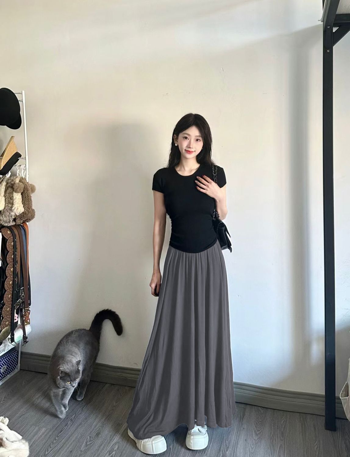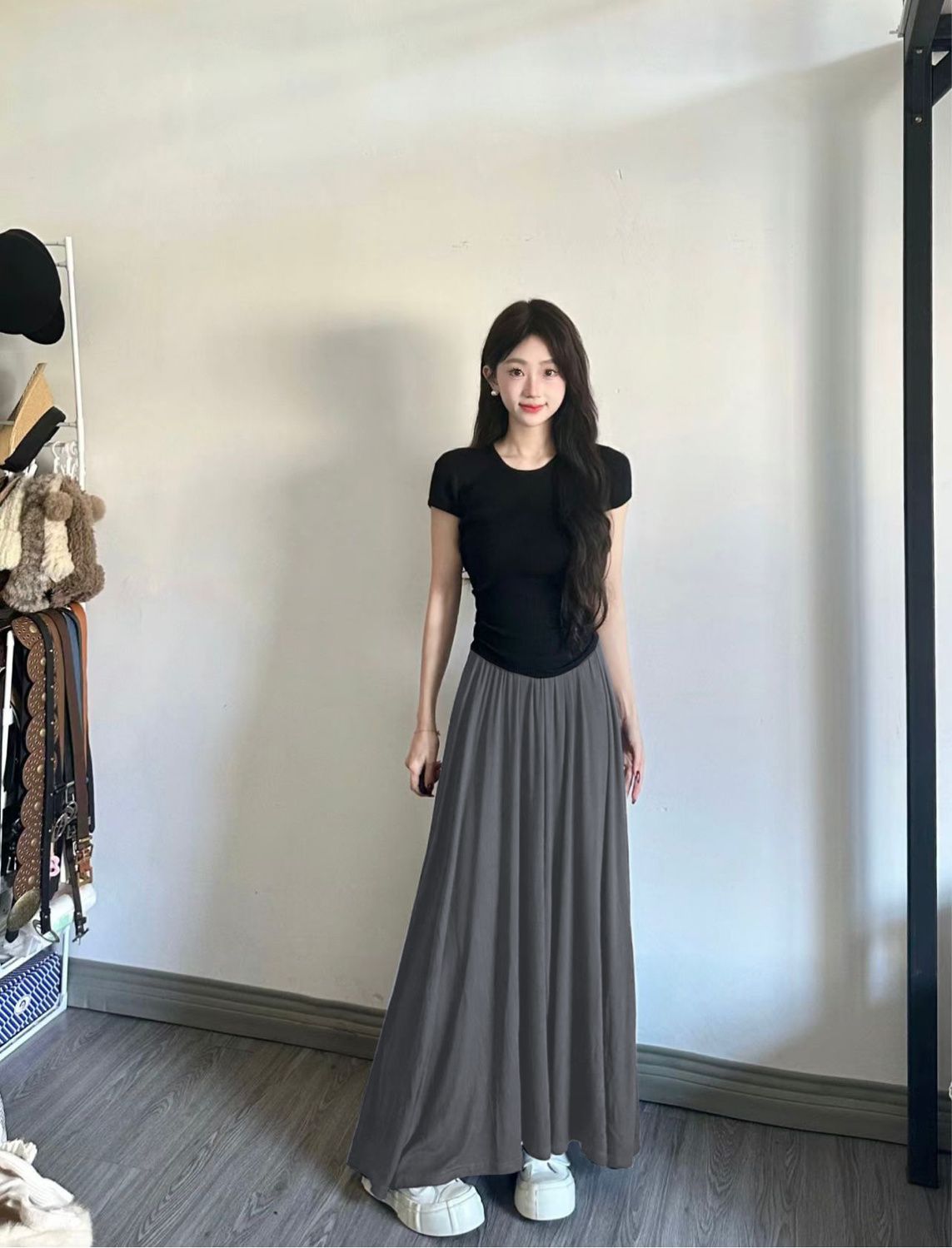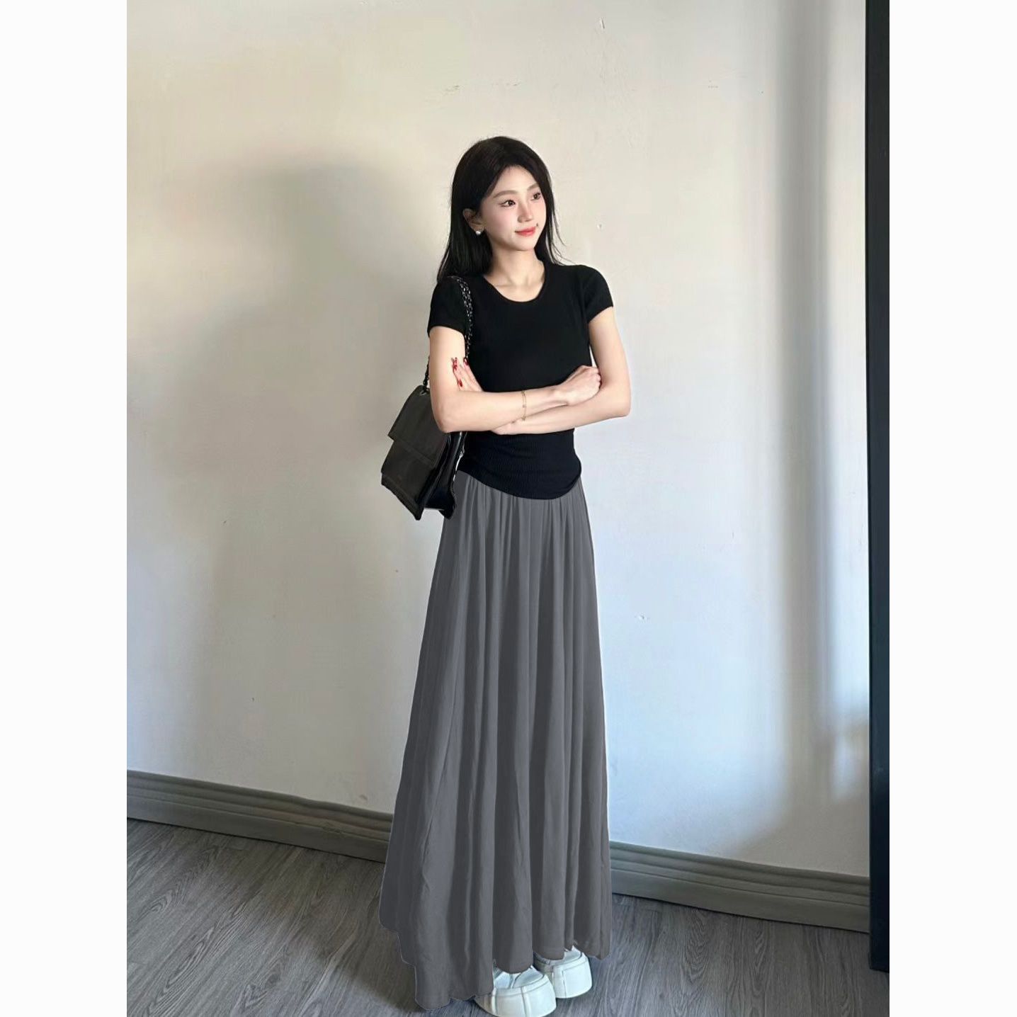 法式短袖针织T恤上衣+半身裙女夏季慵懒风a字大摆裙一整套装长裙