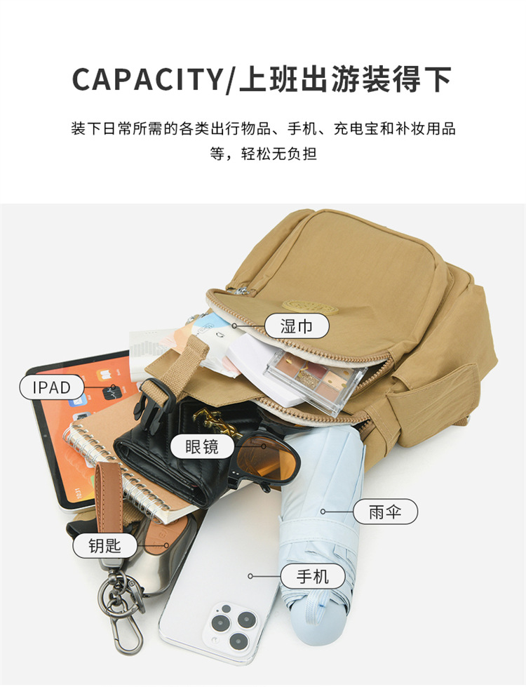 女士双肩包通勤单肩包休闲出行胸包轻便防水尼龙布包