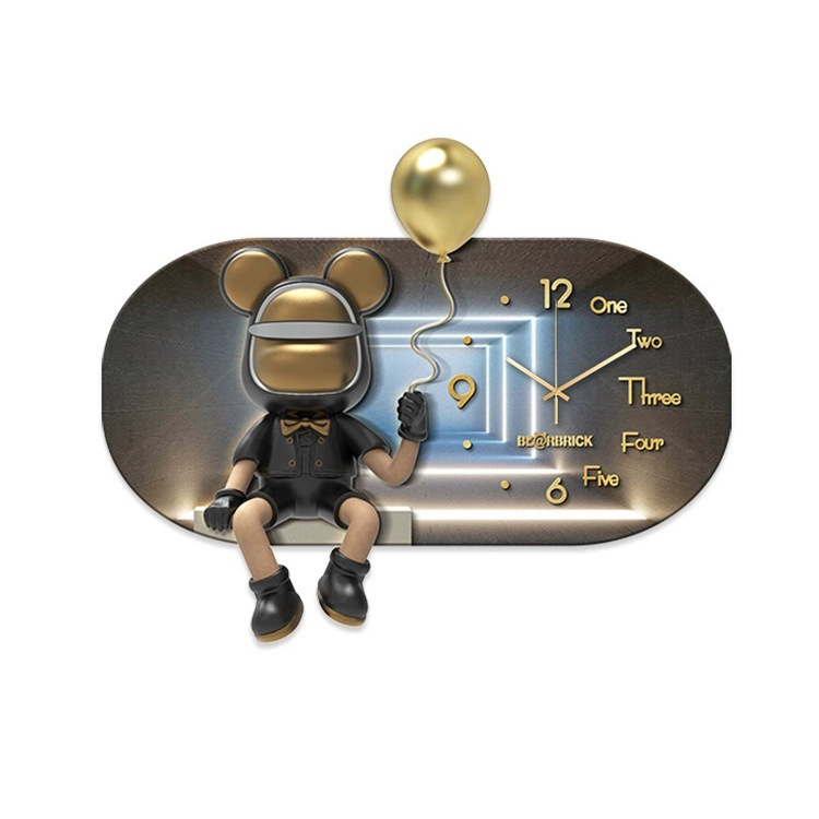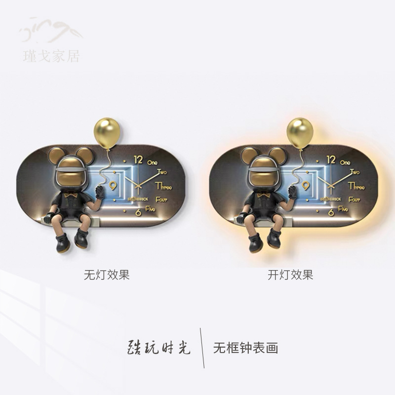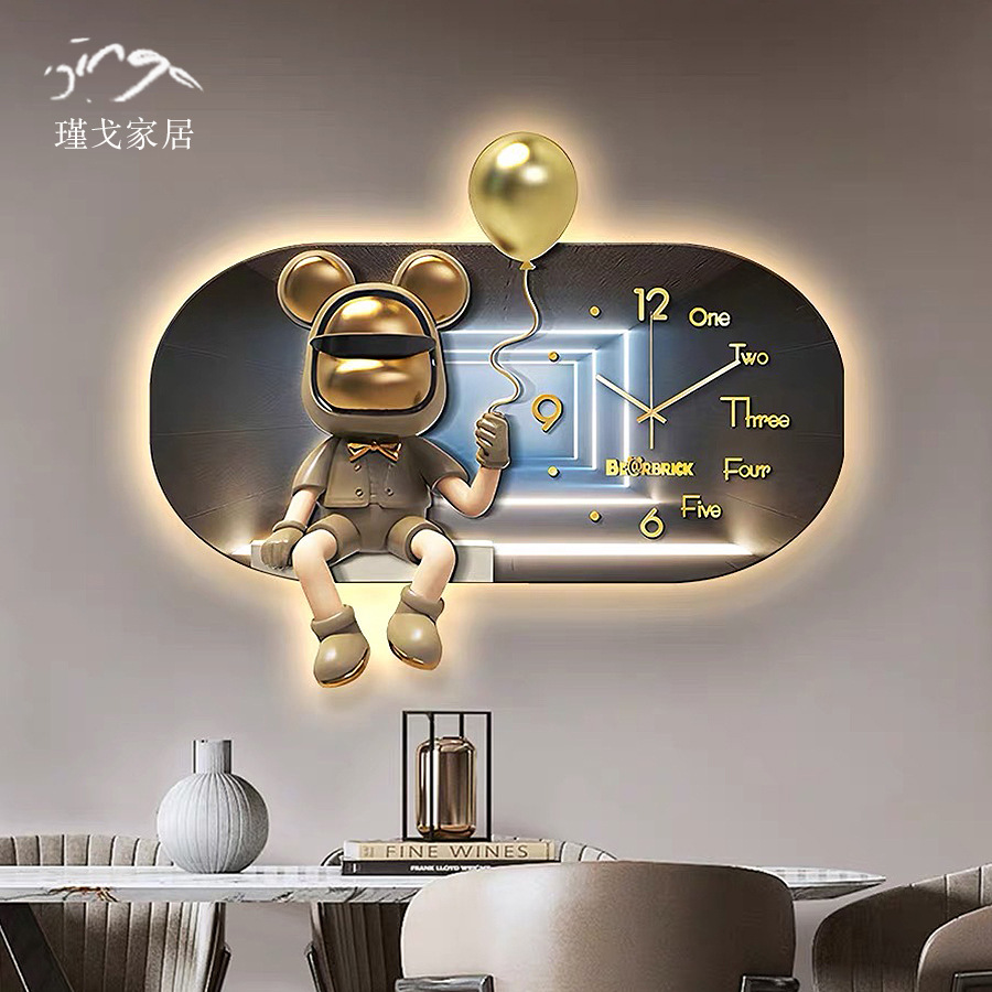 暴力熊餐厅装饰画带时钟挂画轻奢高档客厅创意灯画饭厅钟表壁画
