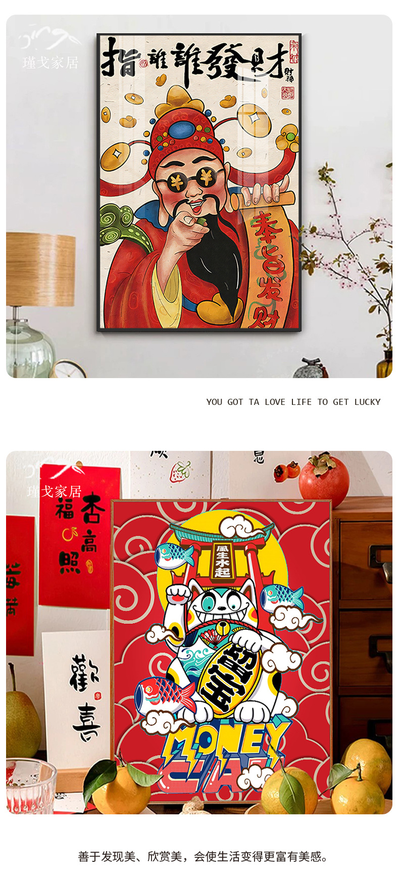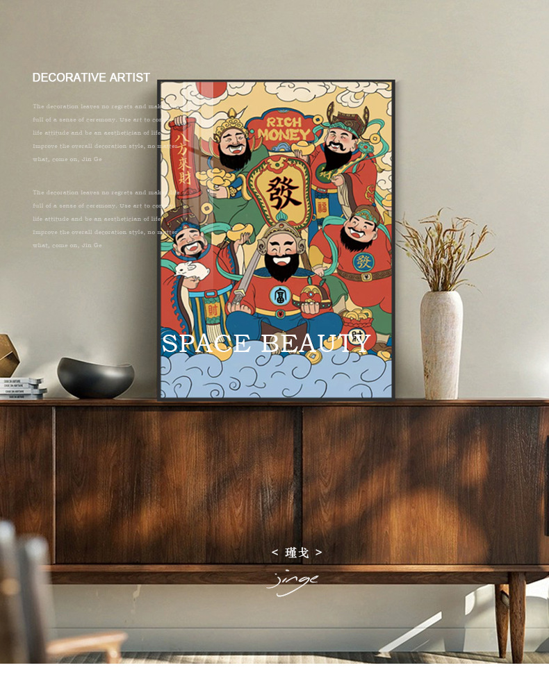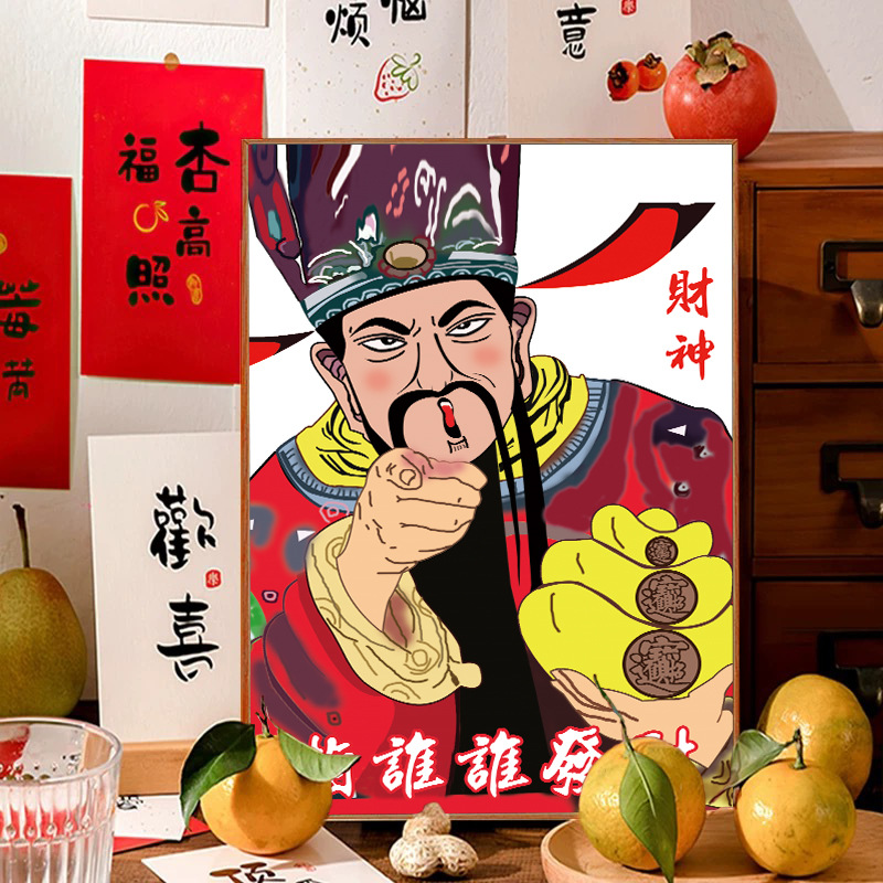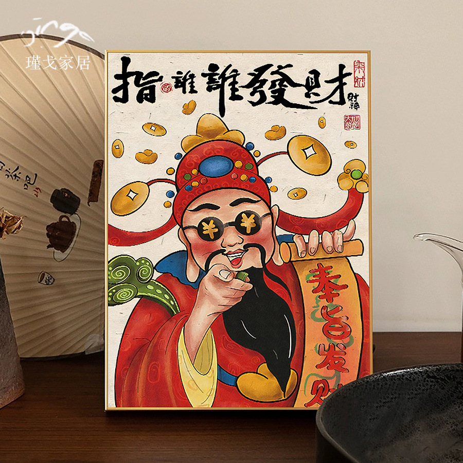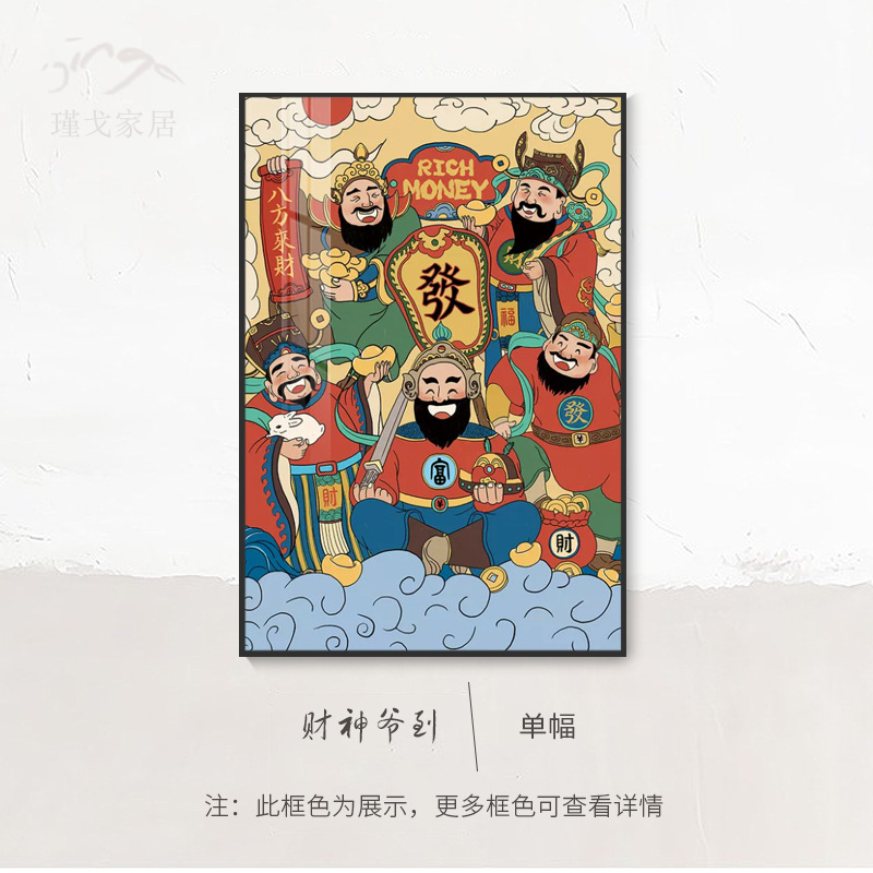 五路财神爷喜庆好寓意装饰画新年国潮桌面摆画客厅墙面挂画开业礼