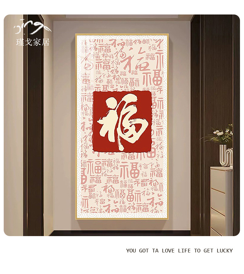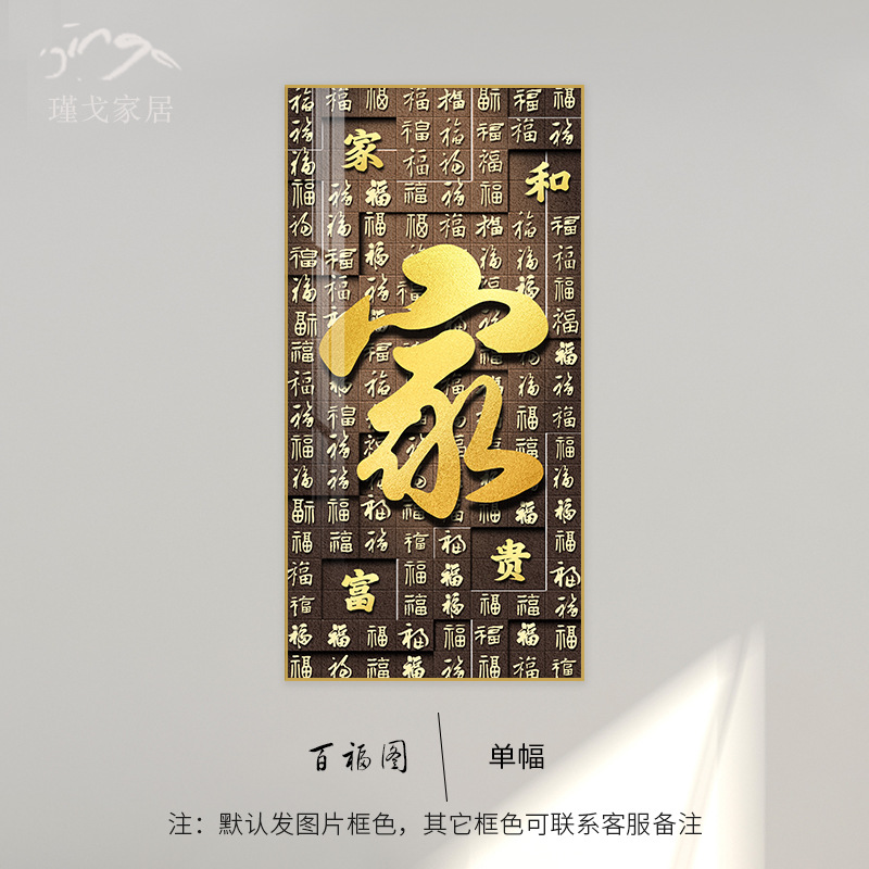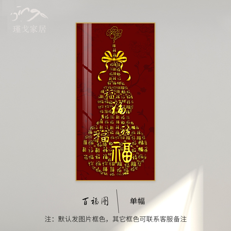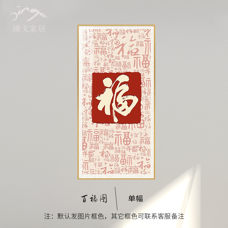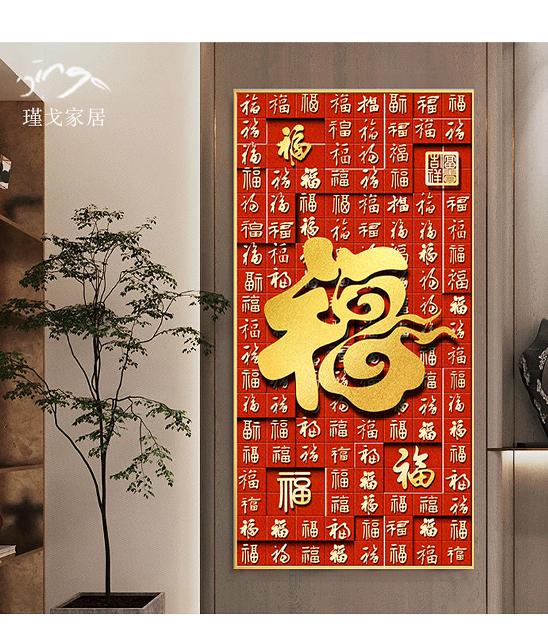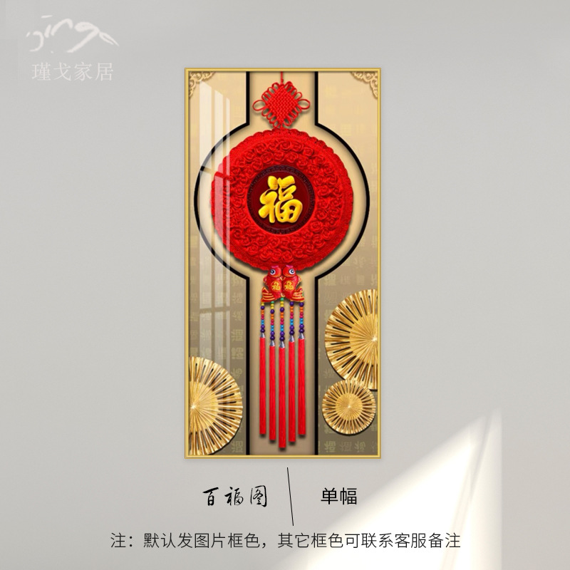 百福图玄关装饰画新中式走廊过道挂画高档入户正对门竖版福字壁画