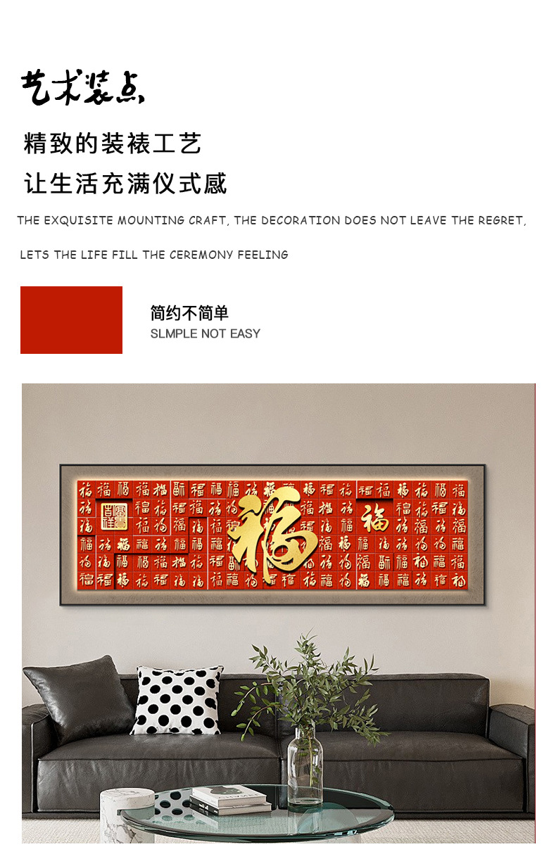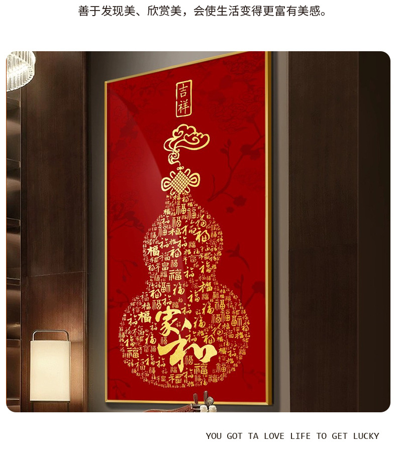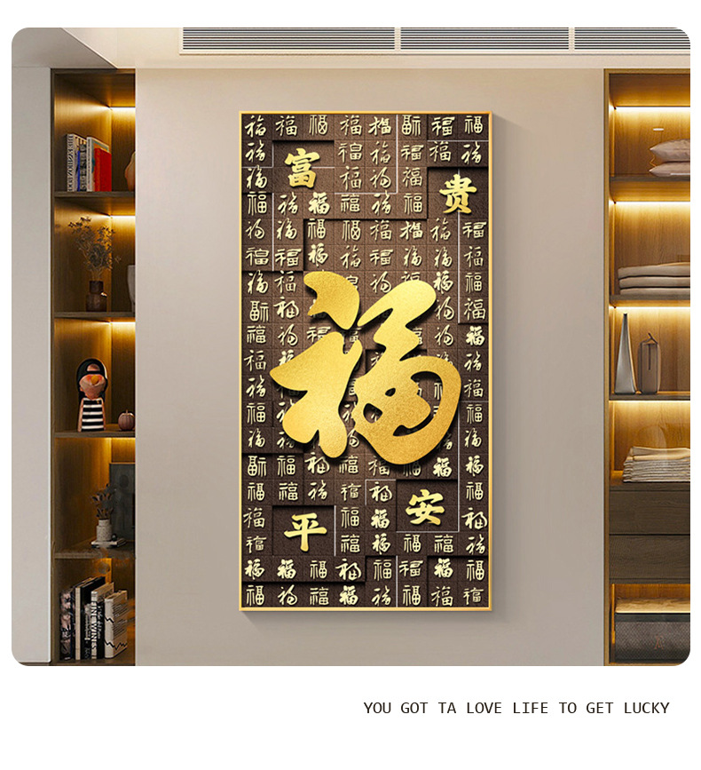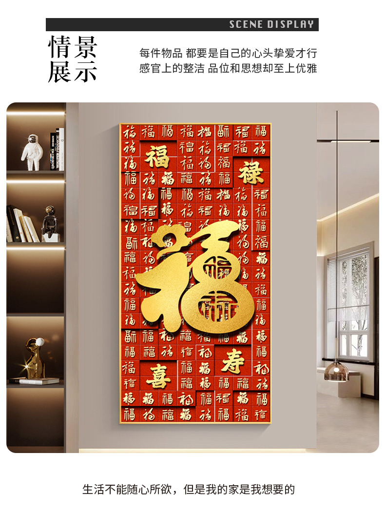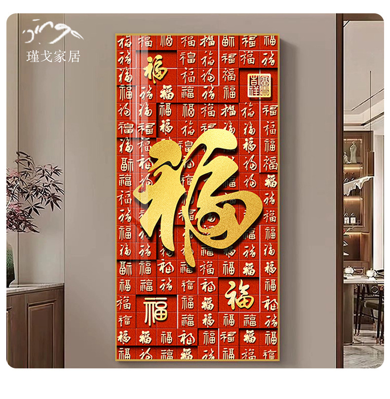 百福图玄关装饰画新中式走廊过道挂画高档入户正对门竖版福字壁画