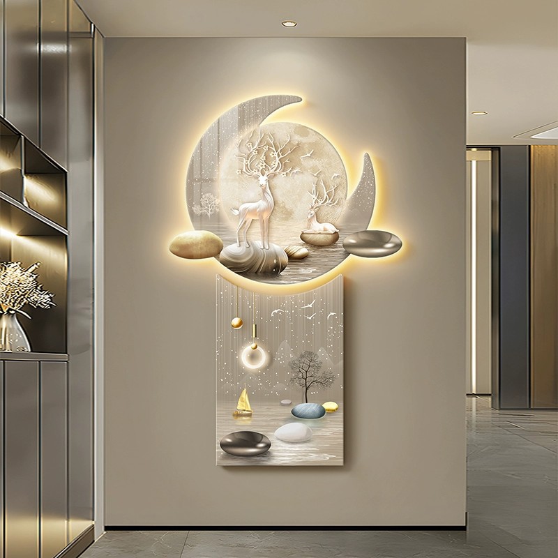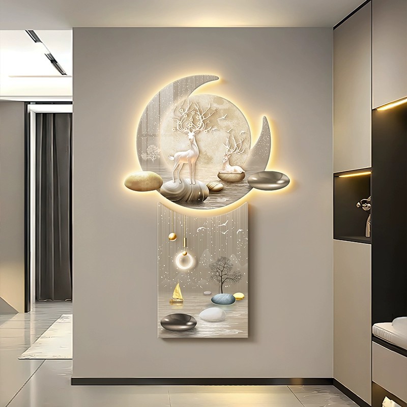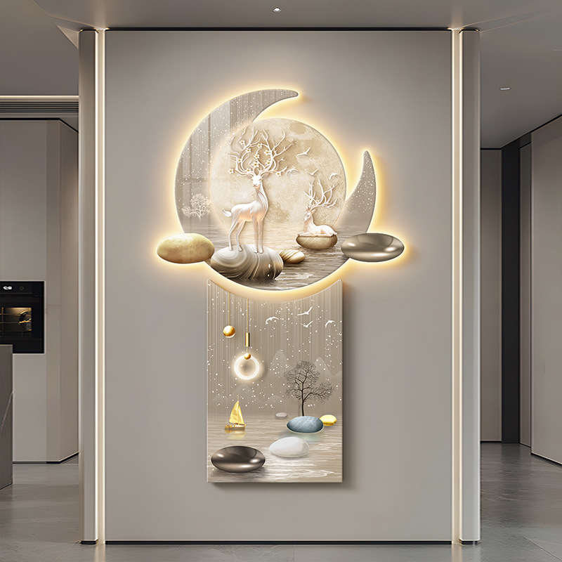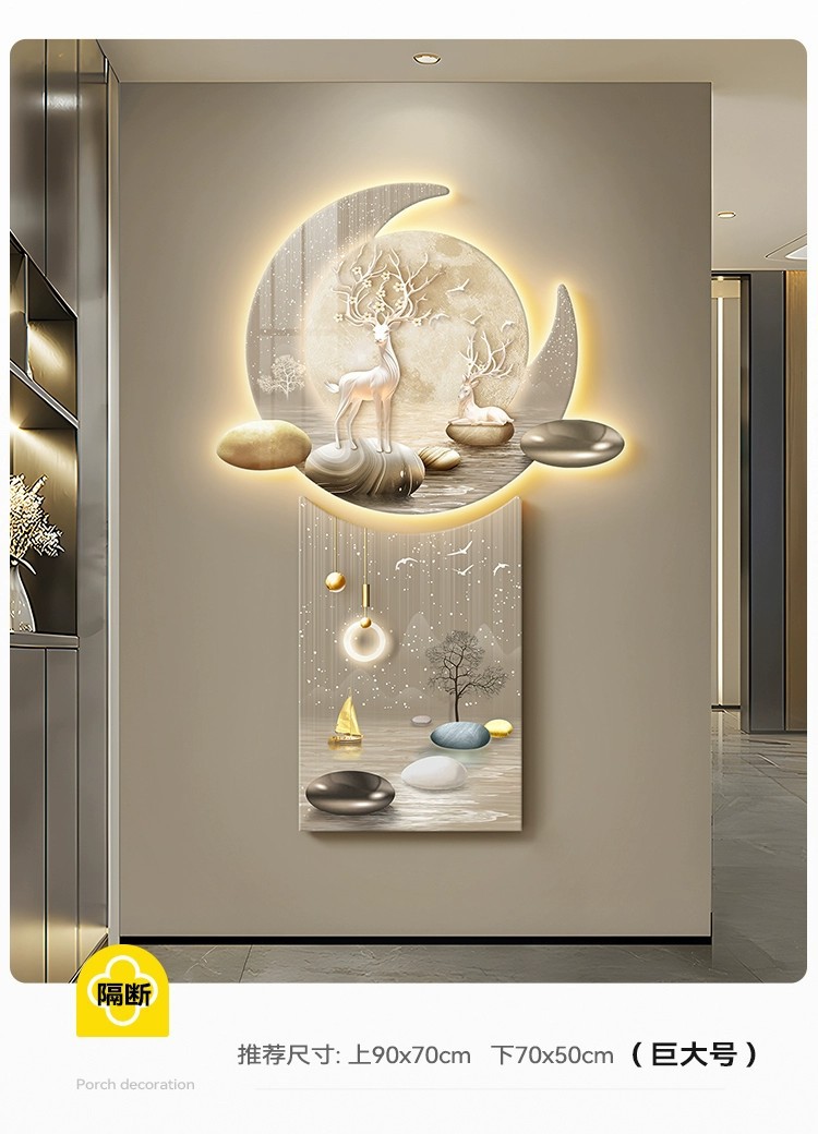 福鹿生财入户门玄关装饰画轻奢高级感正对墙走廊过道挂画背景壁画
