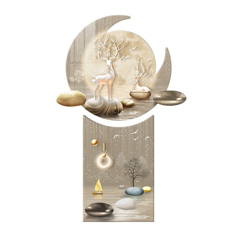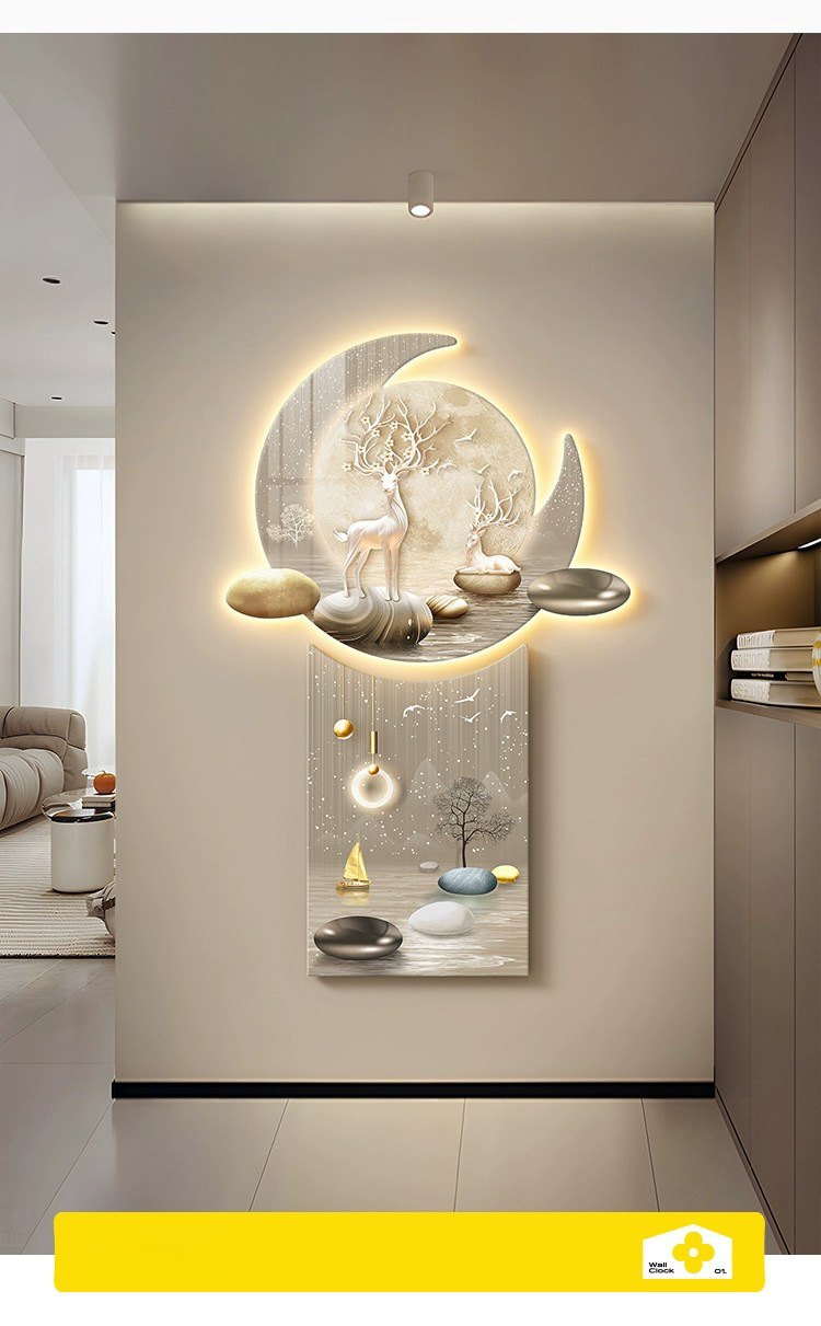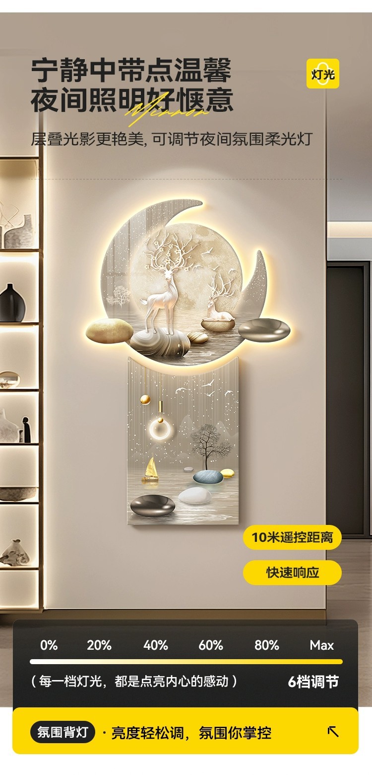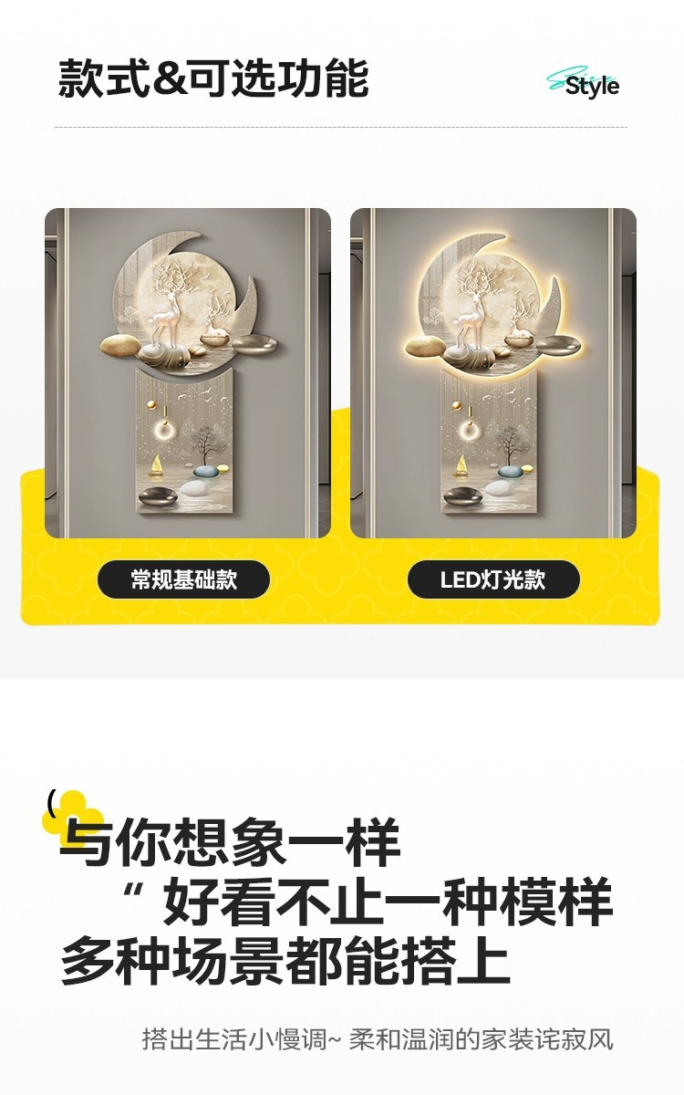 福鹿生财入户门玄关装饰画轻奢高级感正对墙走廊过道挂画背景壁画