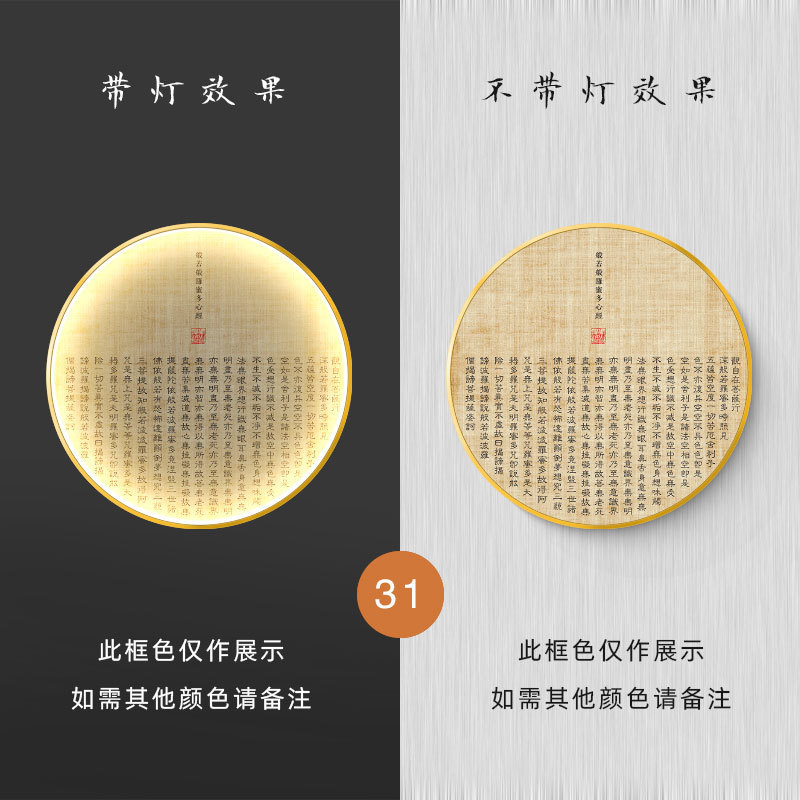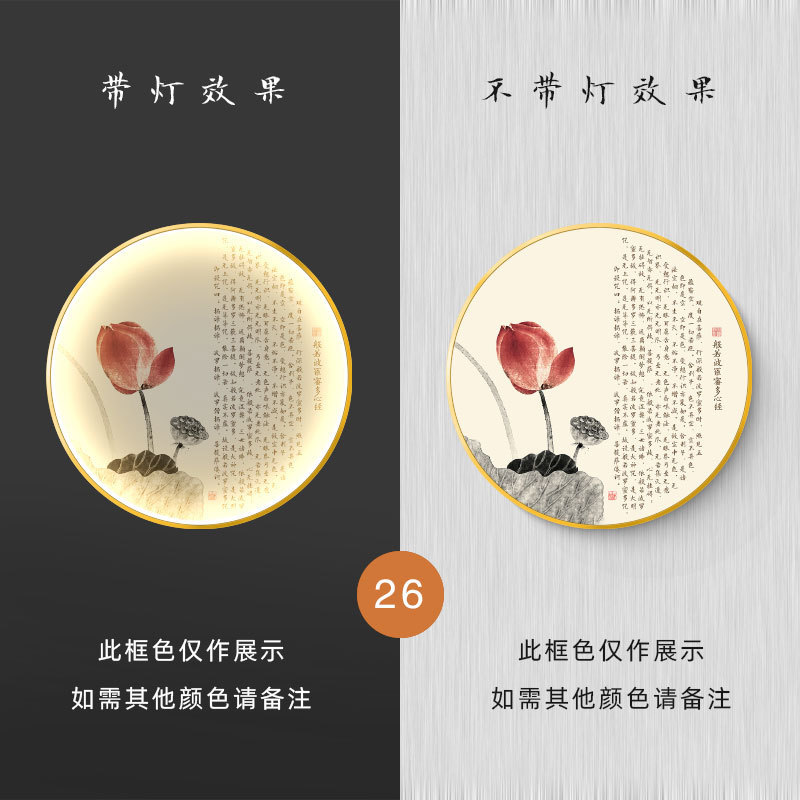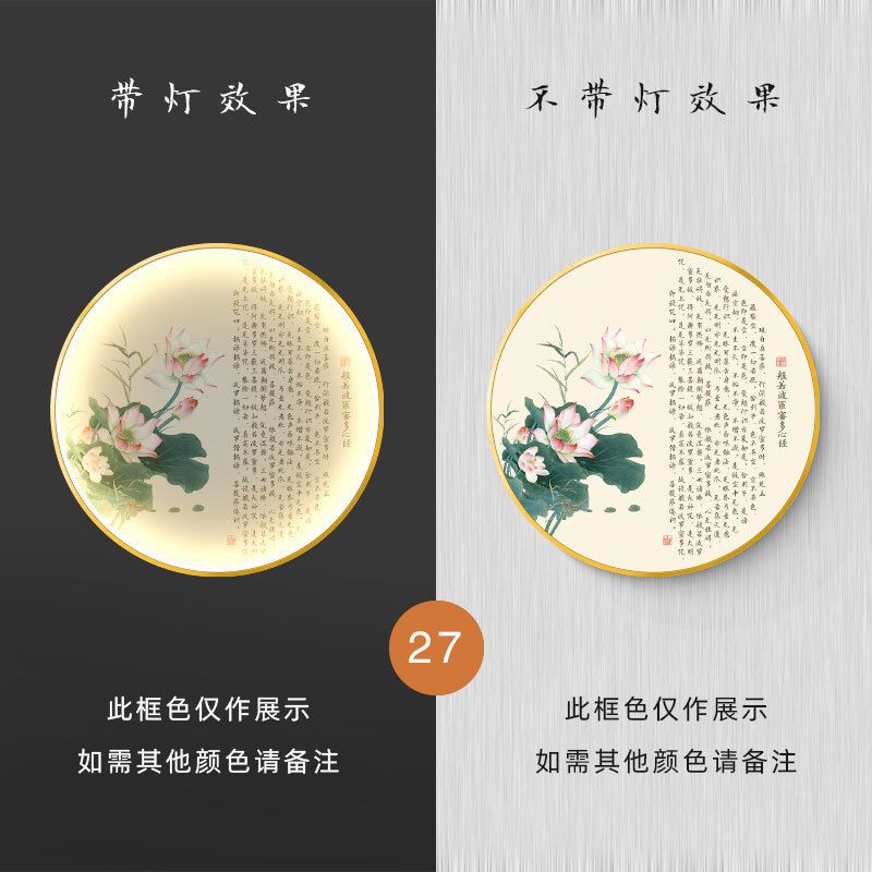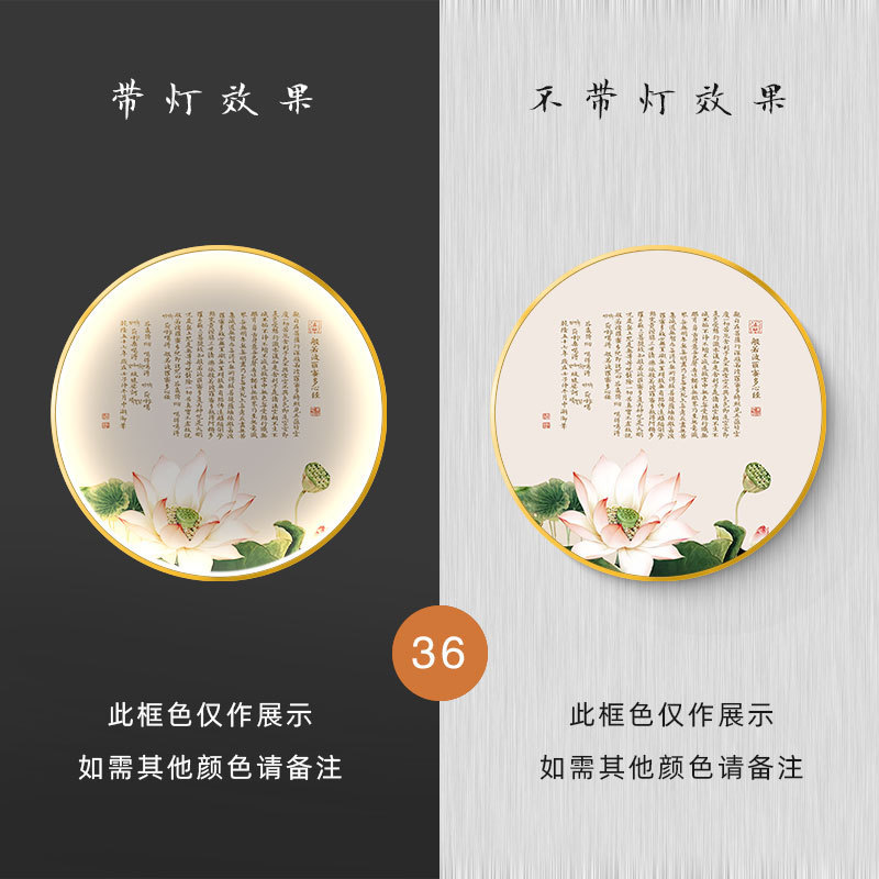 禅意心经圆形LED灯玄关装饰画新中式茶室佛系莲花荷花发光挂画