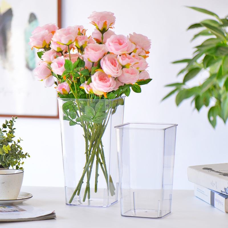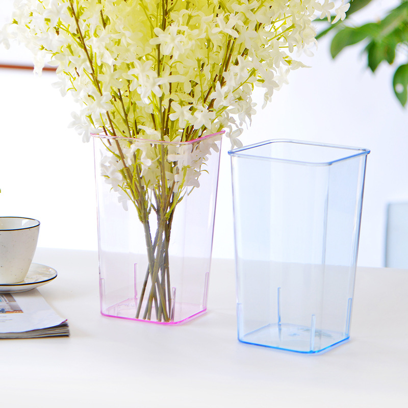 透明亚克力醒花桶花店养花桶花筒方形鲜花桶批发塑料家用厂家直销