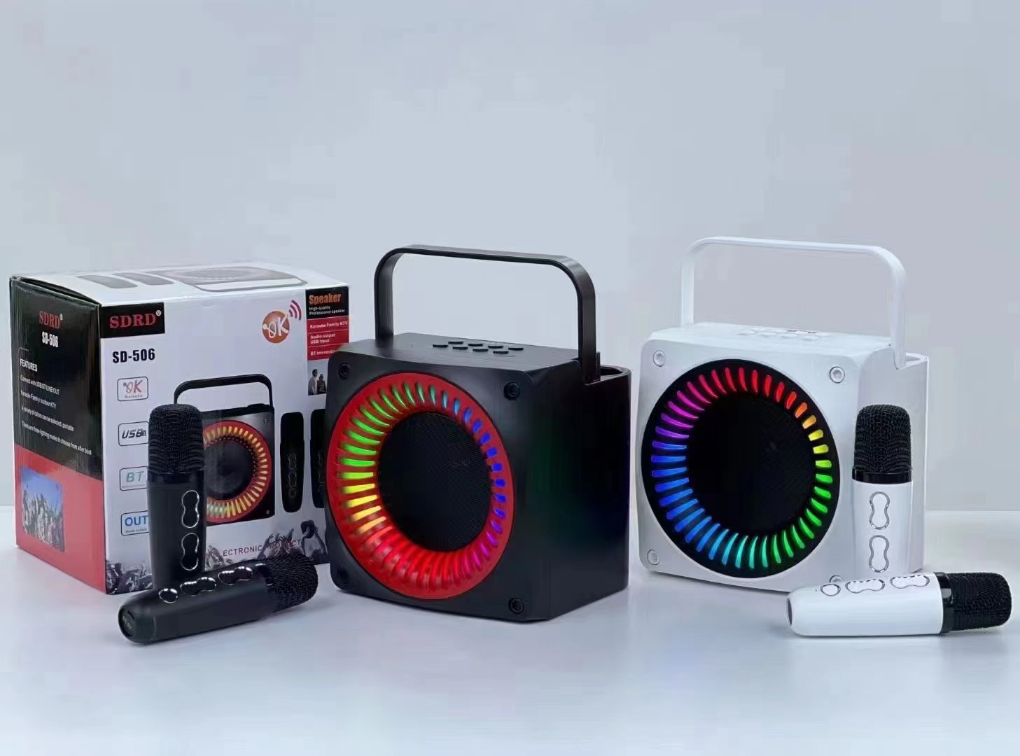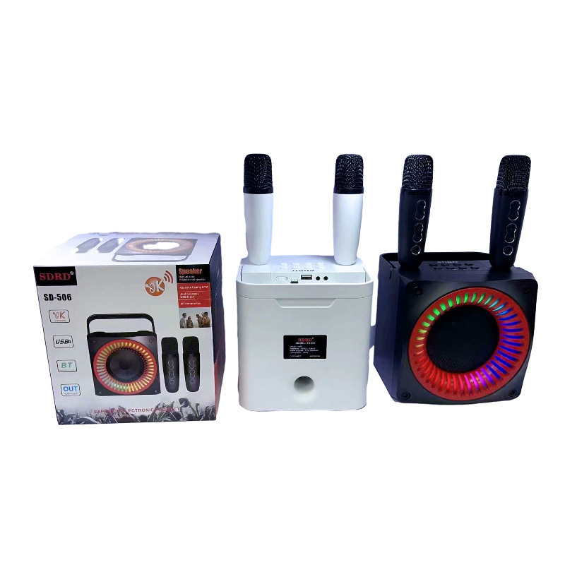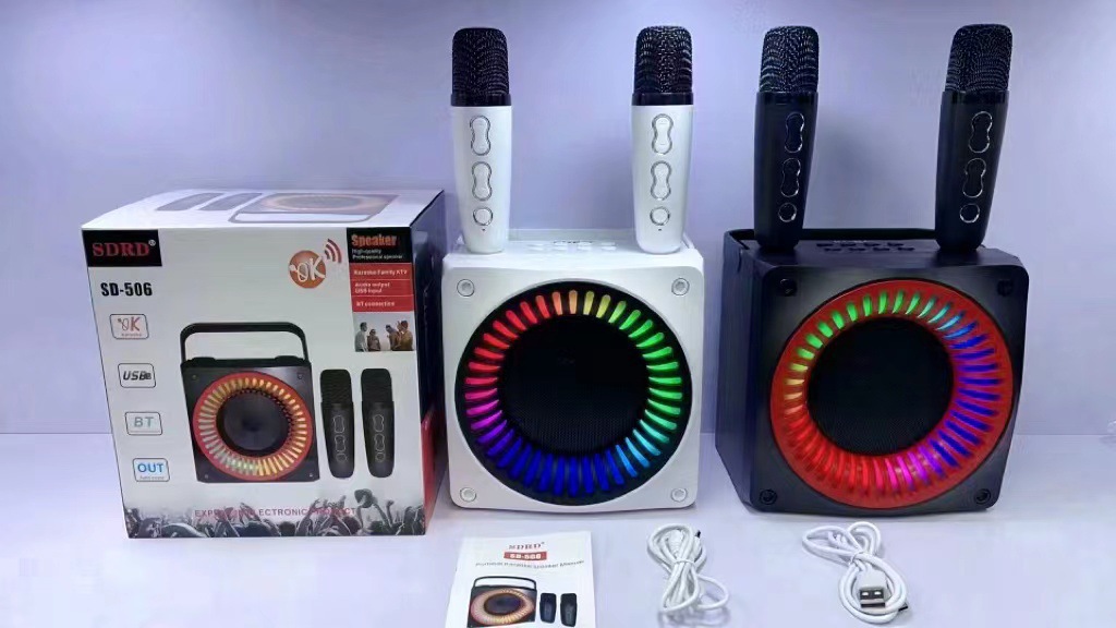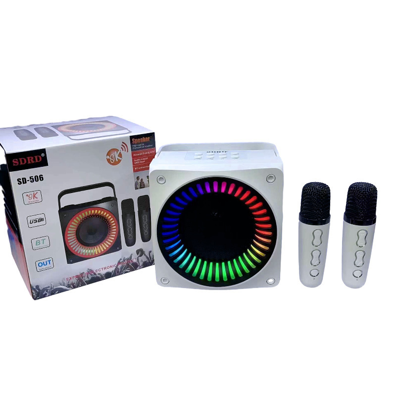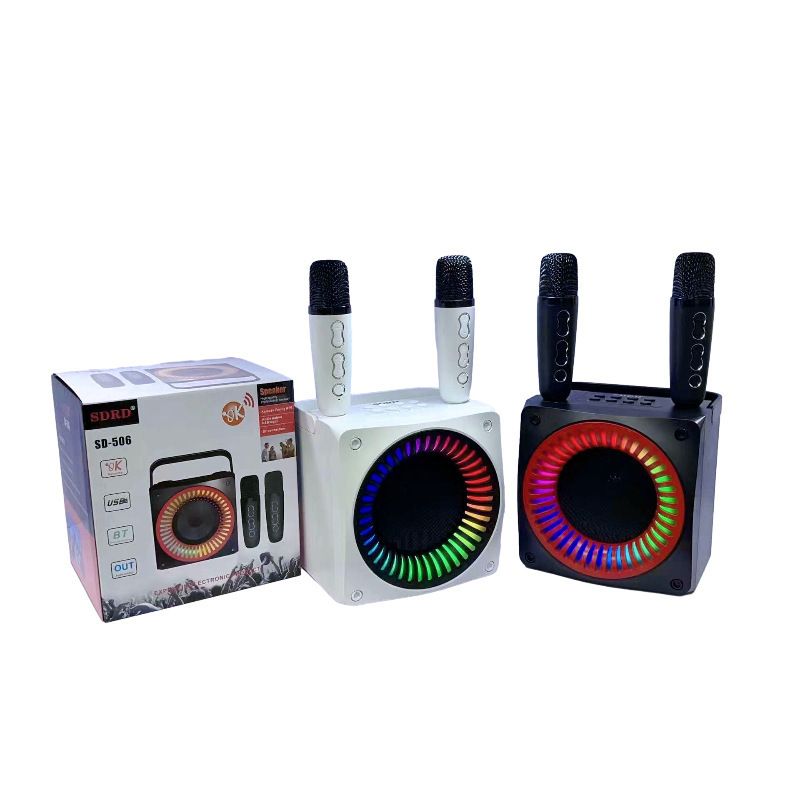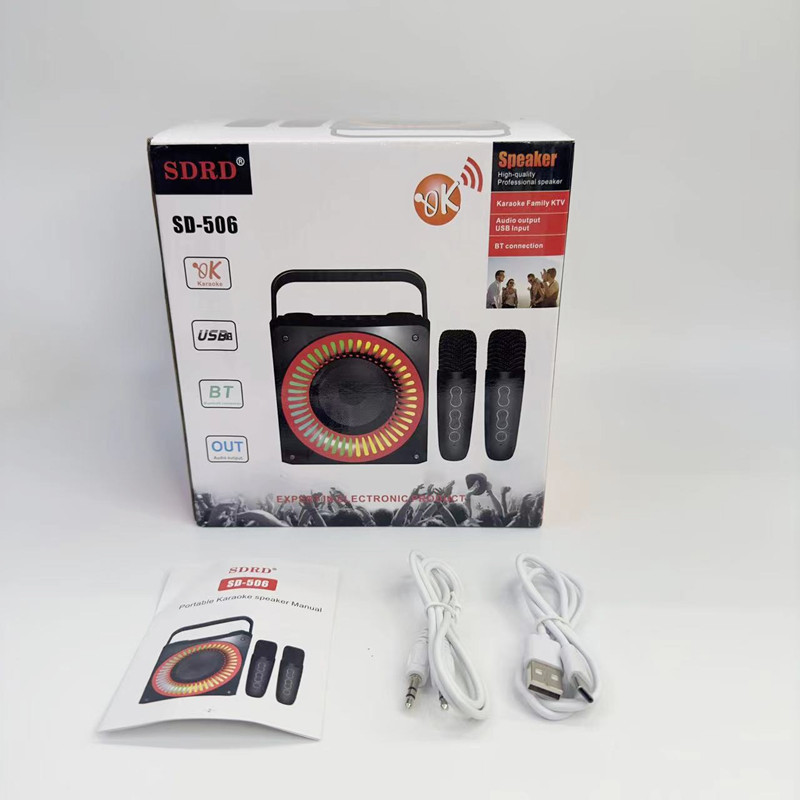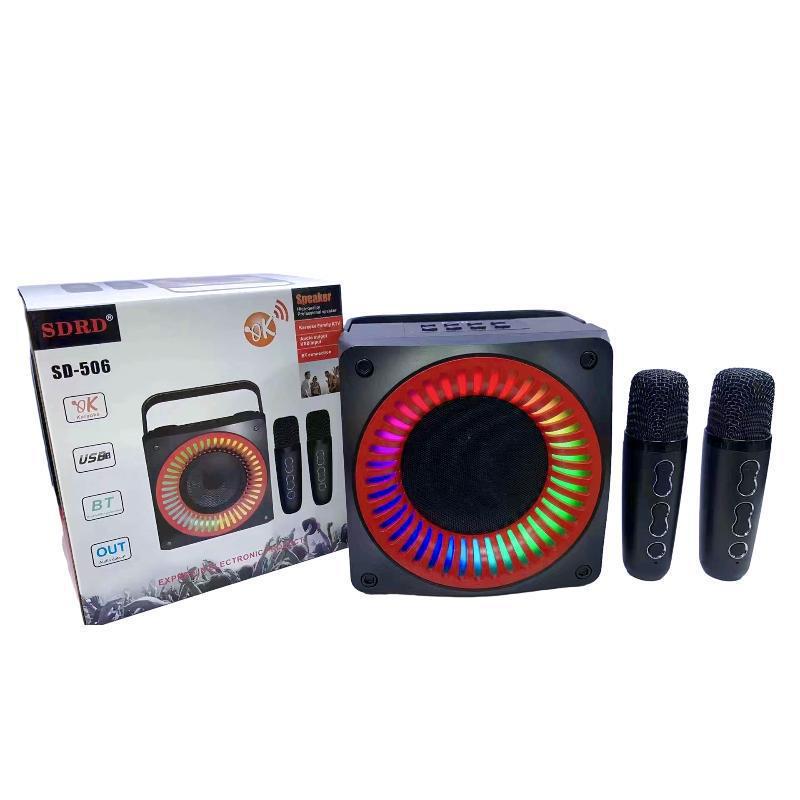 SD506便携式K歌蓝牙音箱双话筒LED灯卡拉ok蓝牙麦克风低音炮音响
