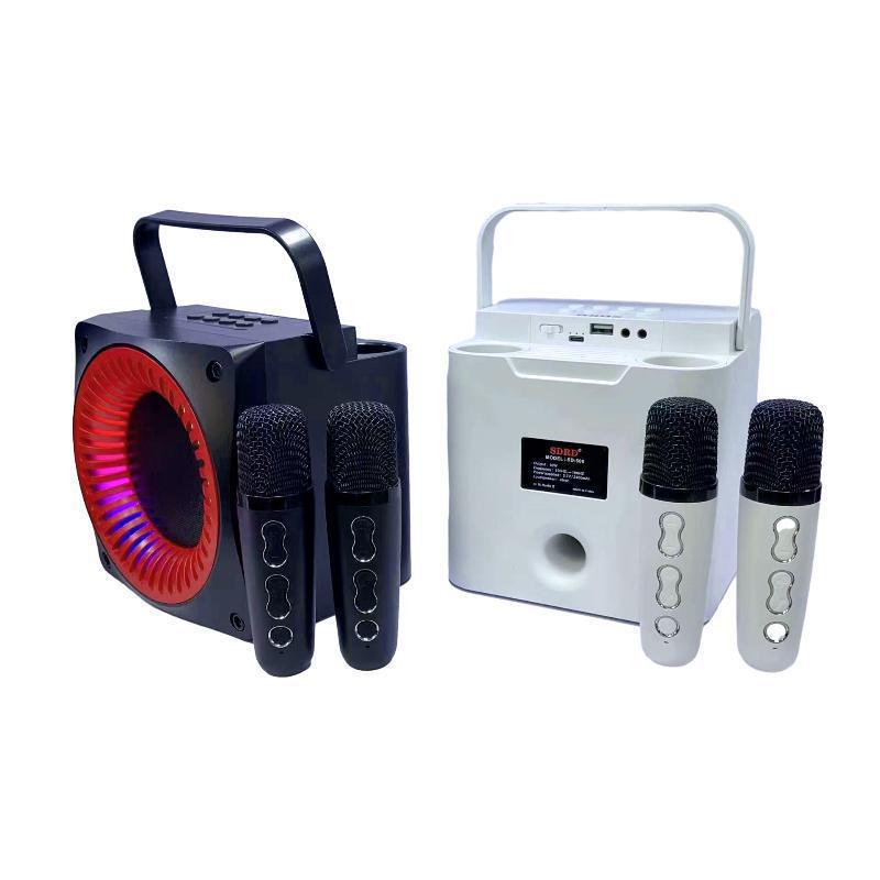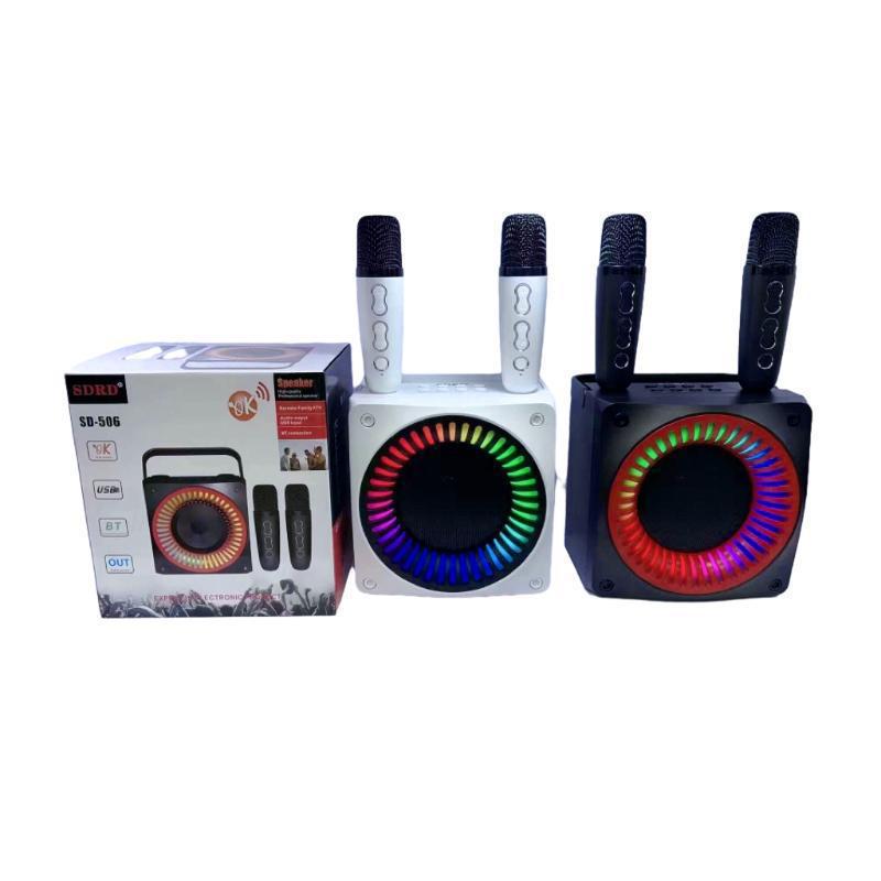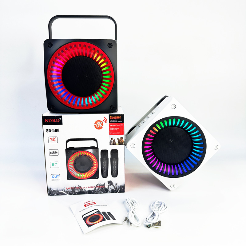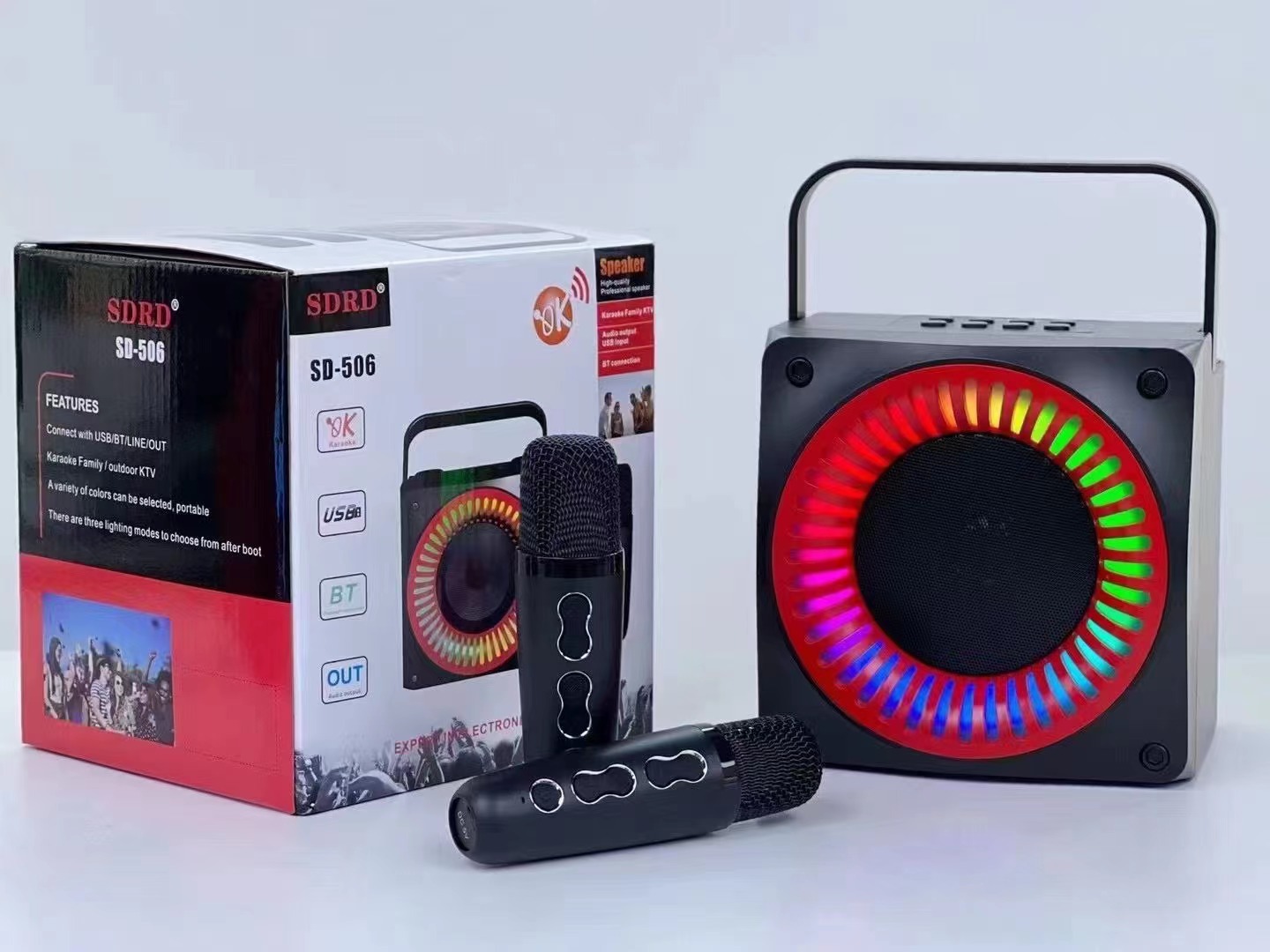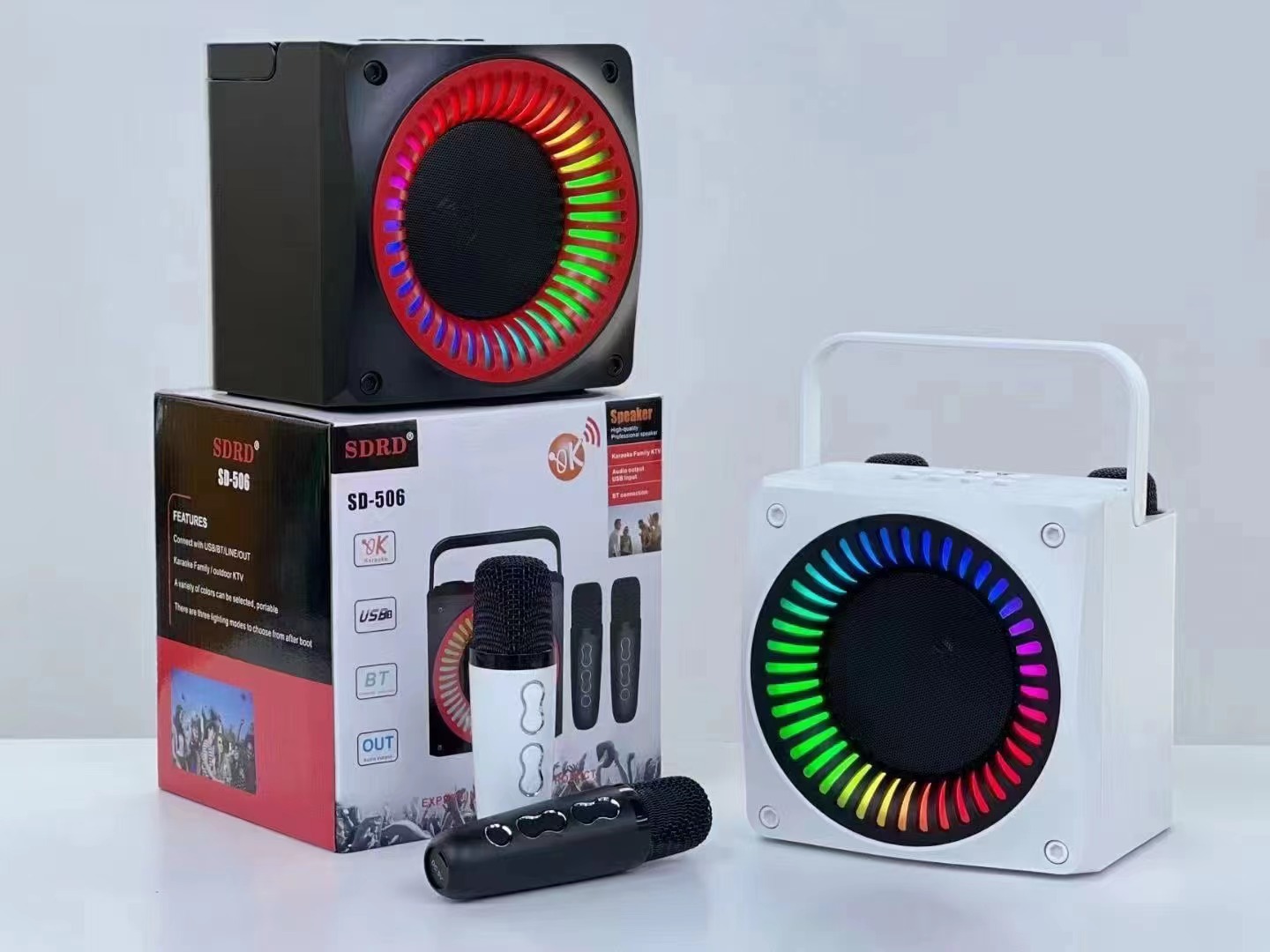 SD506便携式K歌蓝牙音箱双话筒LED灯卡拉ok蓝牙麦克风低音炮音响