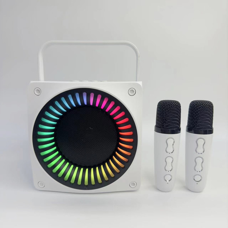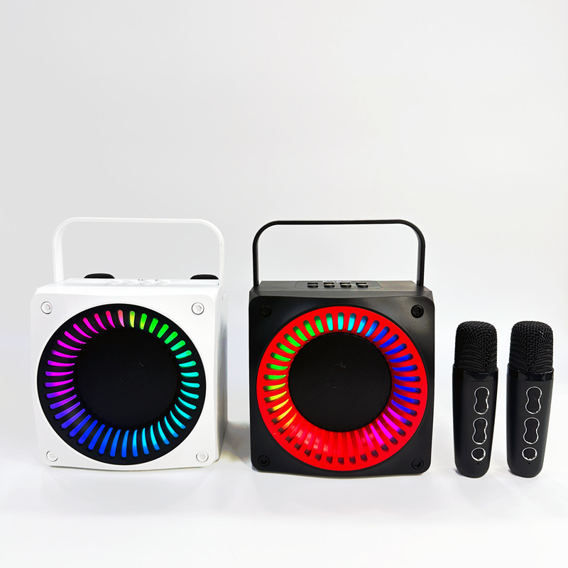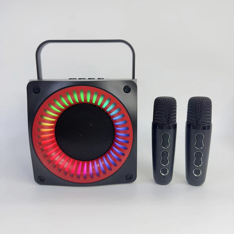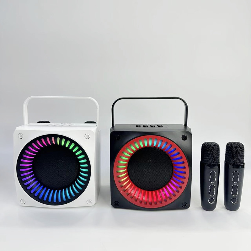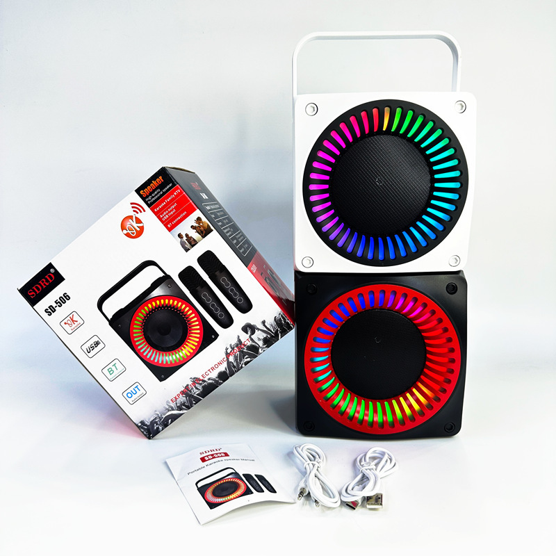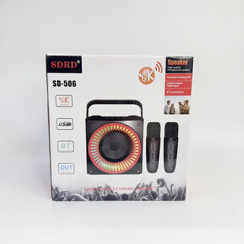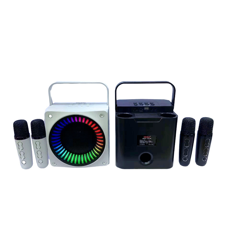 SD506便携式K歌蓝牙音箱双话筒LED灯卡拉ok蓝牙麦克风低音炮音响