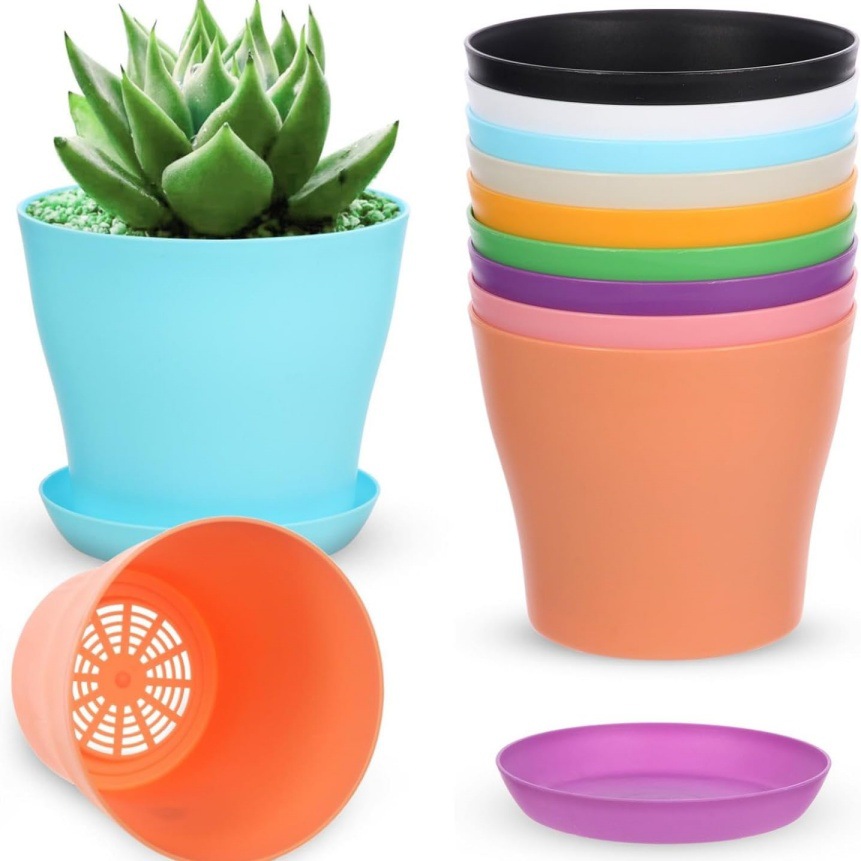 敞口PP树脂塑料花盆阳台月季绿萝绿植盆栽花盆多肉多色带底座新料