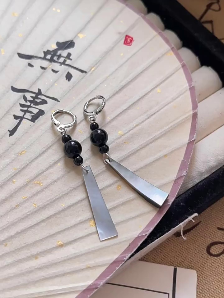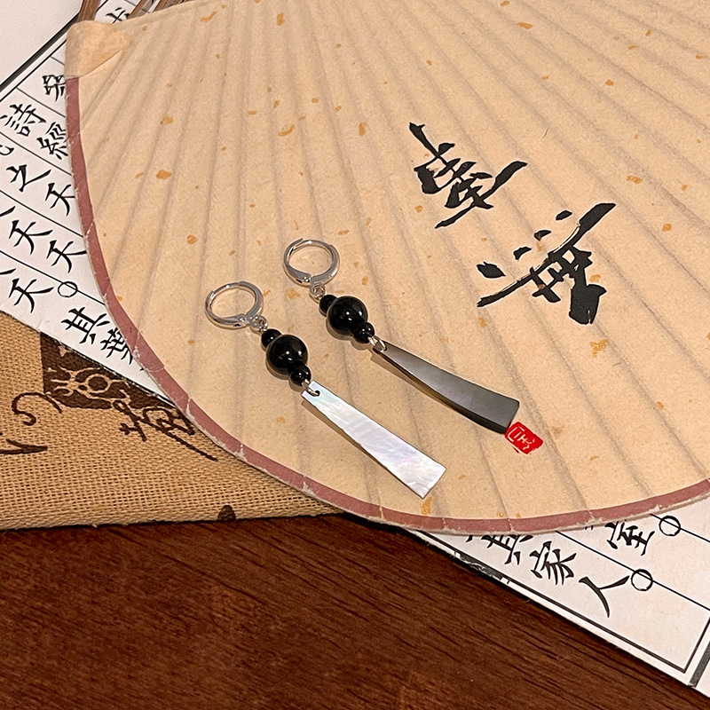 新中式国风小众古风汉服耳环耳饰马面裙贝壳长款黑色流苏耳扣女