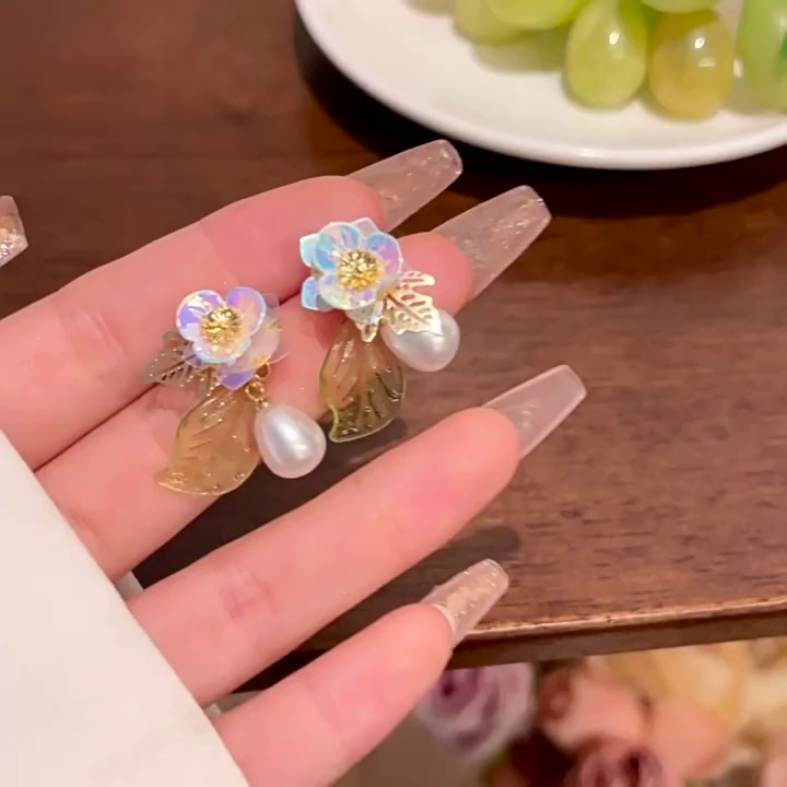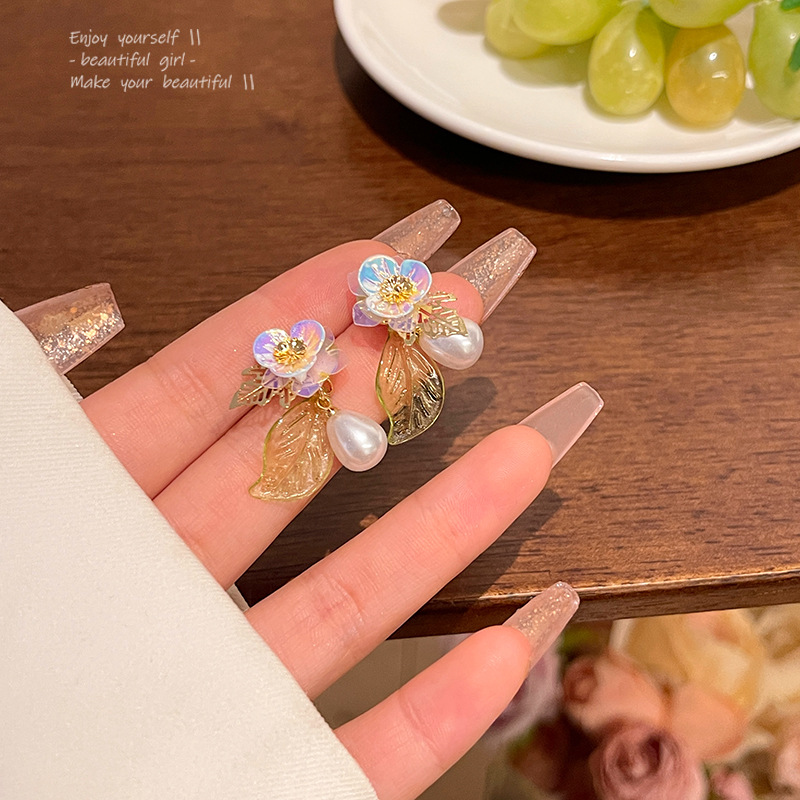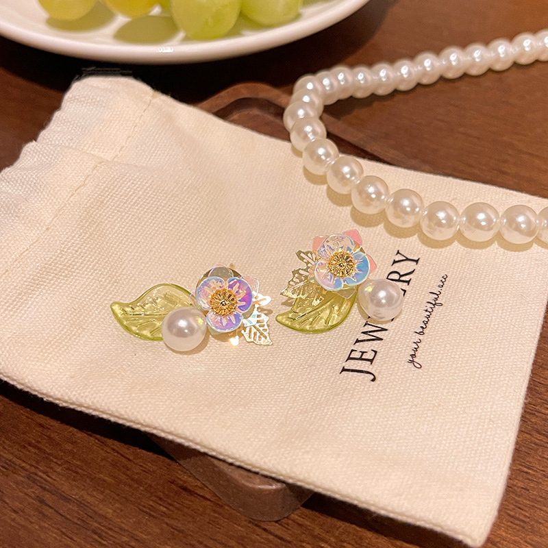 S925银针轻奢小众高级设计感珍珠耳钉耳饰小清新法式复古花朵耳环